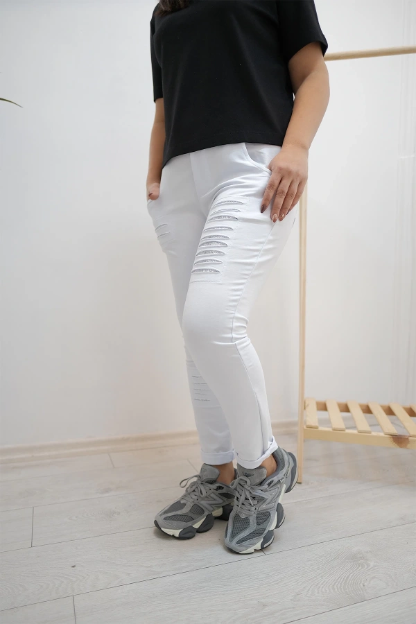 Yanı Zımba Detaylı Bej Rengi İthal Pantolon