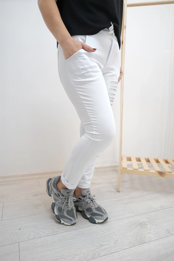 Yanı Taş Zımba Şeritli Gri Renk İthal Pantolon