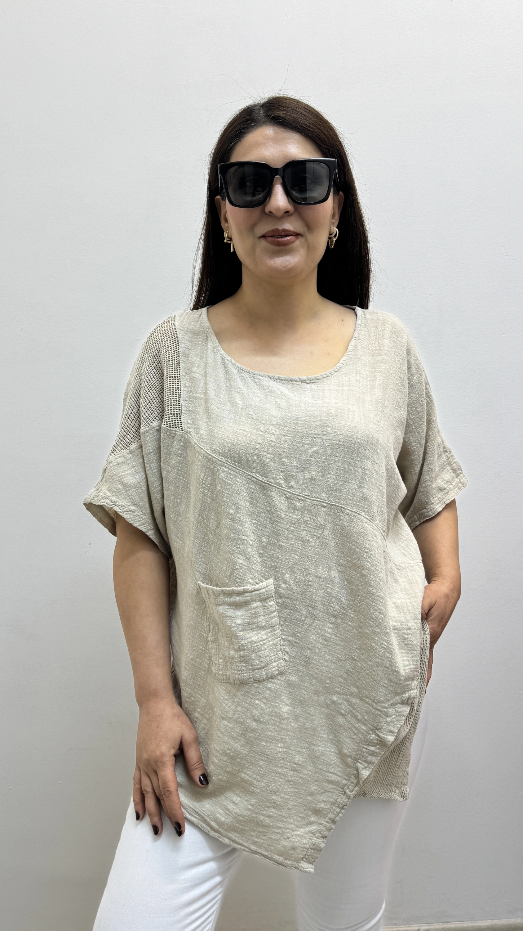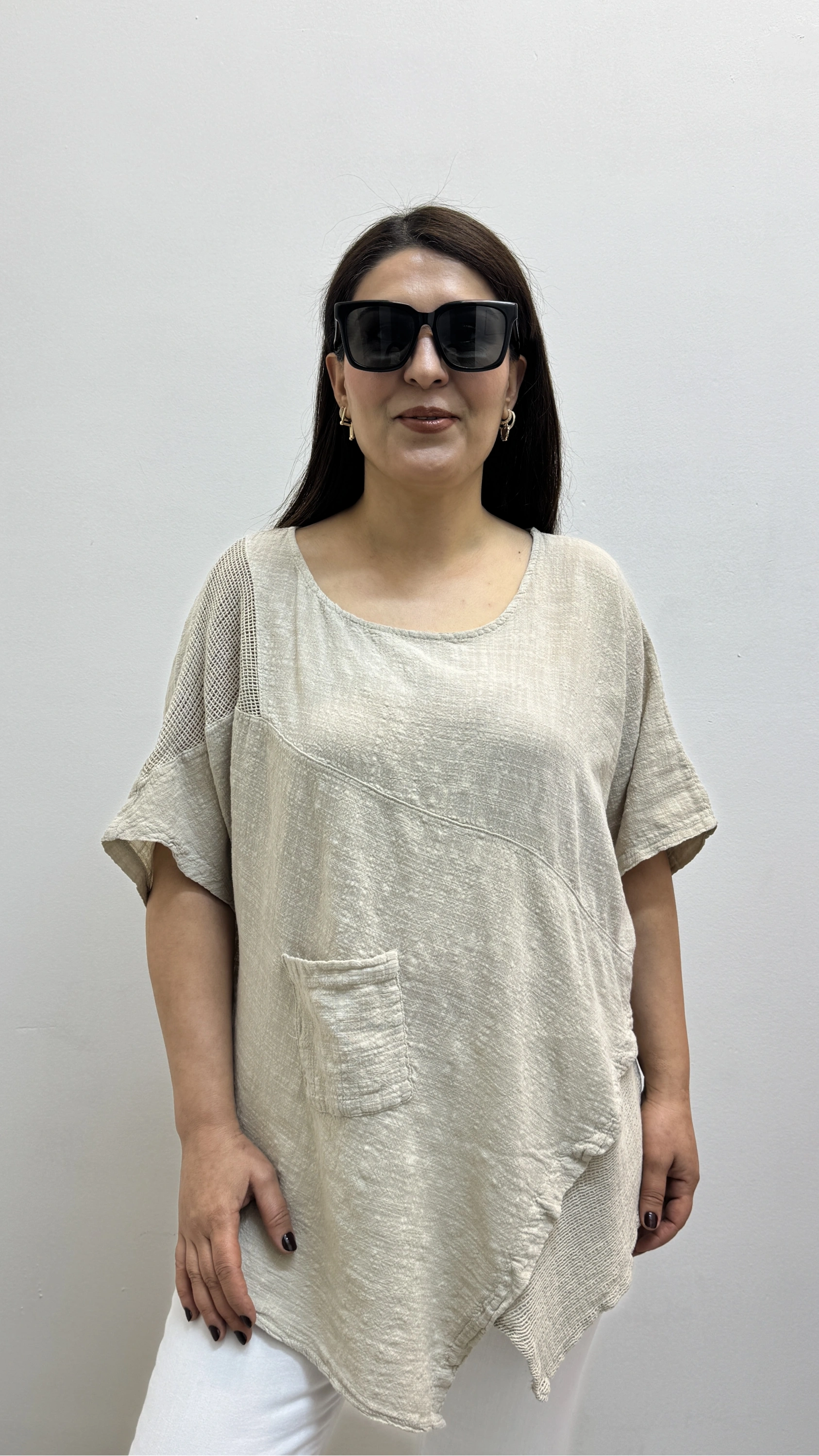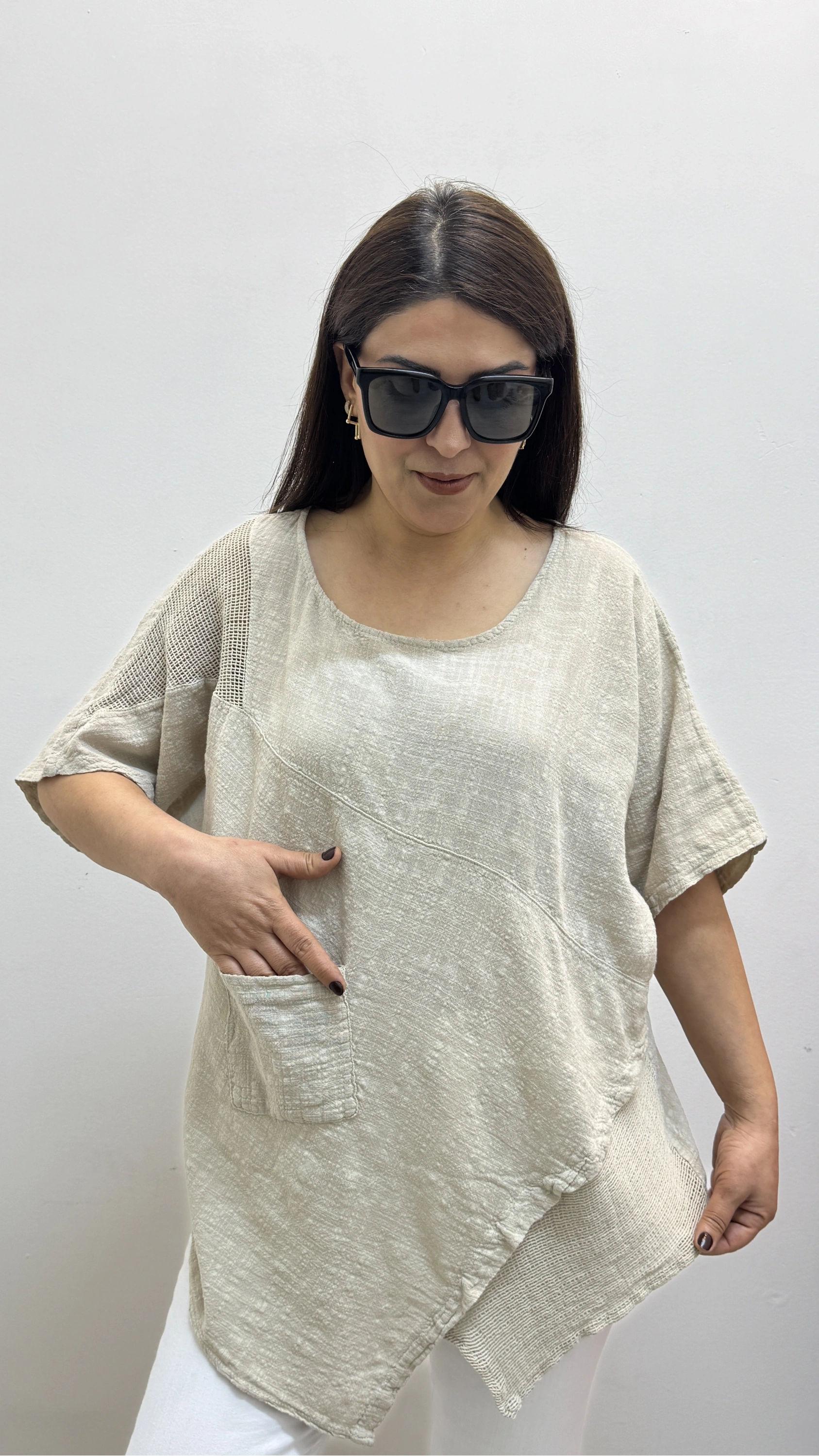 Asimetrik Kesim Bej Rengi Pamuklu Bluz Hakkında