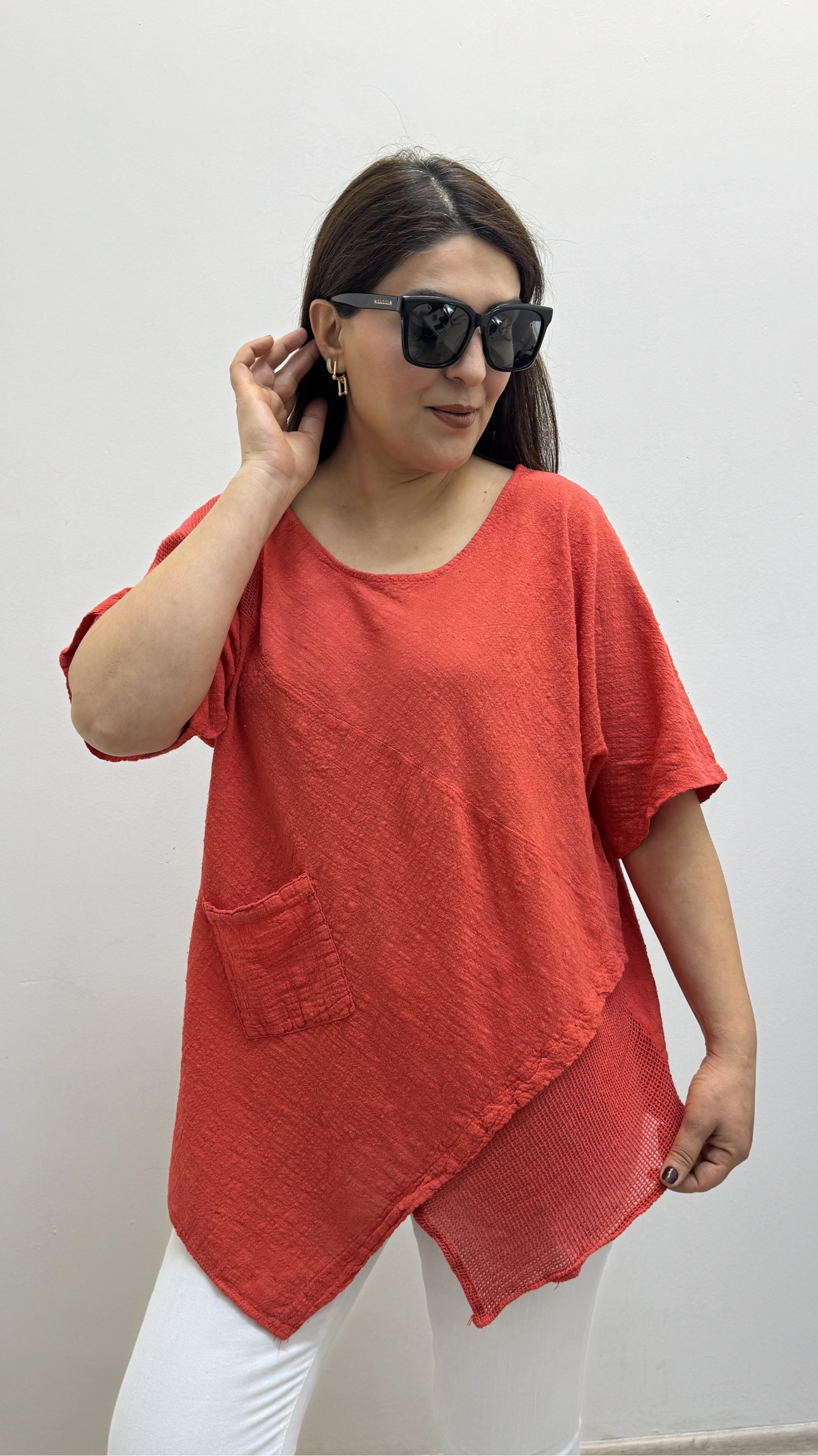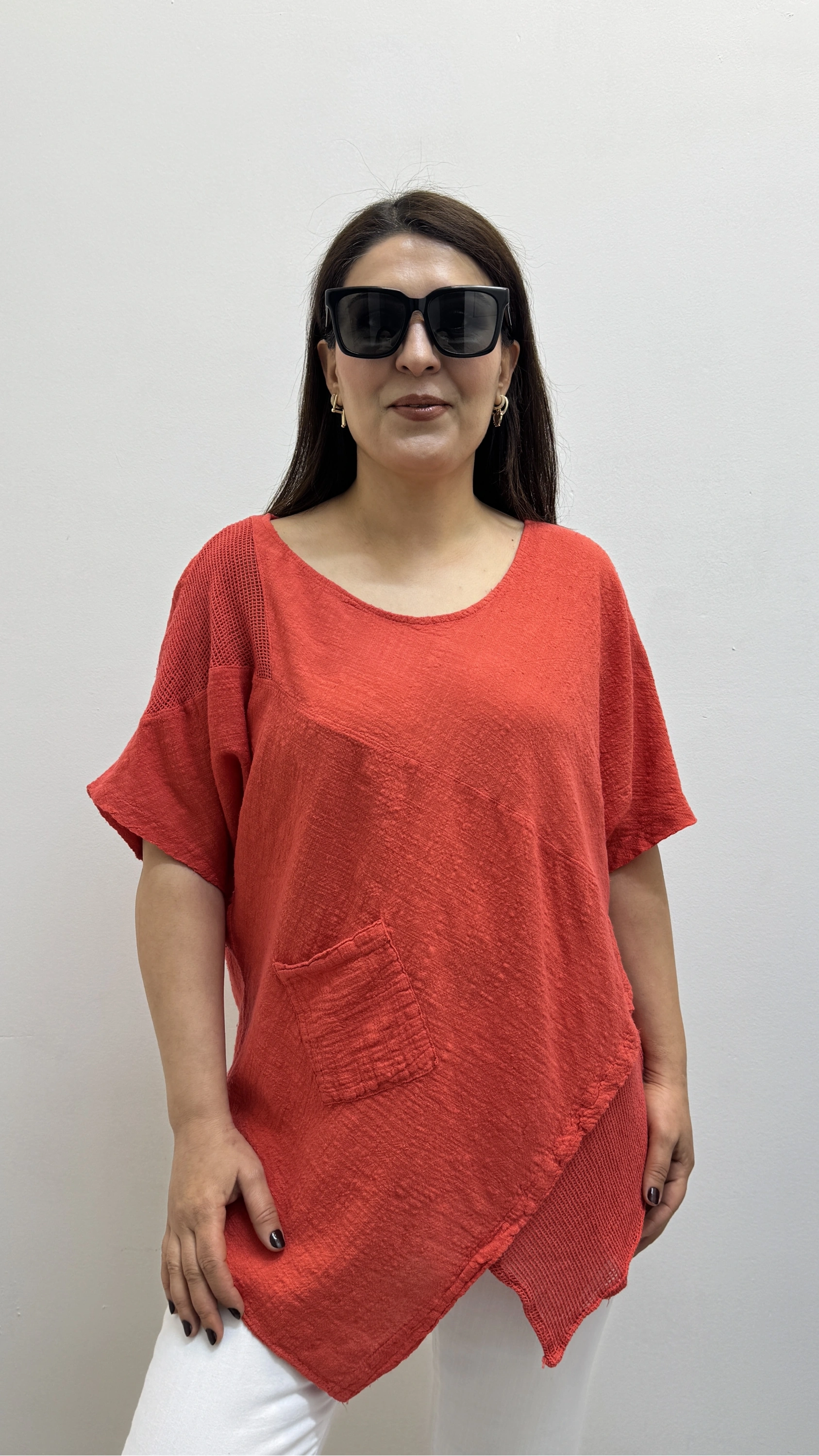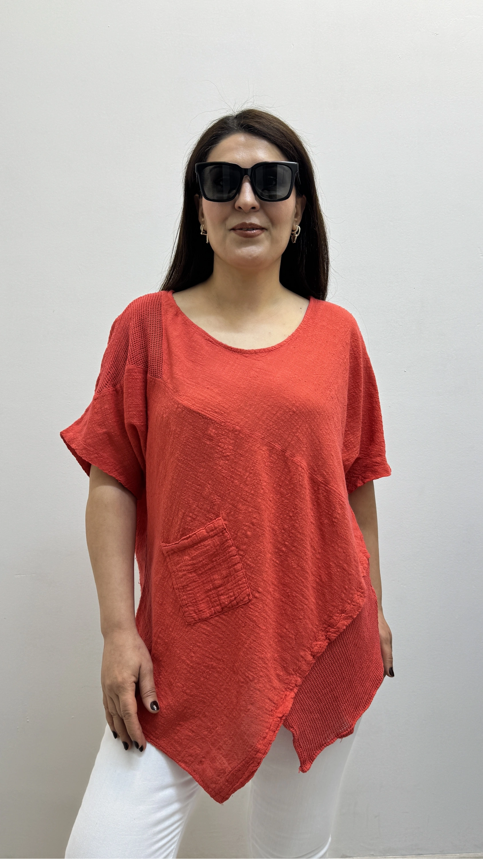 Asimetrik Kesim Narçiçeği Rengi Pamuklu Bluz