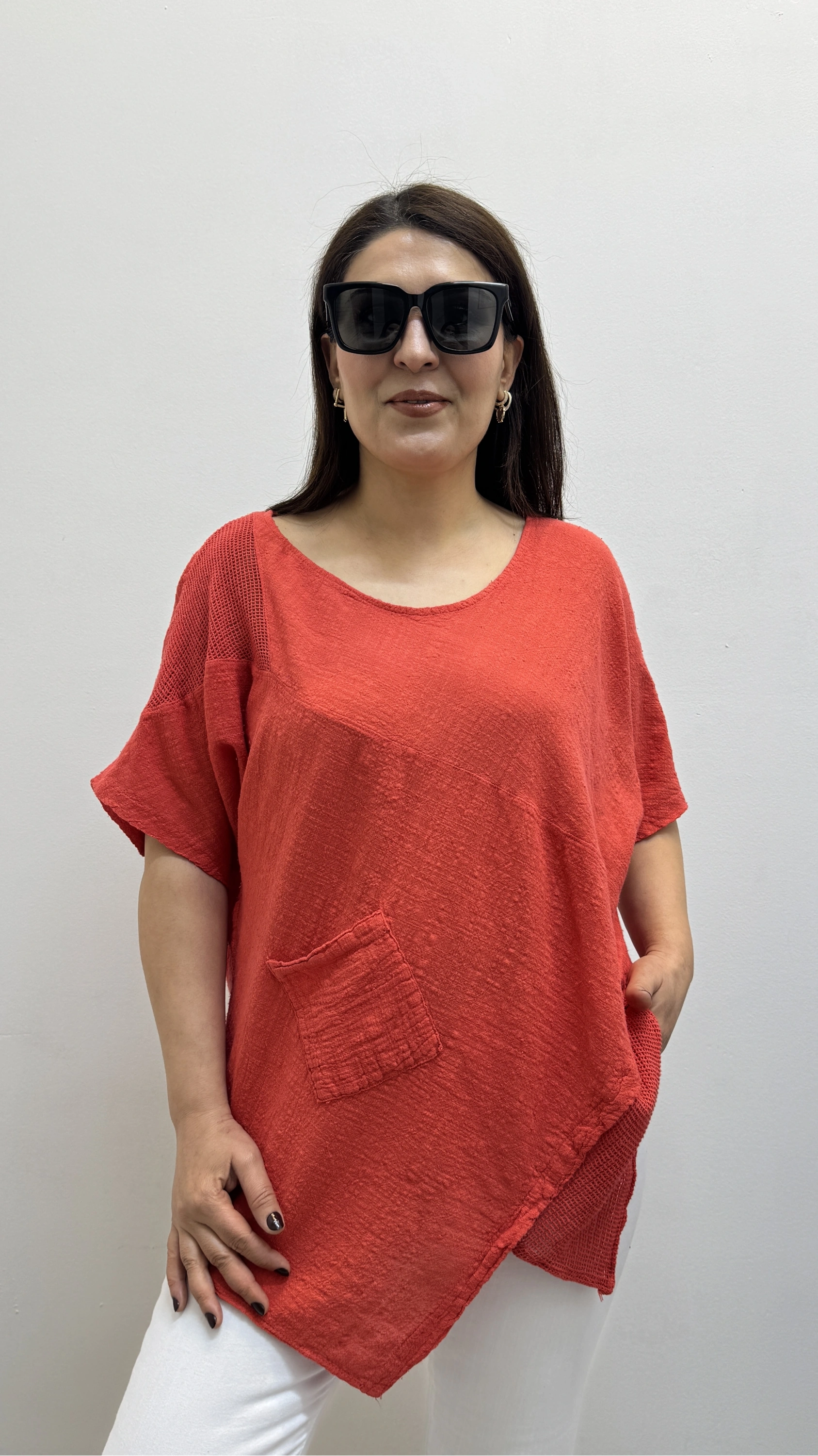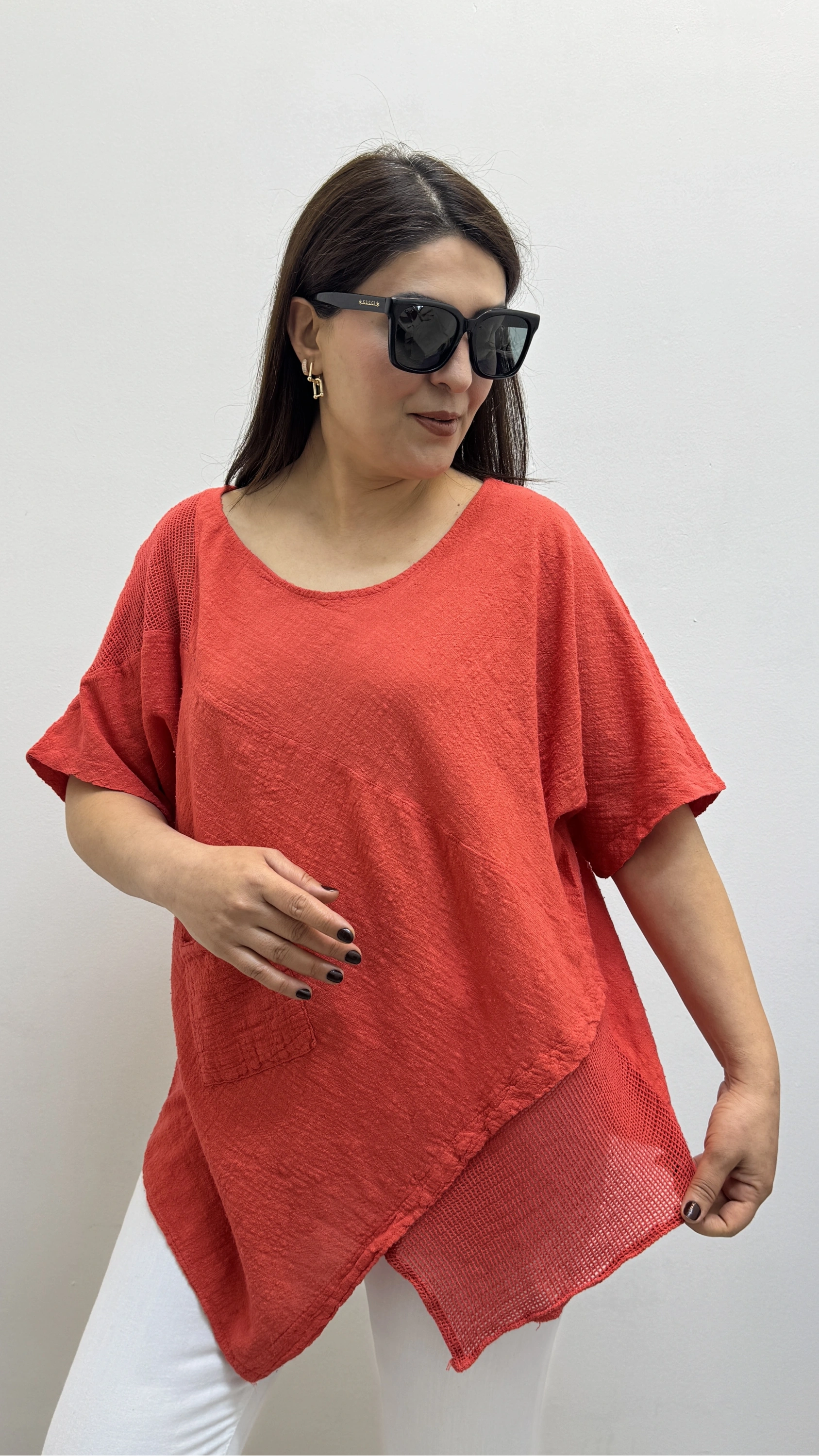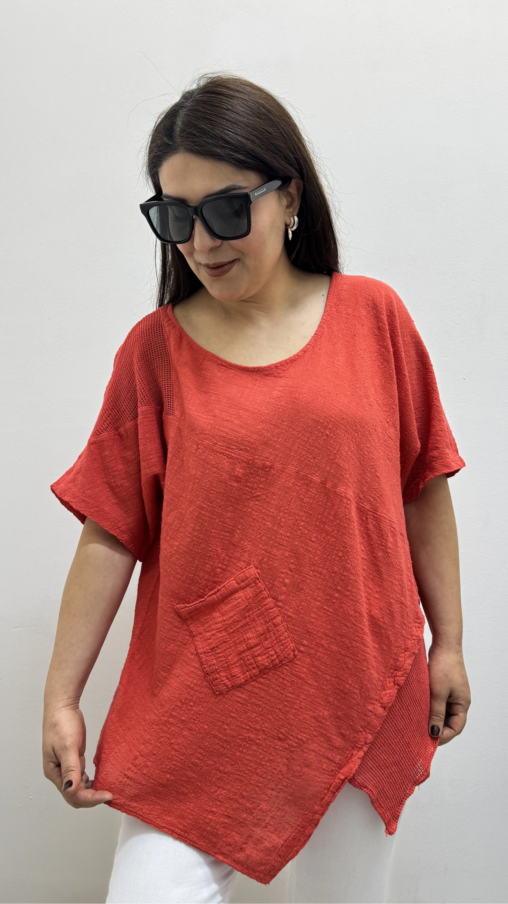 Asimetrik Kesim Narçiçeği Rengi Pamuklu Bluz