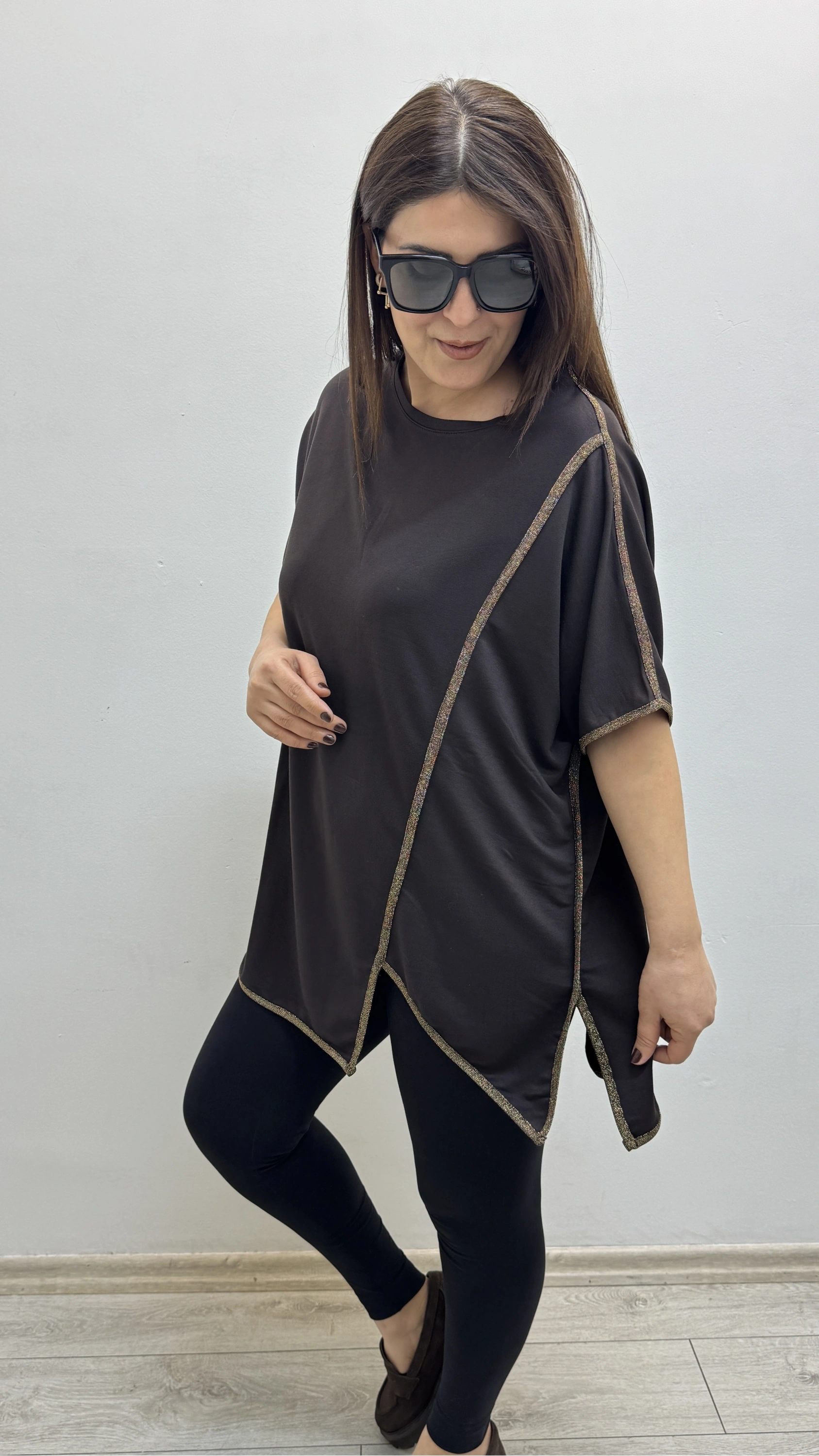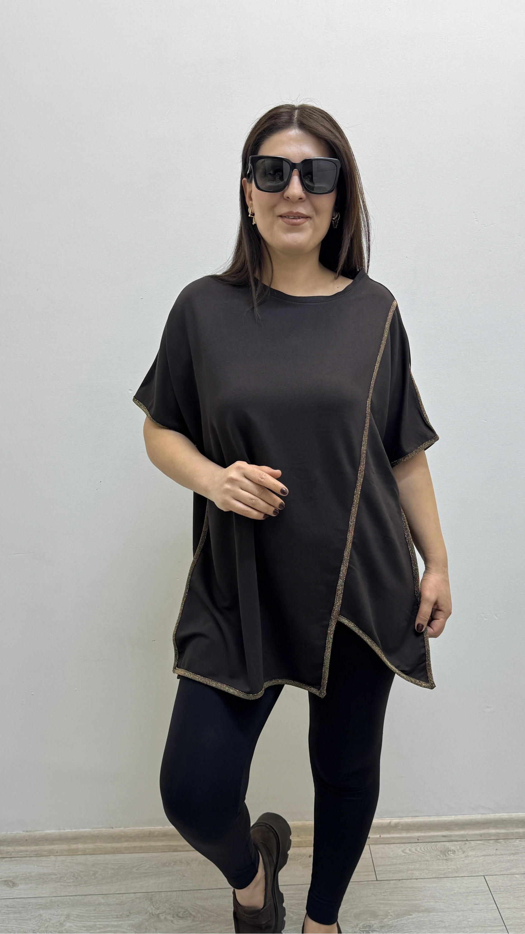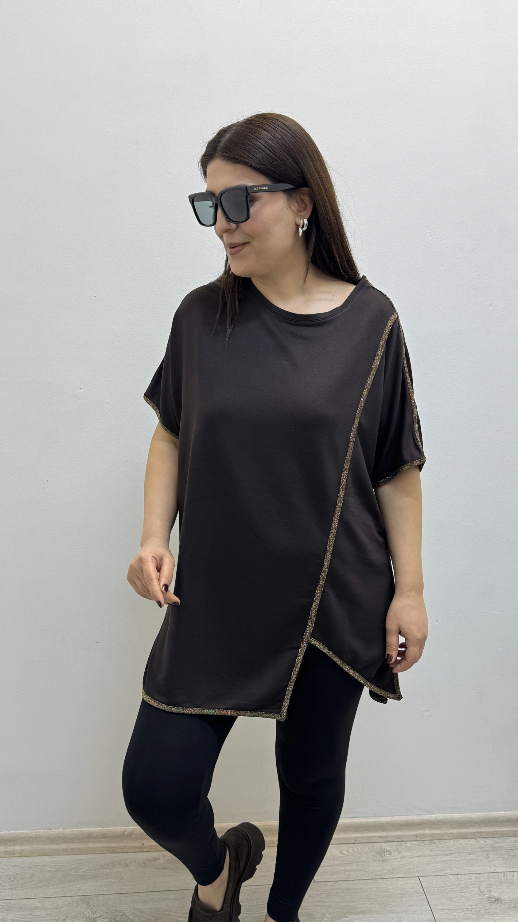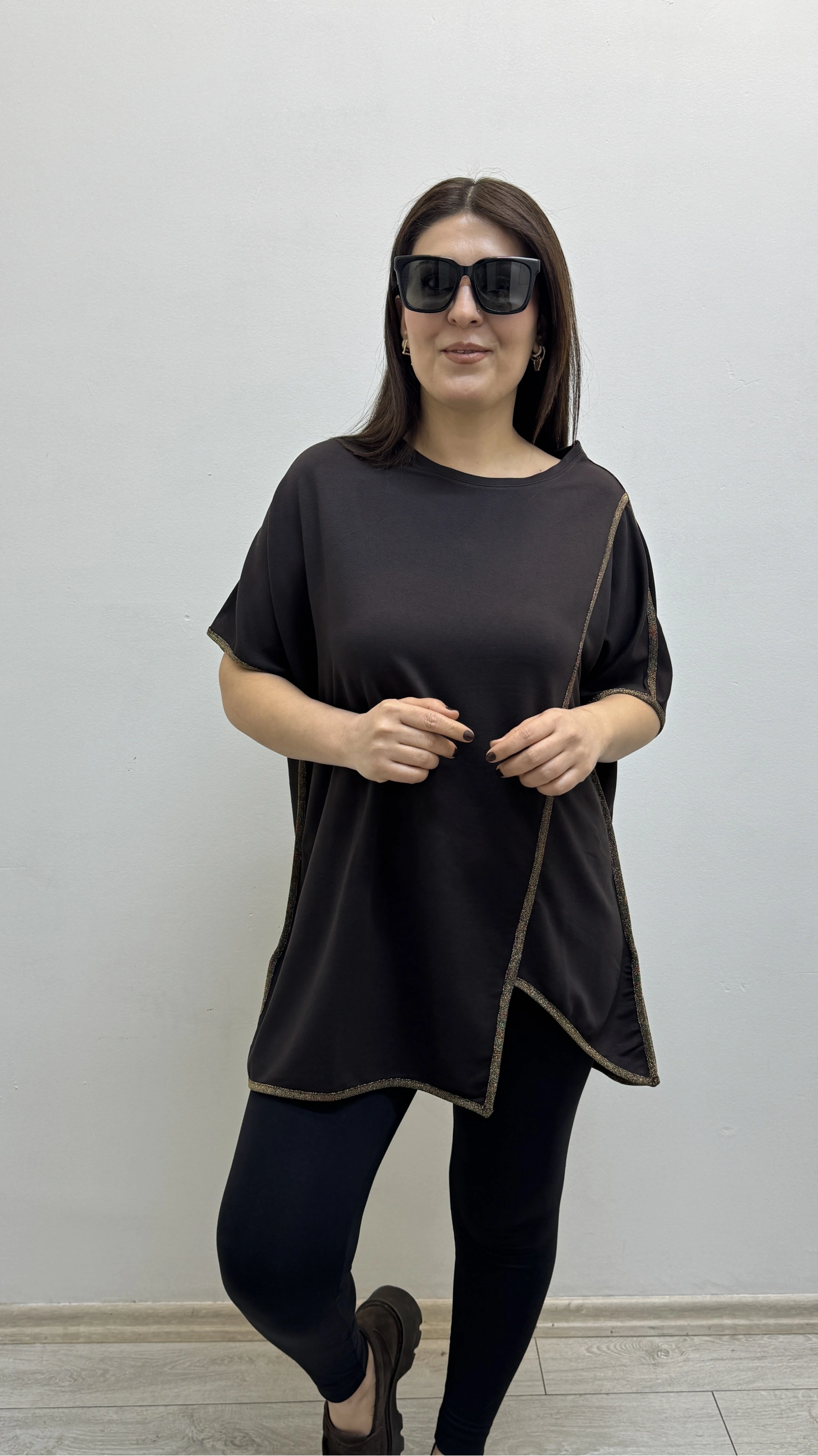 Asimetrik Kesim Sim Şeritli Kahverengi Bluz Hakkında