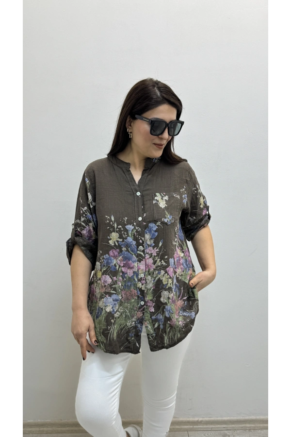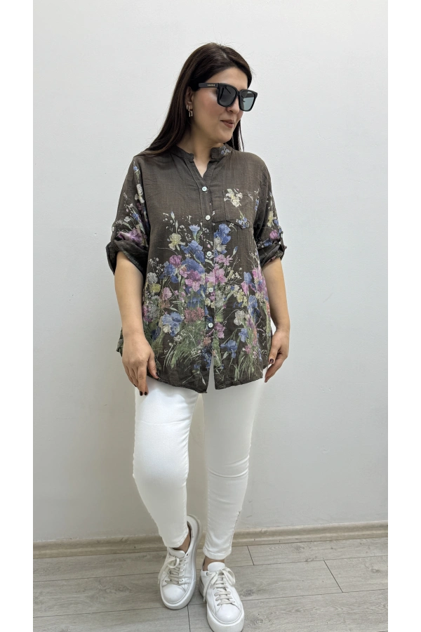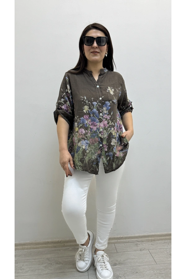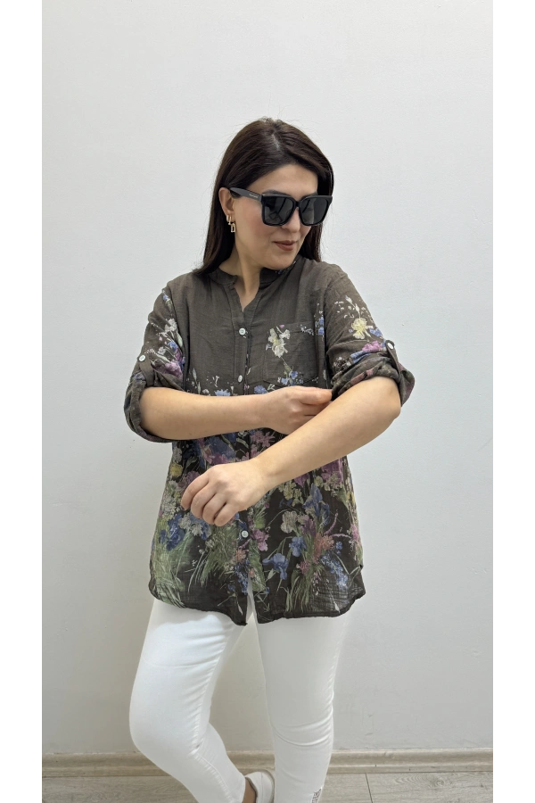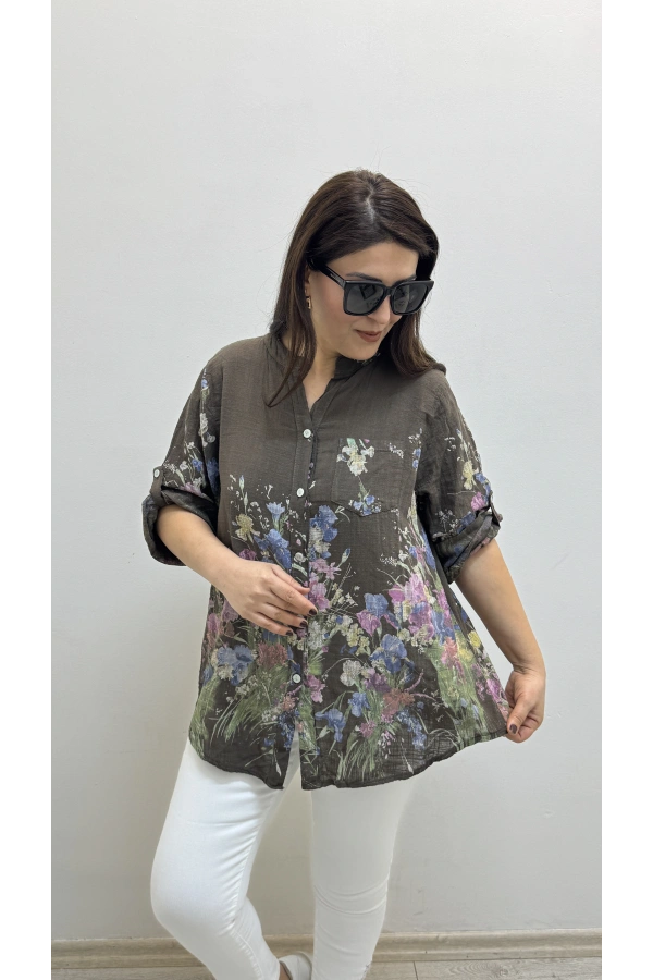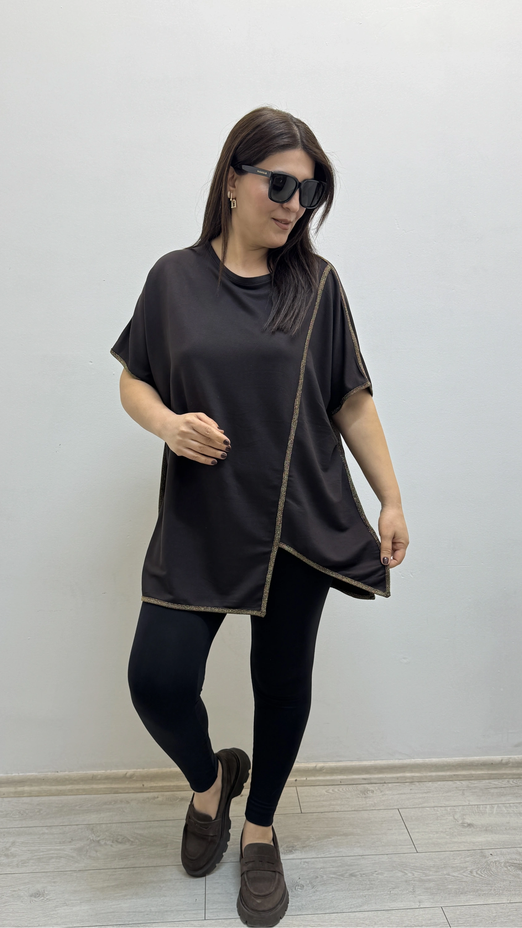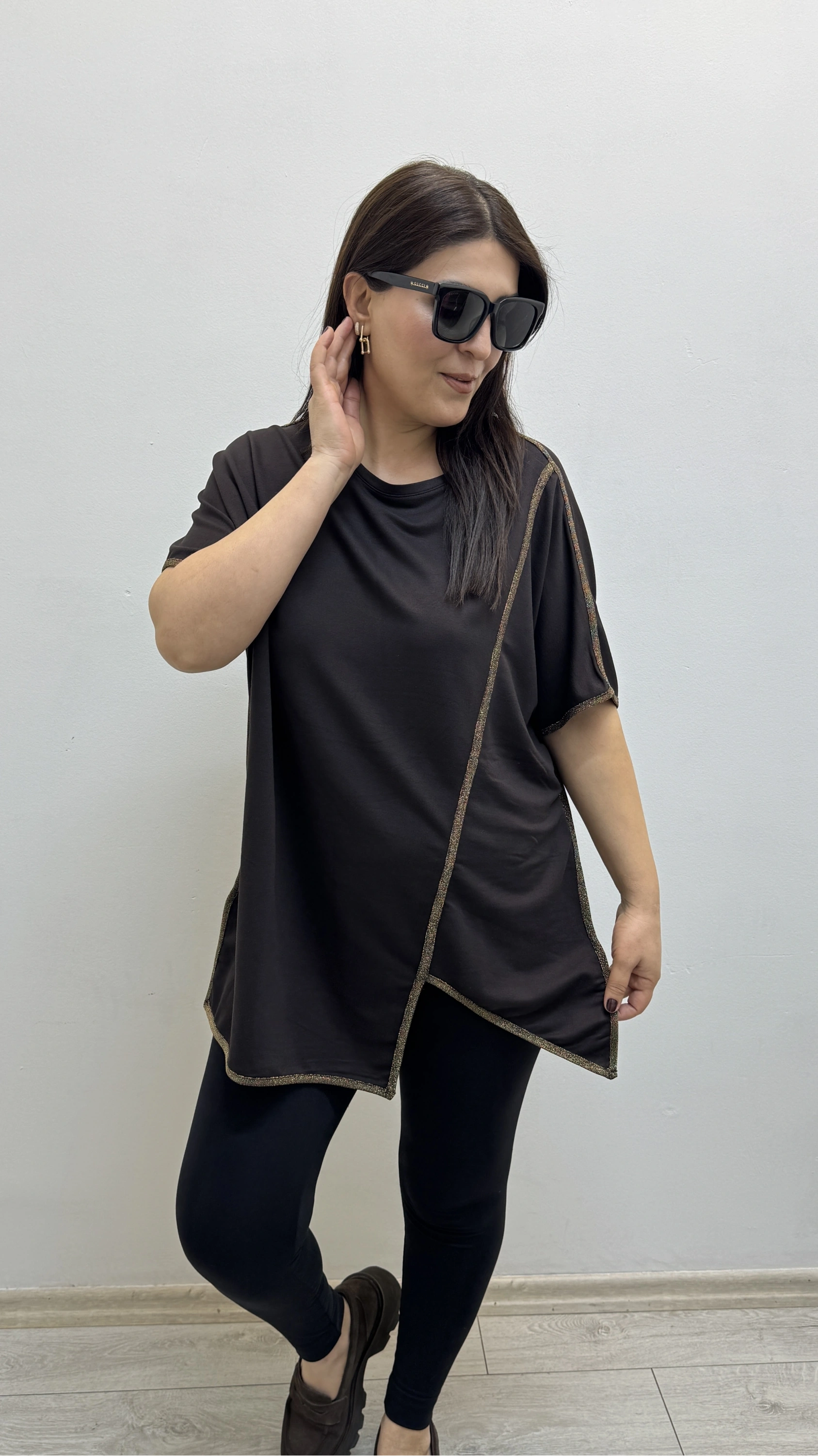 Asimetrik Kesim Sim Şeritli Kahverengi Bluz Hakkında