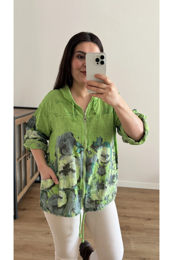 Çiçek Desenli Fermuarlı Turuncu İthal Ceket Hakkında