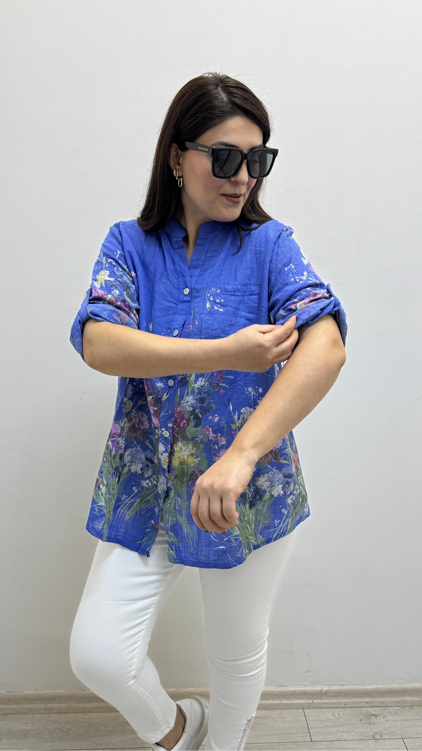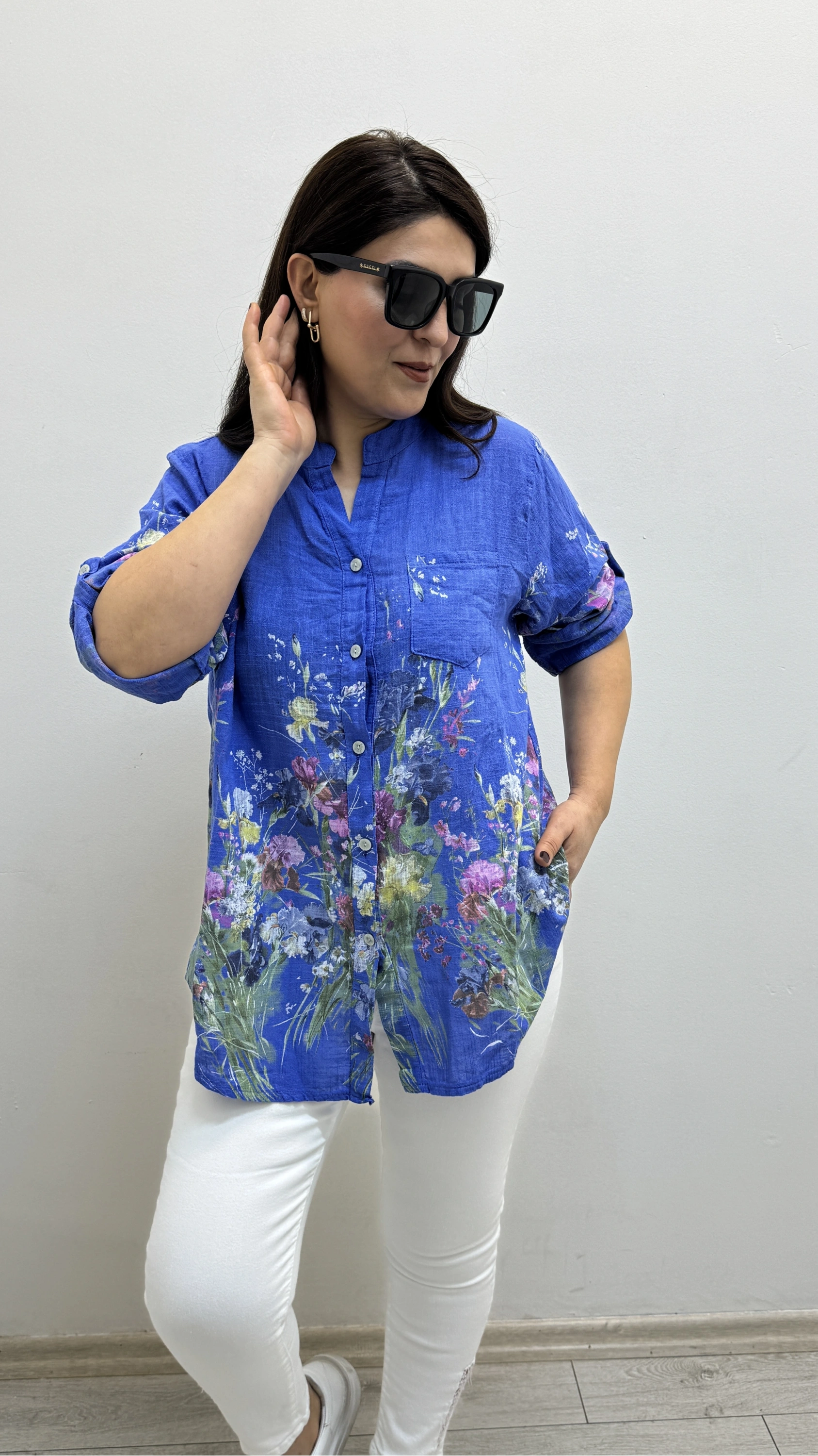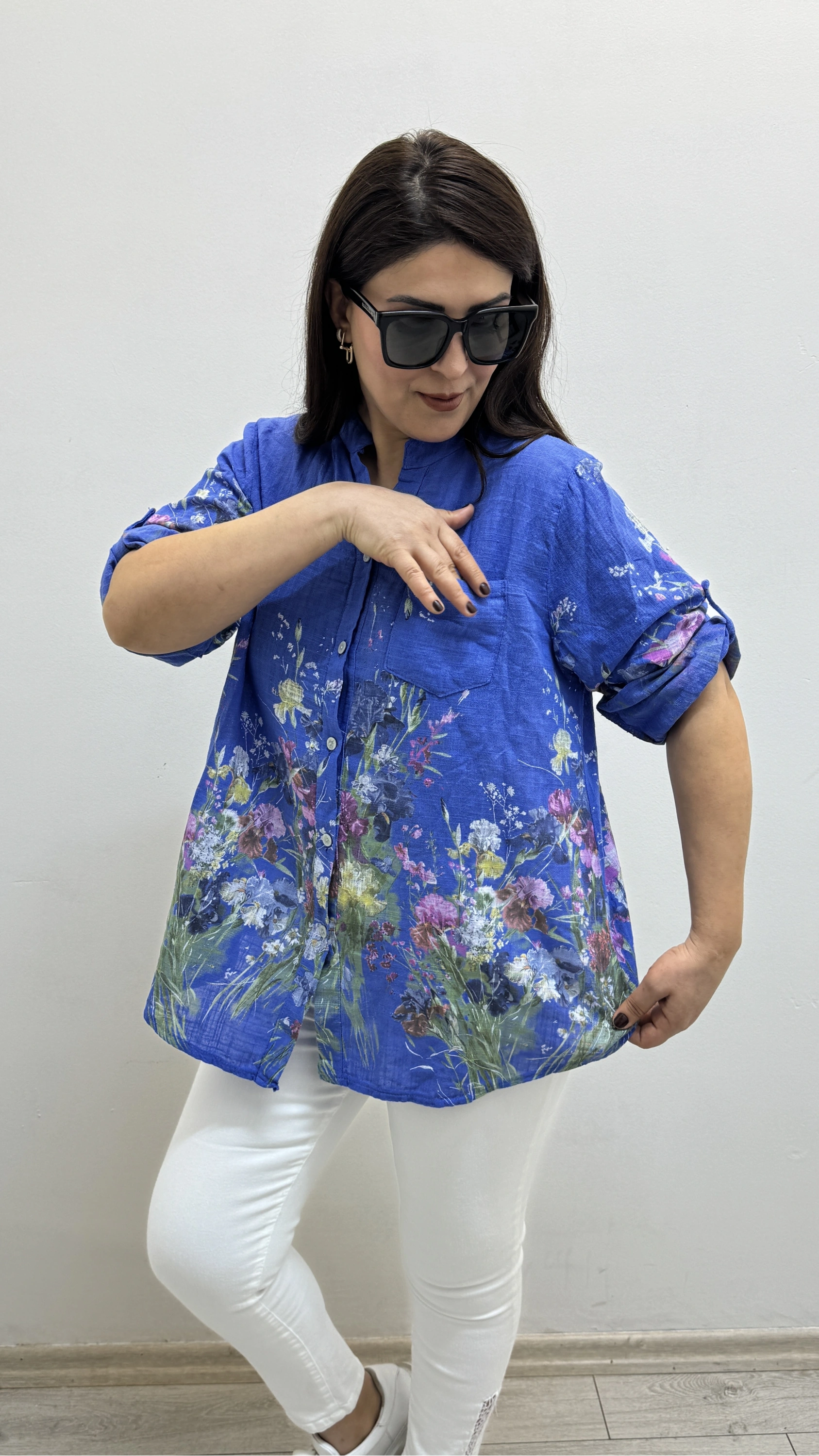 Çiçek Desenli İndigo Mavi İthal Gömlek Hakkında