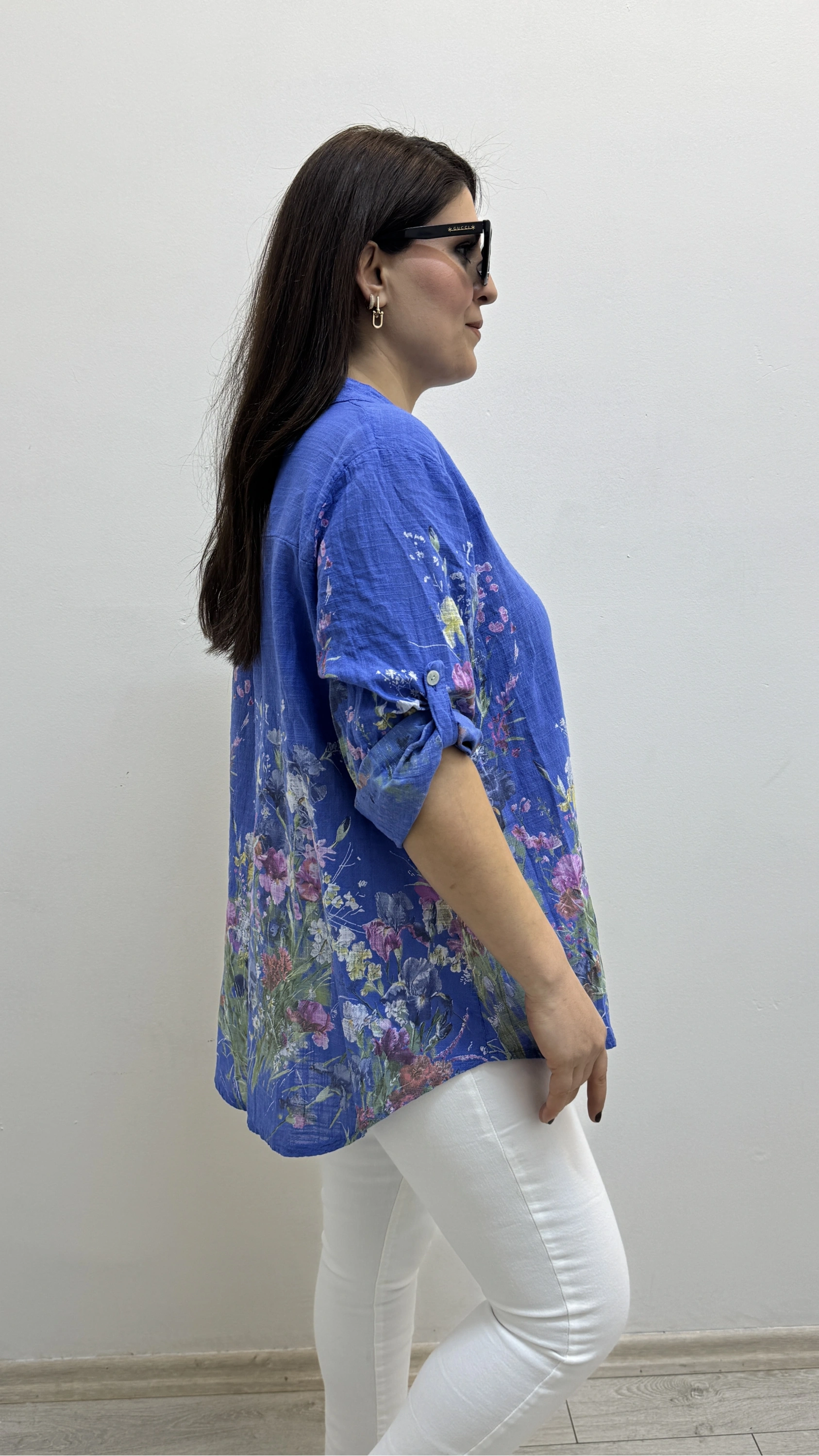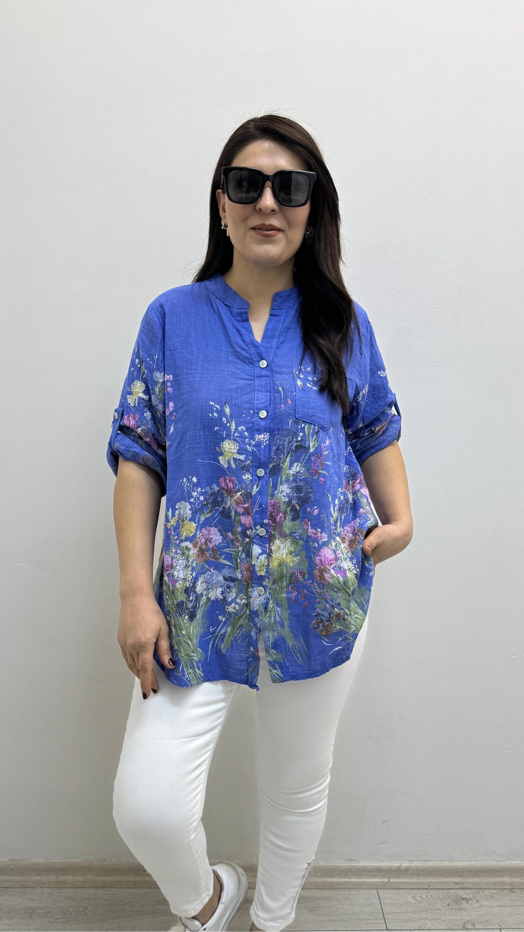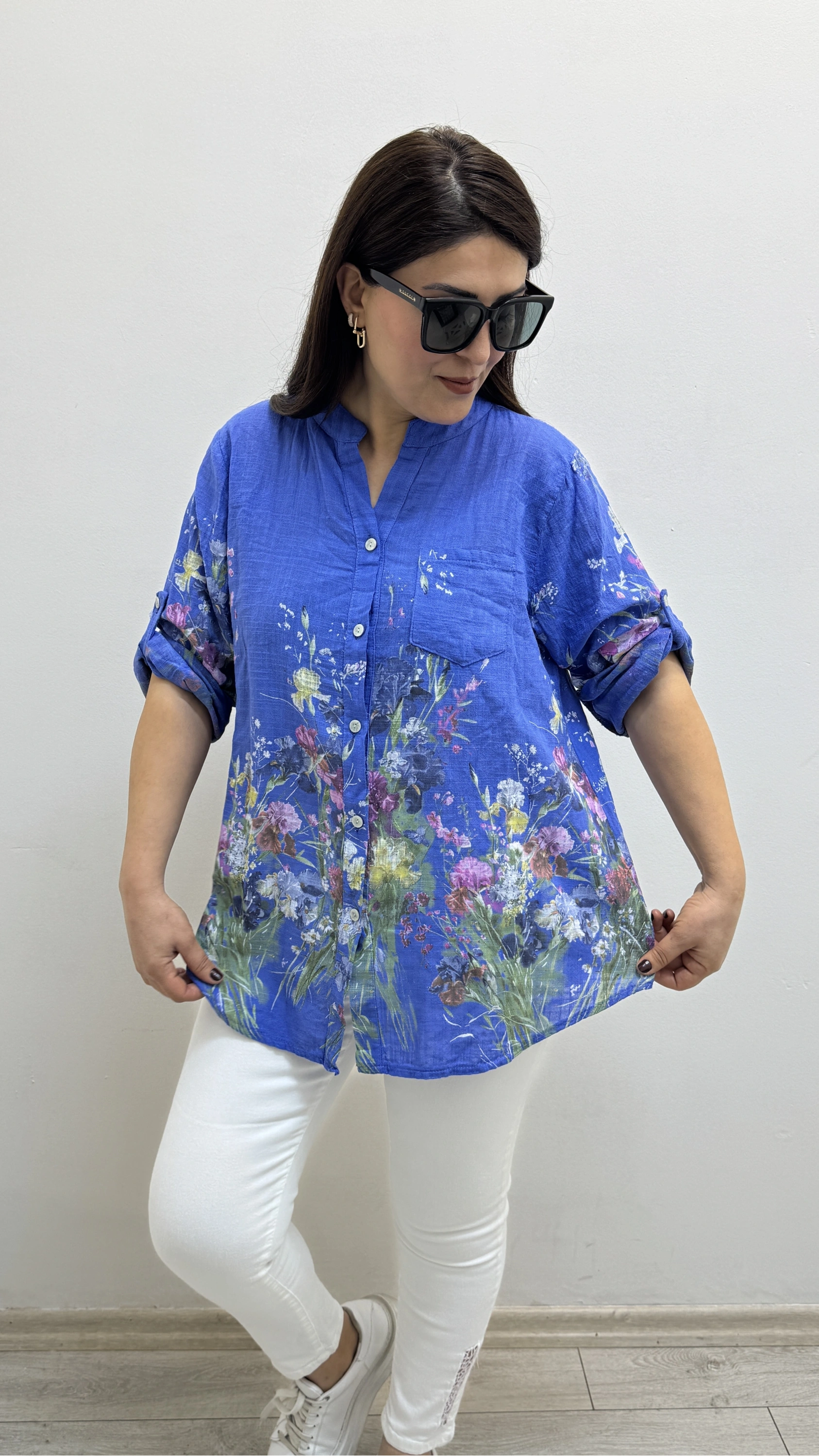Çiçek Desenli İndigo Mavi İthal Gömlek Hakkında
