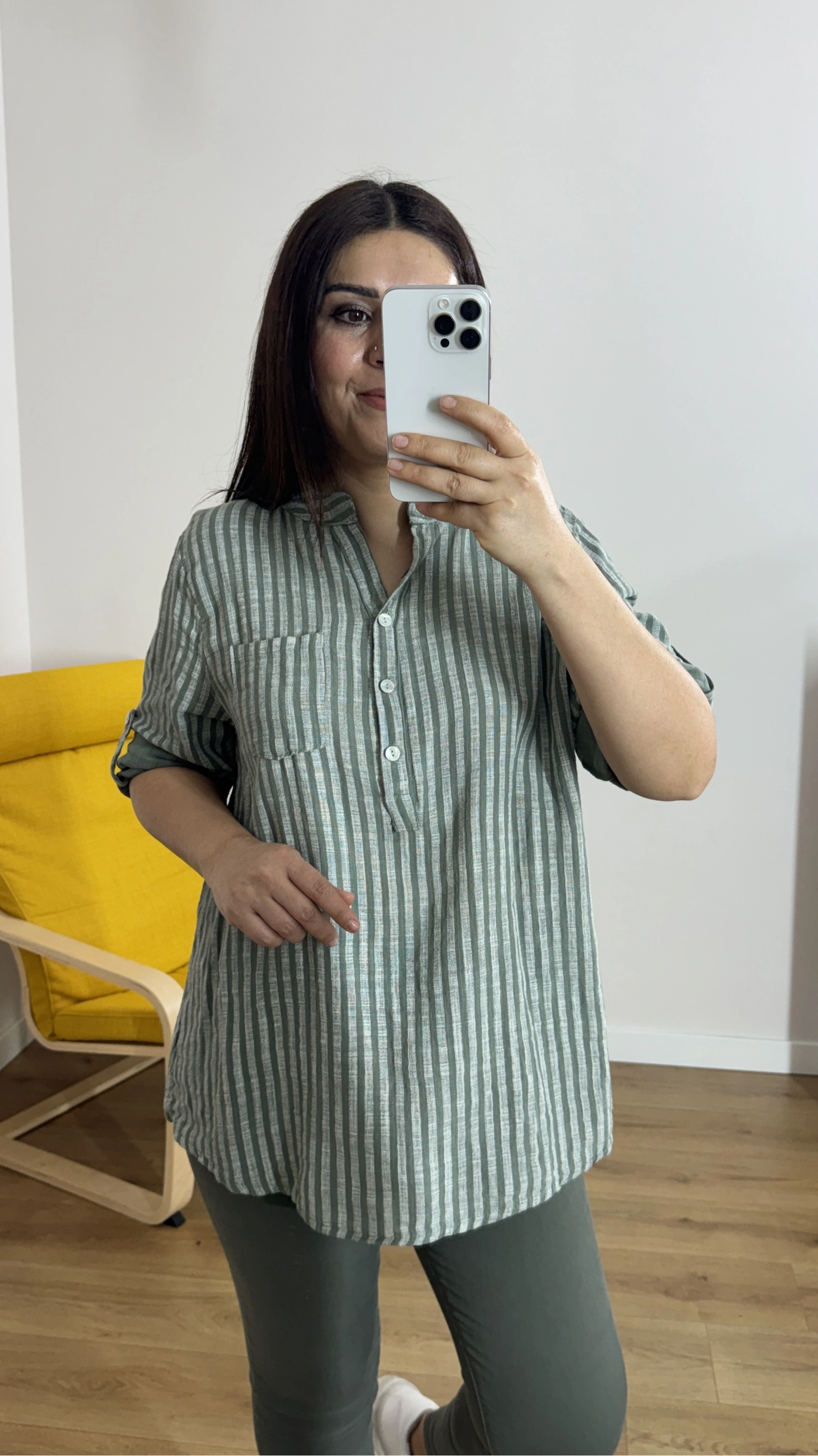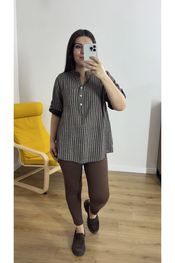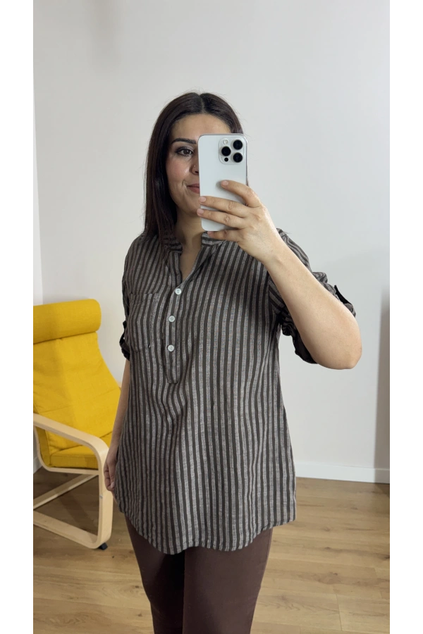 Çizgili Haki Yeşil İthal Bluz Hakkında