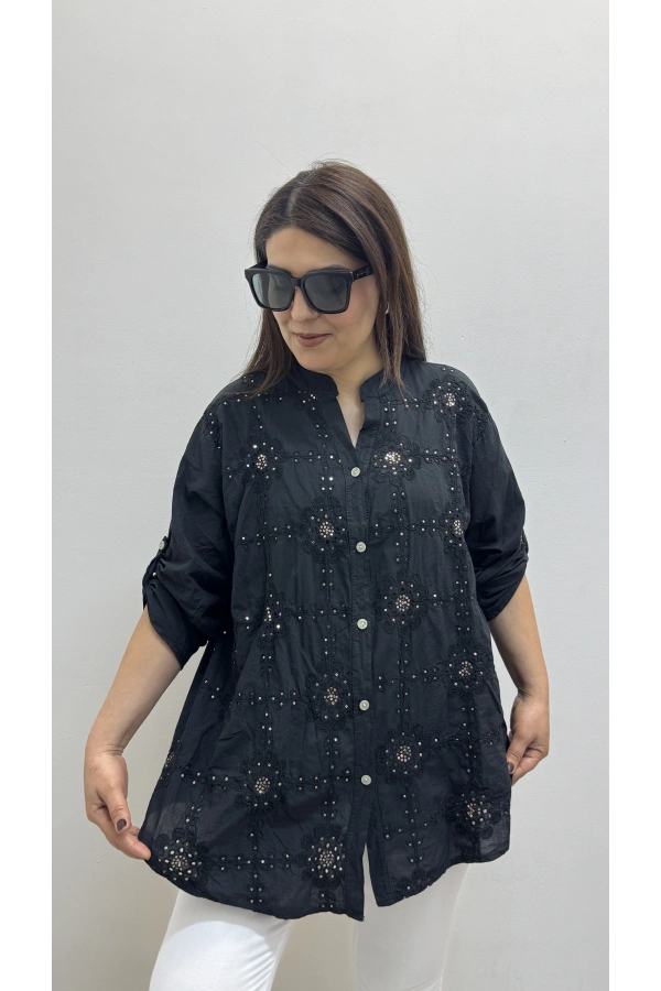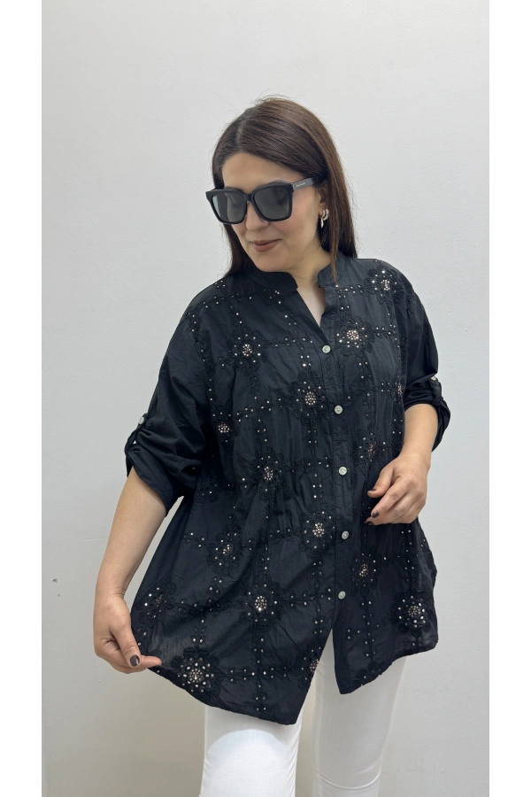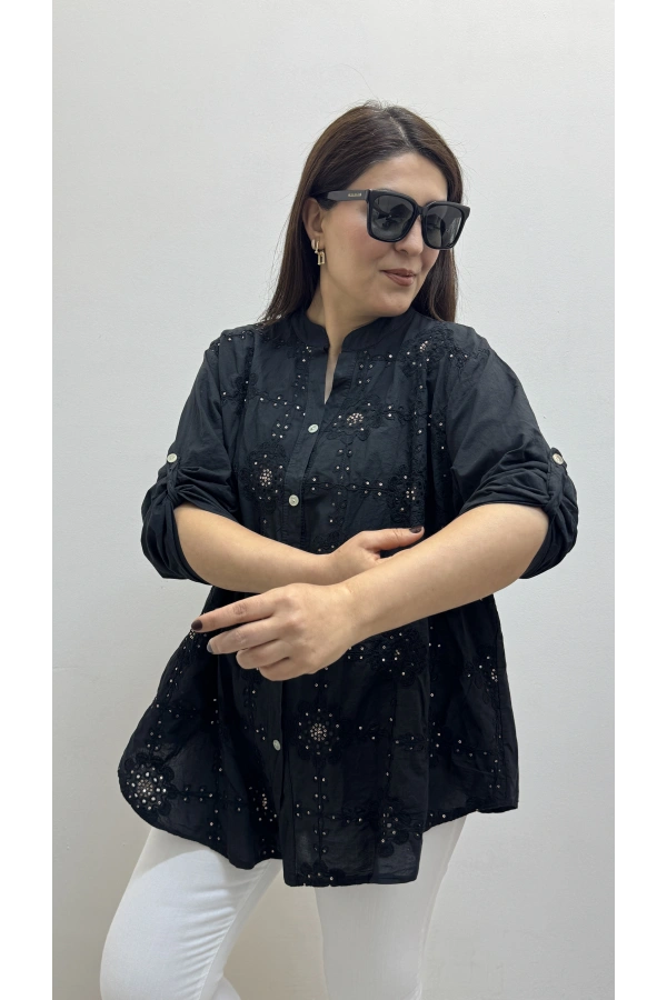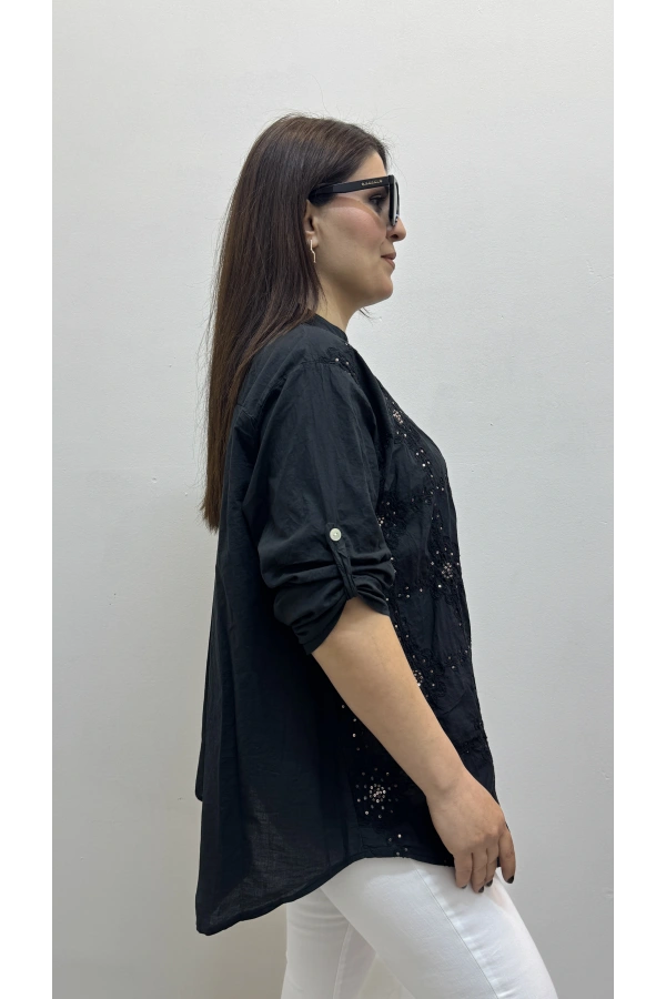 Dirsek Kol File Detaylı Siyah Pamuklu Bluz Hakkında
