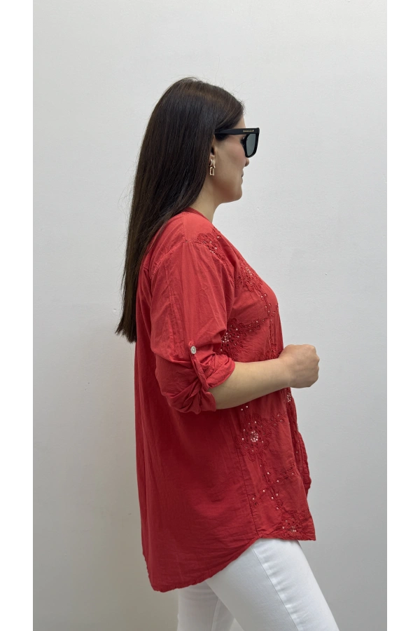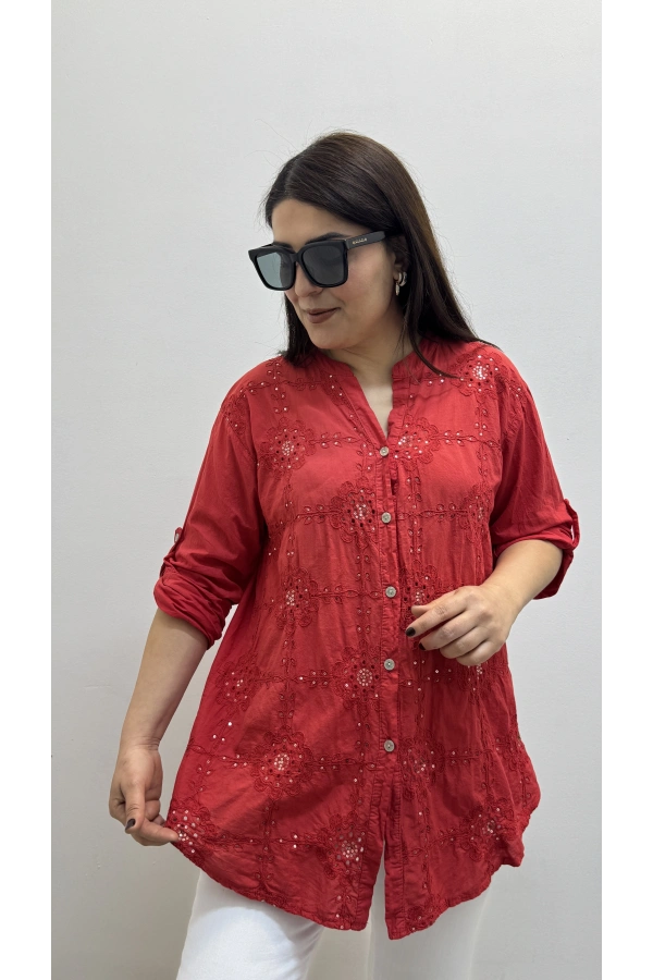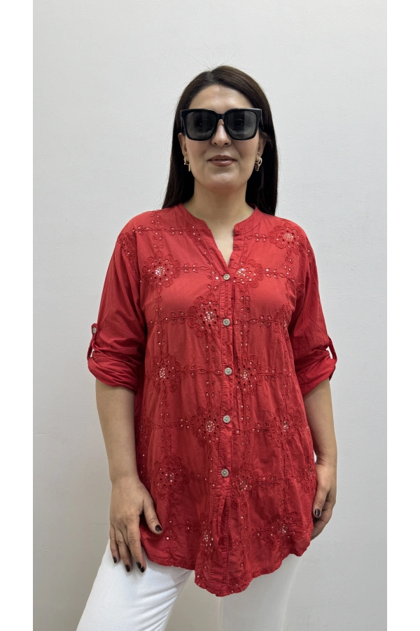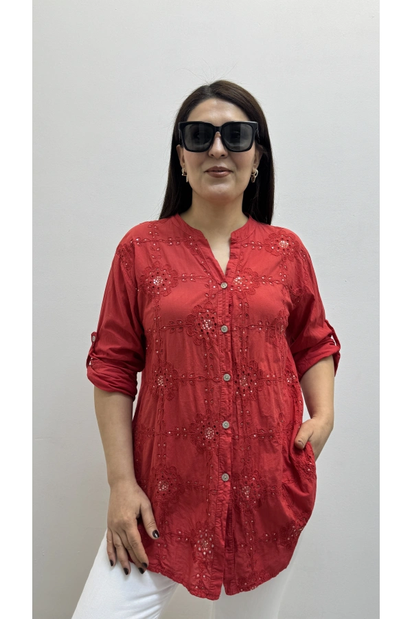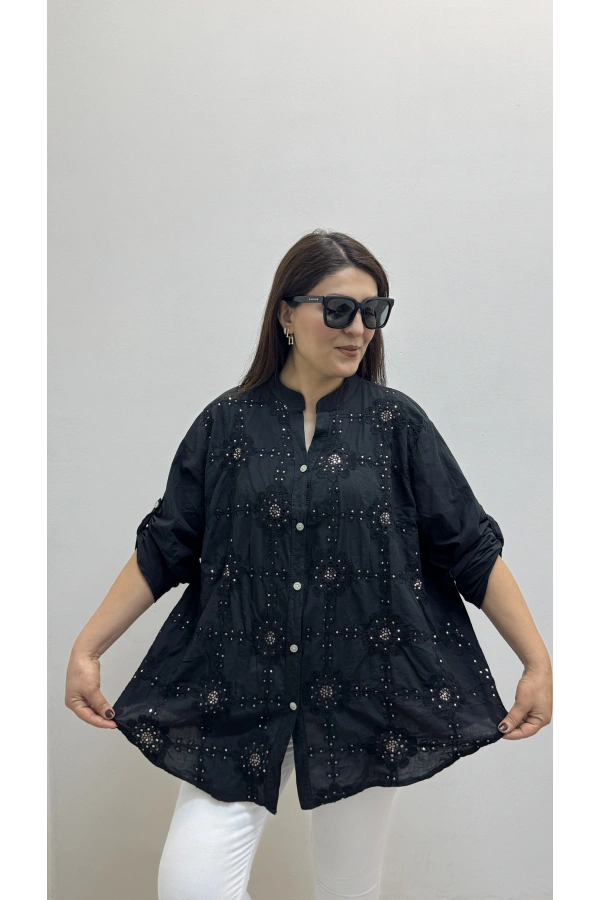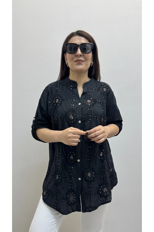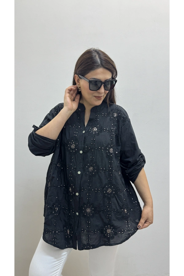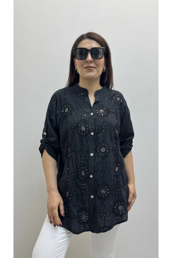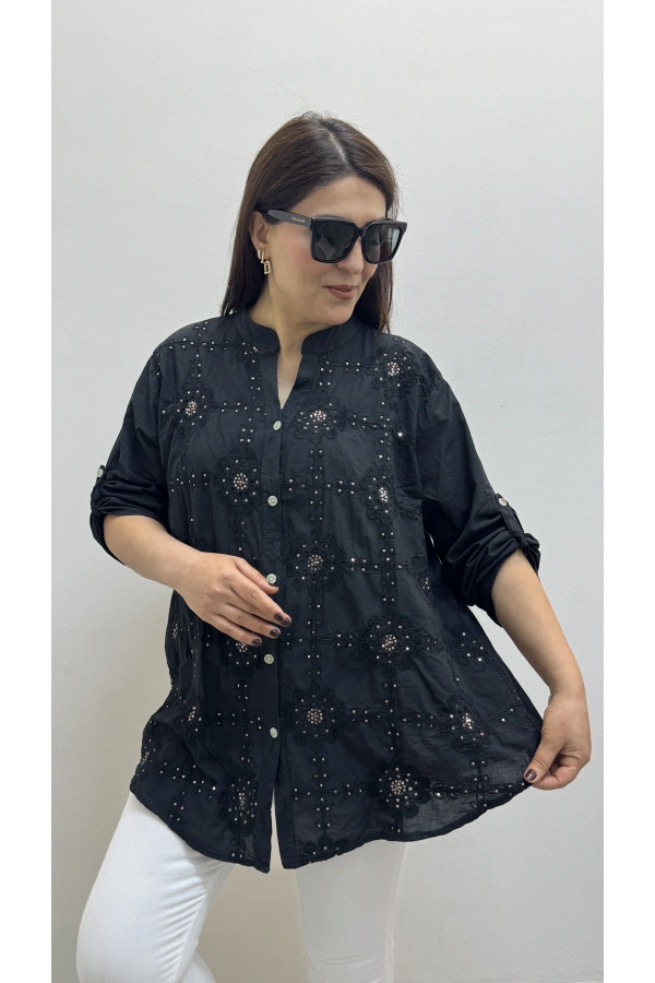 Şıklık ve modernliği birleştiren Dirsek Kol File Detaylı Siyah Pamuklu Bluz, zarif tasarımı ve özgün detaylarıyla dikkat çeker. Siyah rengin zarif duruşu, file detaylarıyla hareket kazanır ve bluze farklı bir hava katar. Pamuklu kumaşı, cilde dost, hafif ve nefes alabilir yapısıyla gün boyu konfor sağlar. Dirsek kol kesimi, hem rahatlık hem de şıklık arayanlar için ideal bir seçim olup, sade ama etkili bir stil sunar. Hem günlük hayatta hem de özel anlarda rahatlıkla kullanılabilecek bu bluz, her dolabın vazgeçilmezi olacak.