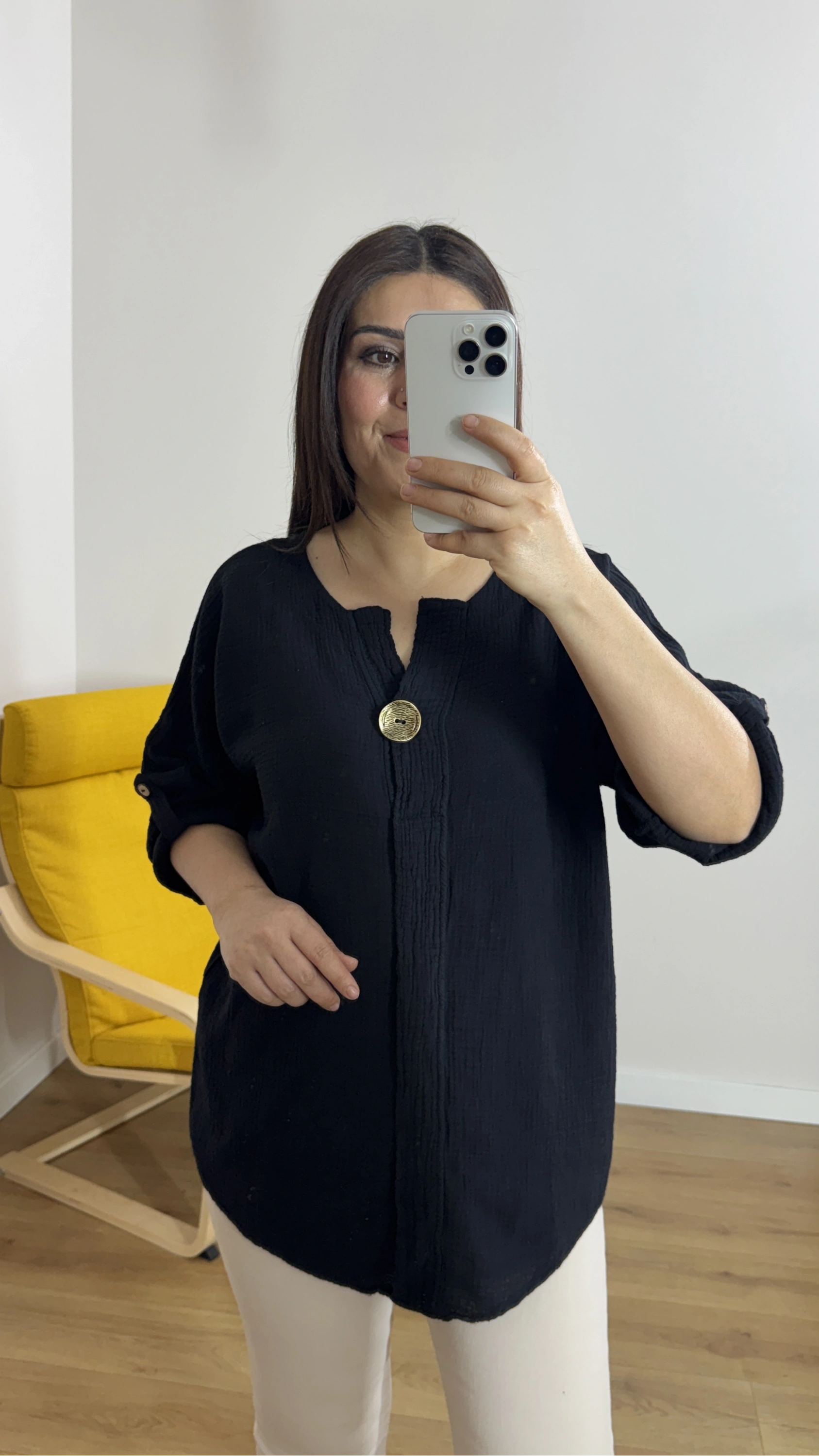 Dirsek Kol Siyah Renk Müslin Bluz Hakkında