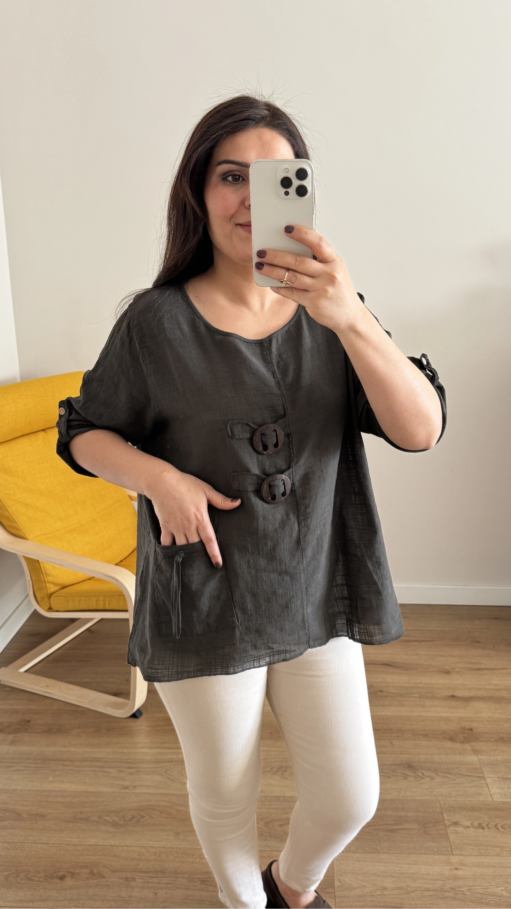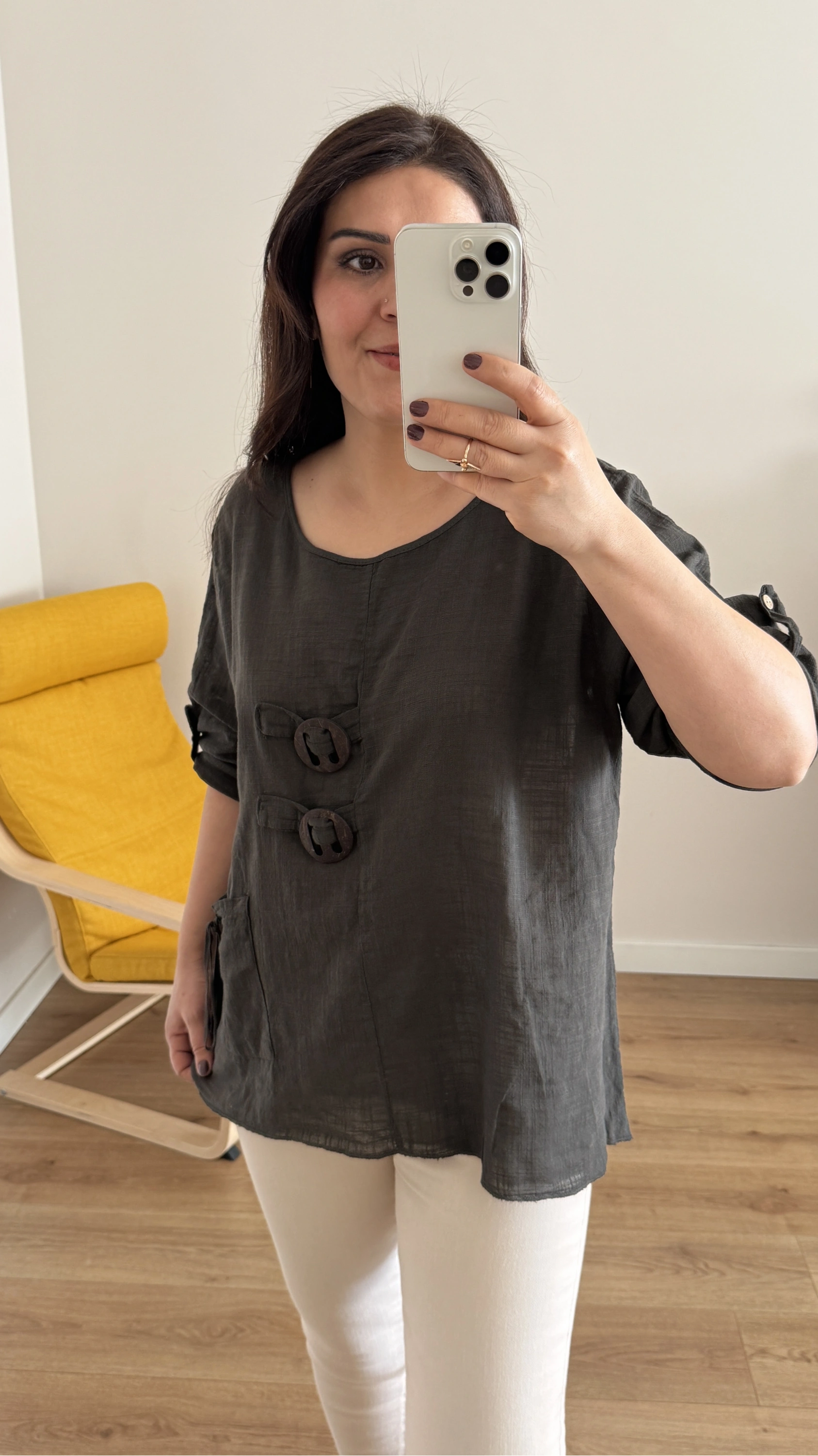 Düğme Detaylı Kahverengi İthal Bluz Hakkında