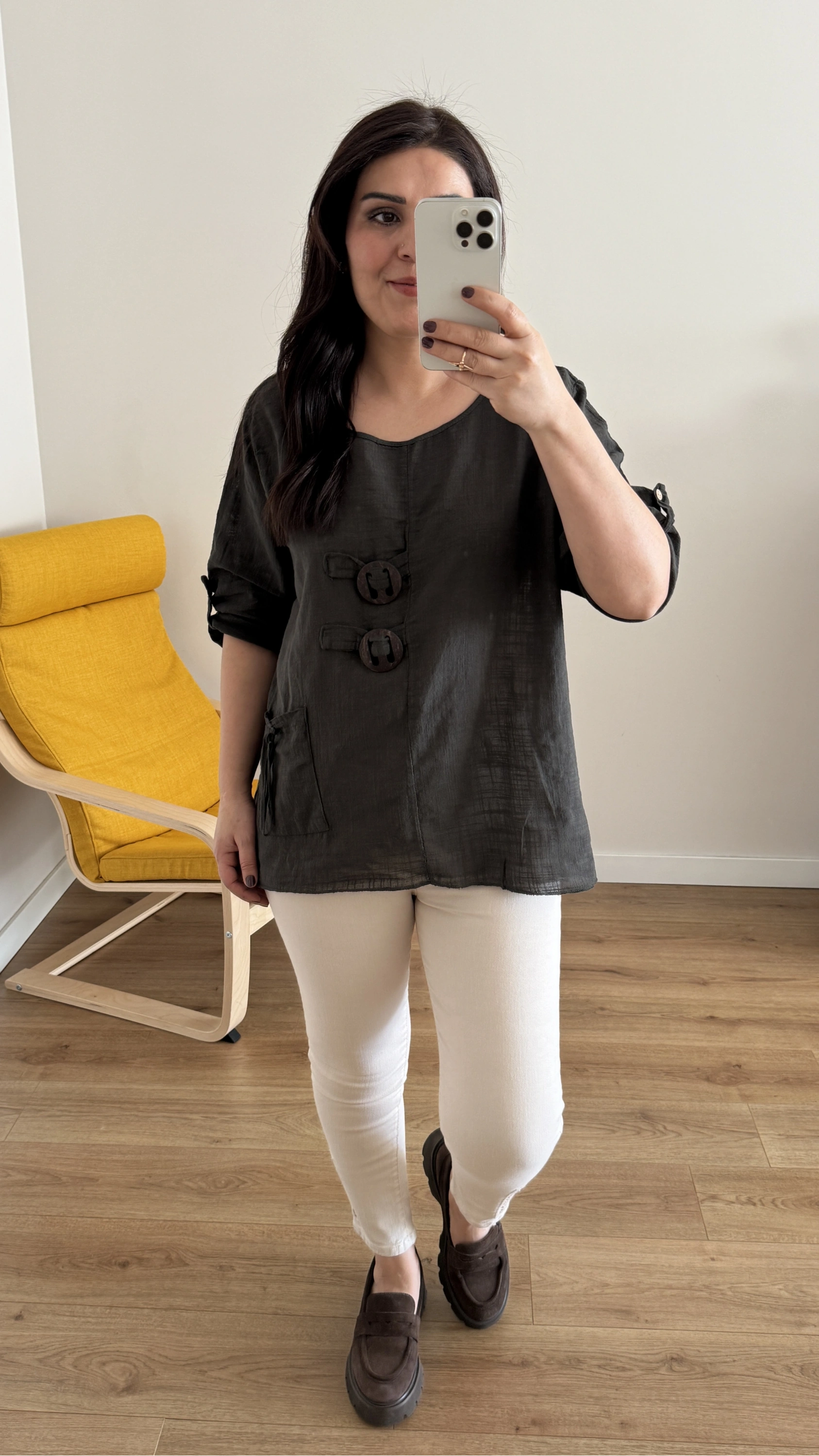 Düğme Detaylı Kahverengi İthal Bluz