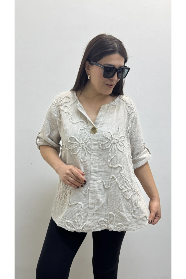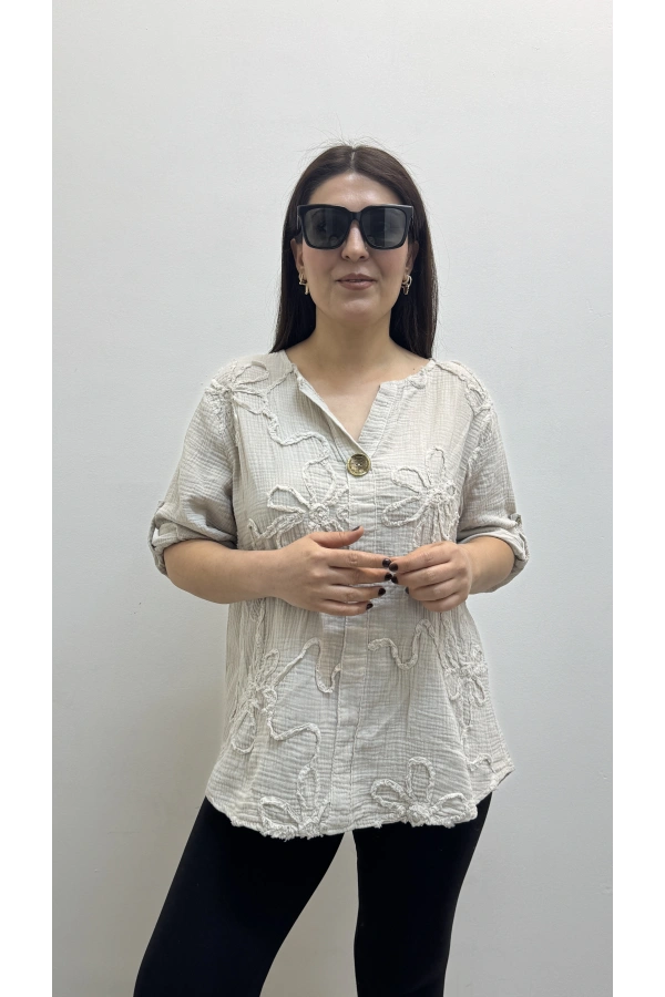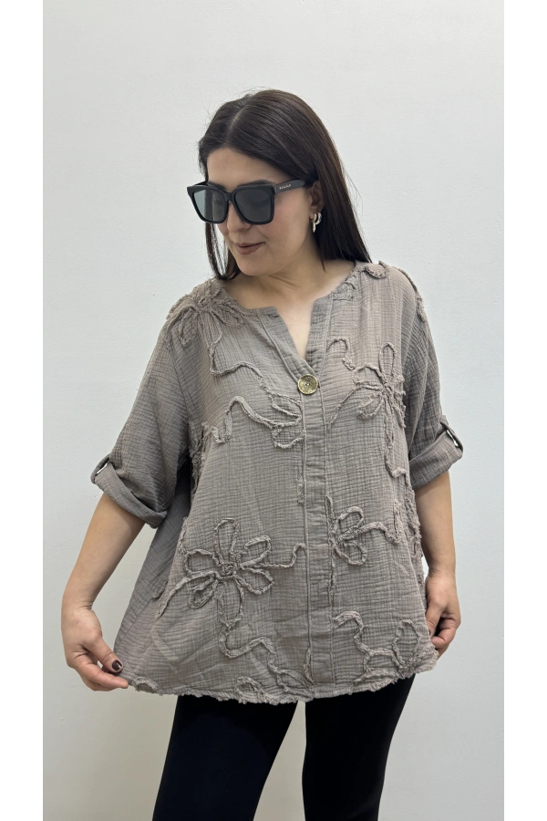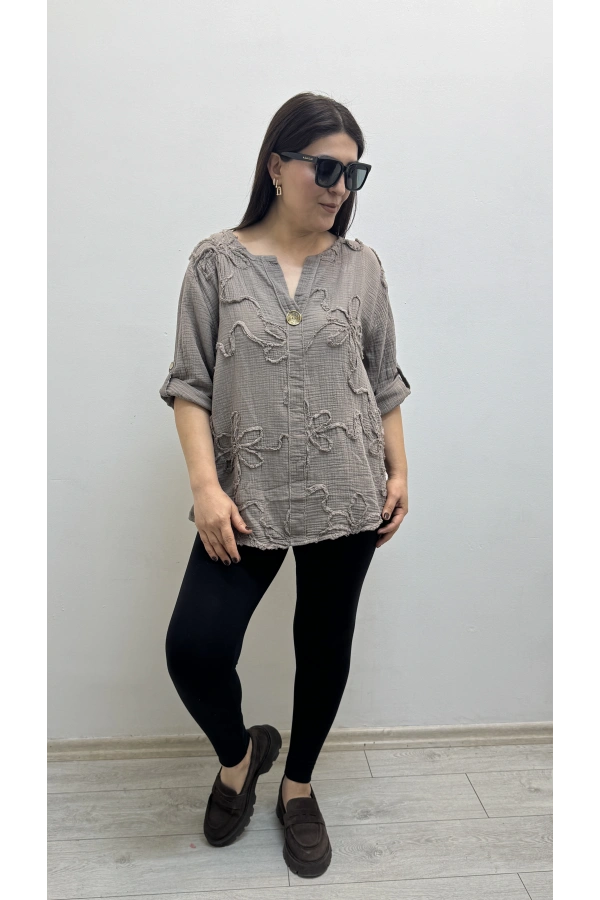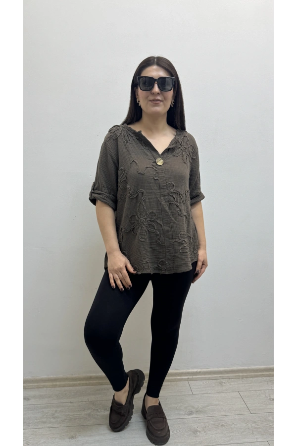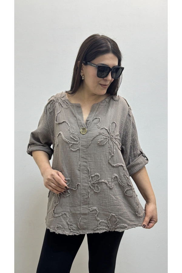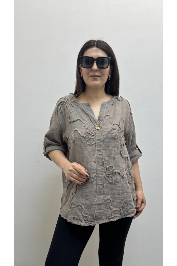 Etek Ucu Bağlamalı Payetli Leopar Desenli Kahverengi İthal Gömlek Hakkında