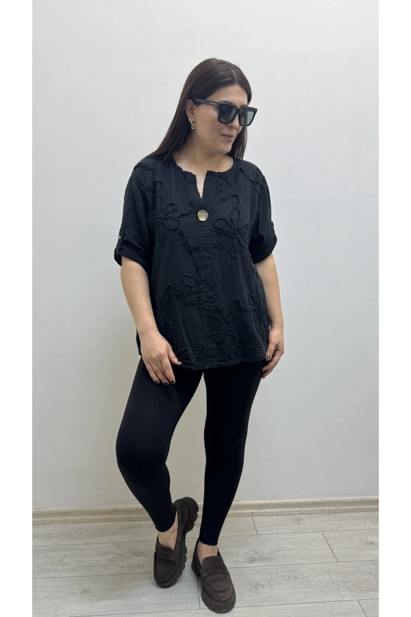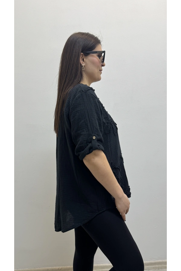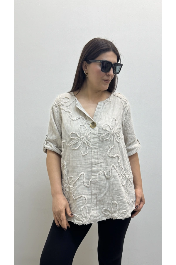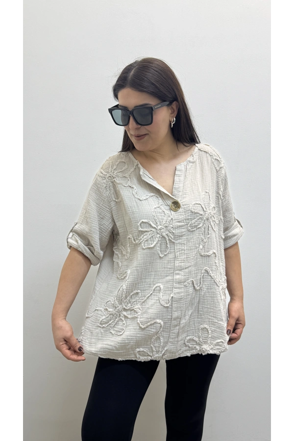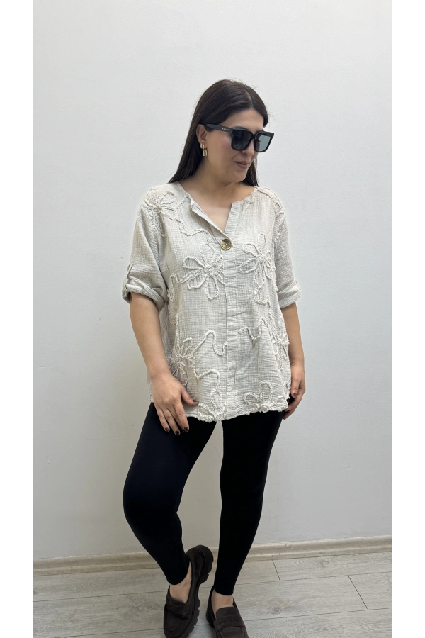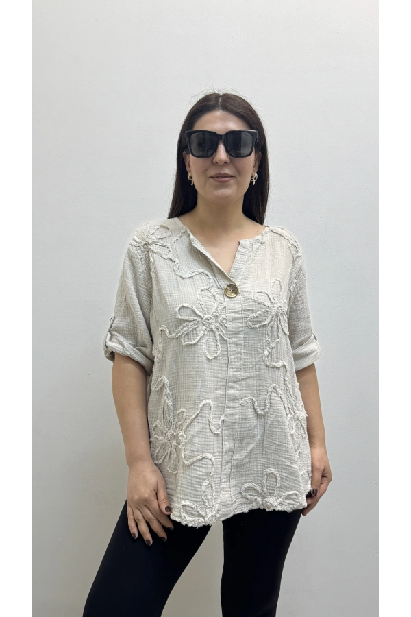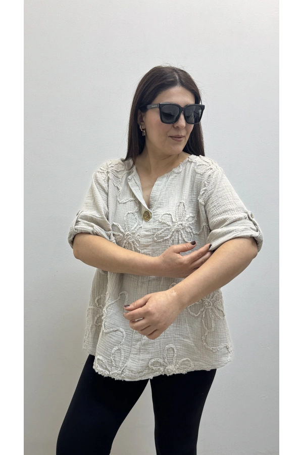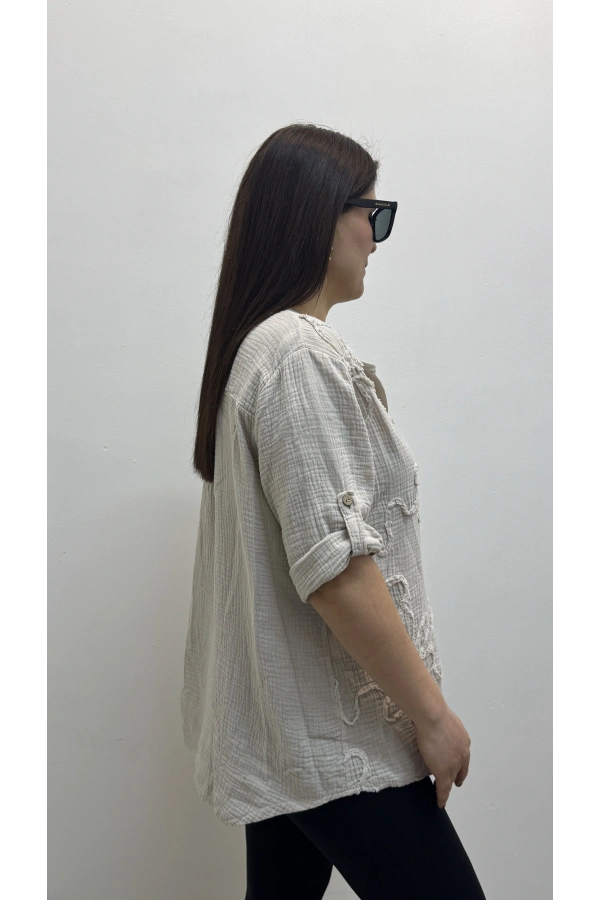 Etek Ucu Bağlamalı Payetli Leopar Desenli Kahverengi İthal Gömlek Hakkında
