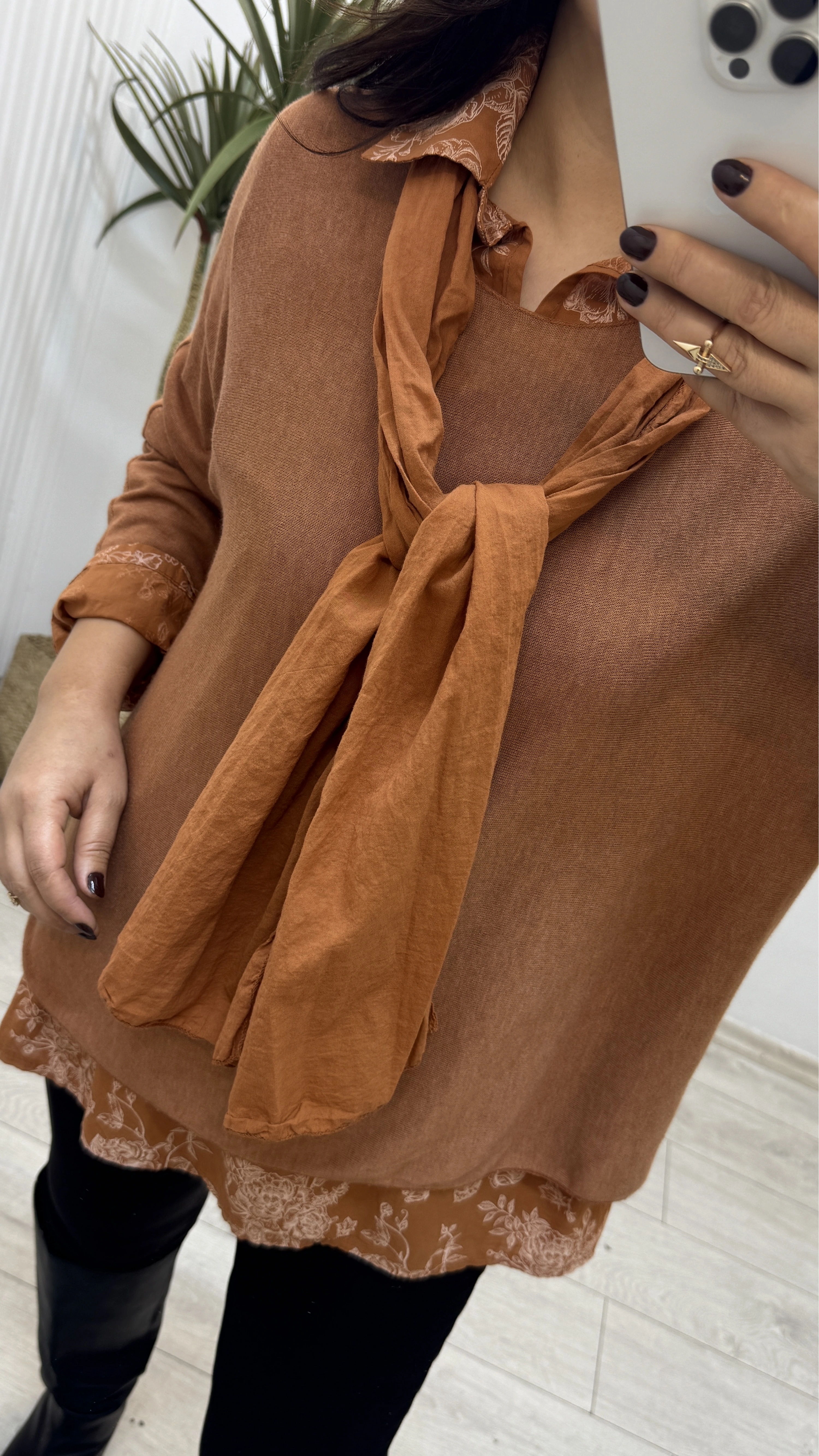 Gömlek Yaka Üçlü İthal Tarçın Rengi Takım