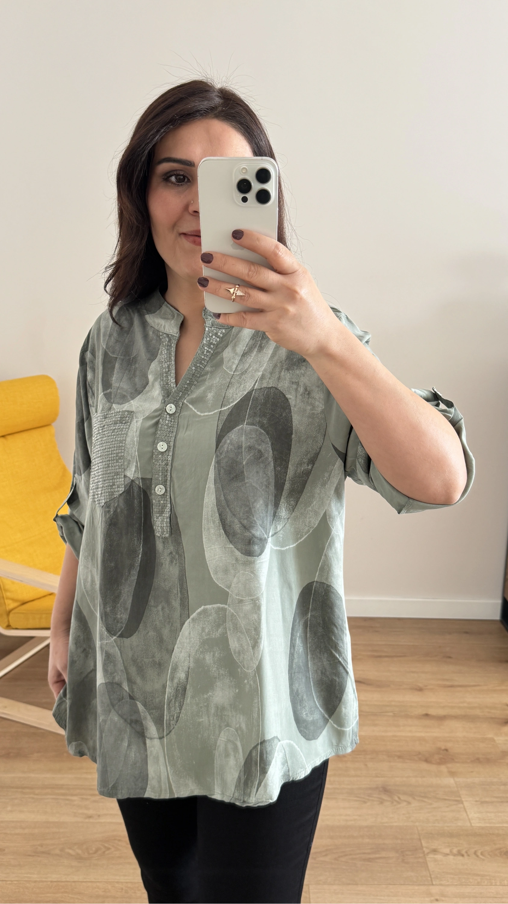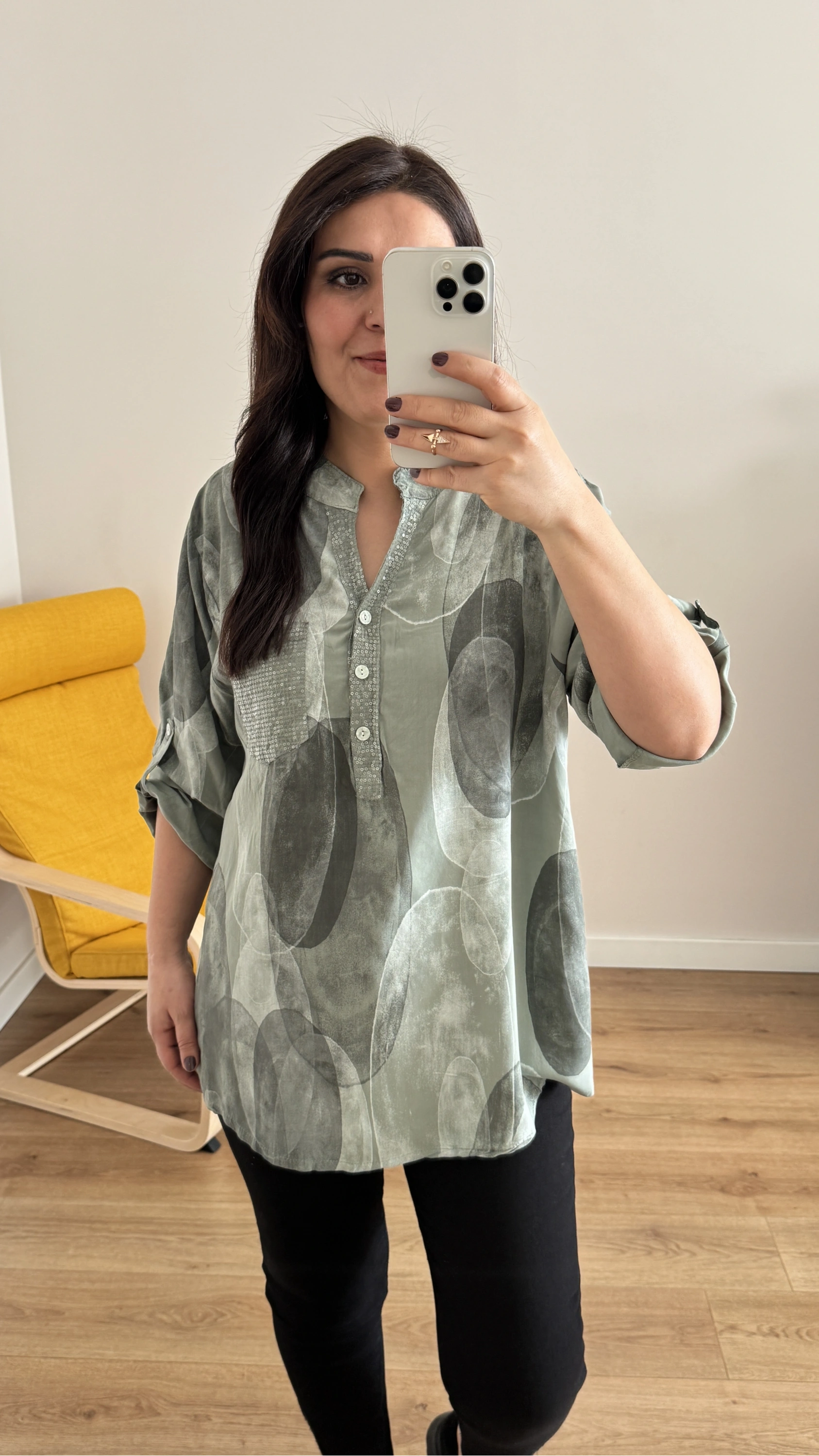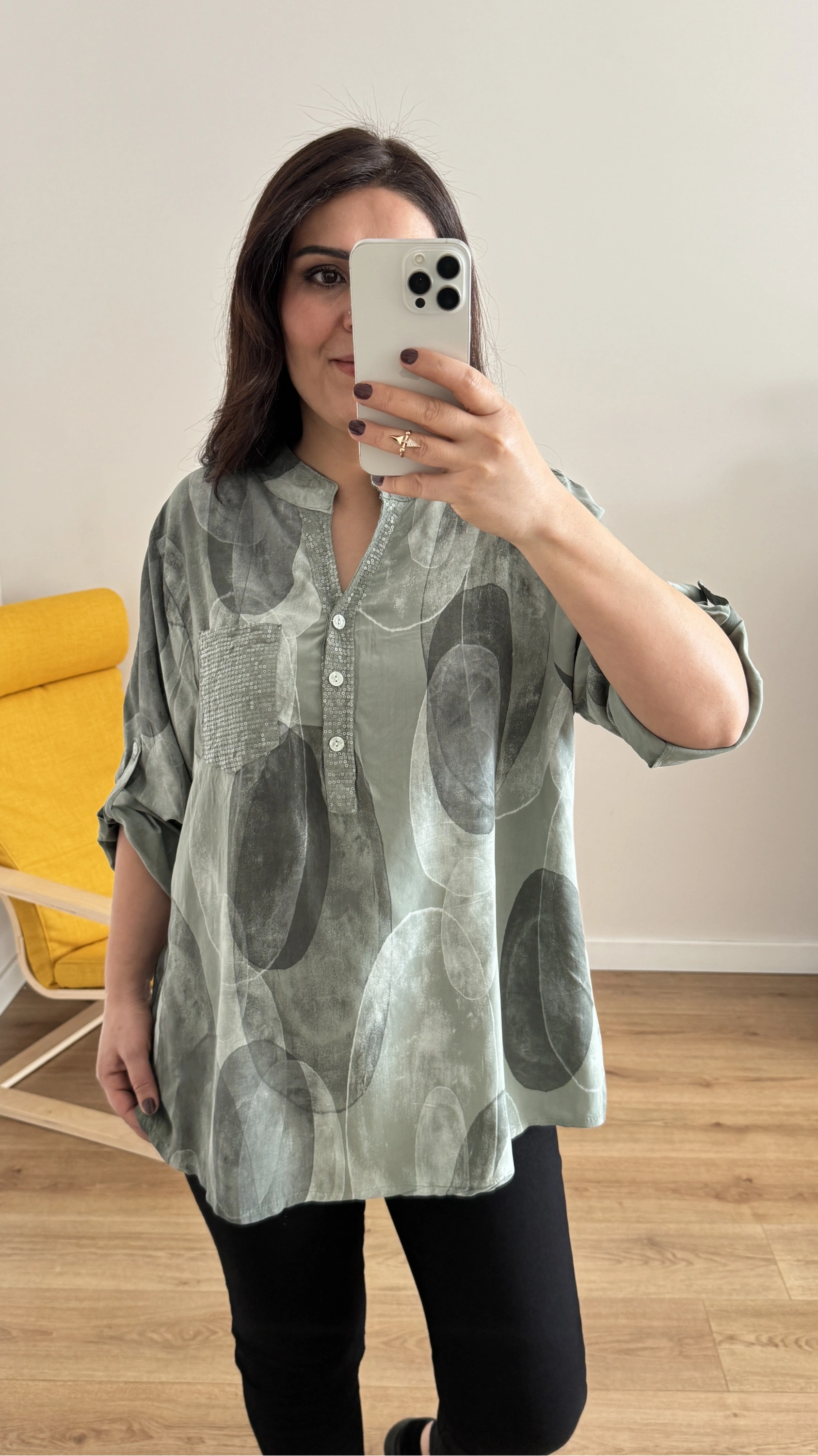 Hakim Yaka Pul Payet Desenli Haki Yeşil İthal Gömlek Hakkında