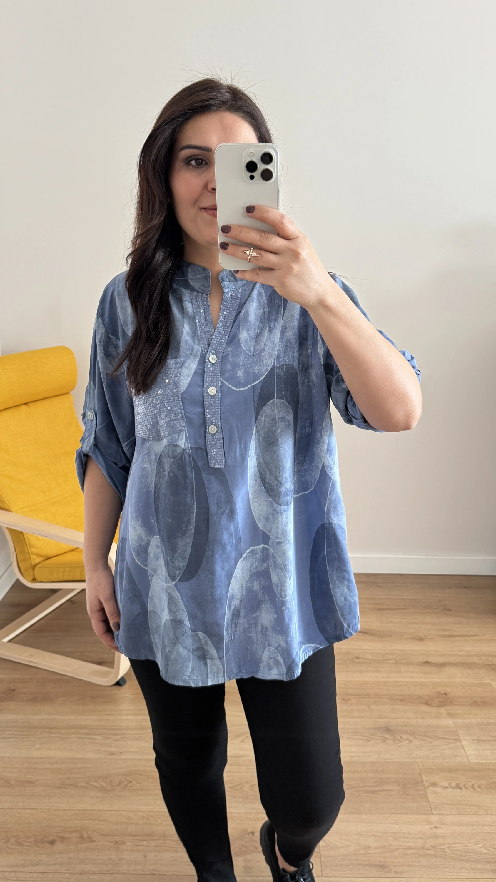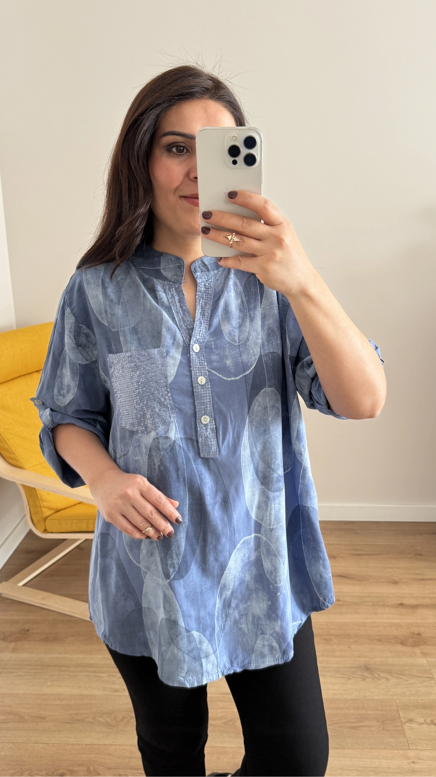 Hakim Yaka Pul Payet İşlemeli Mavi İthal Gömlek