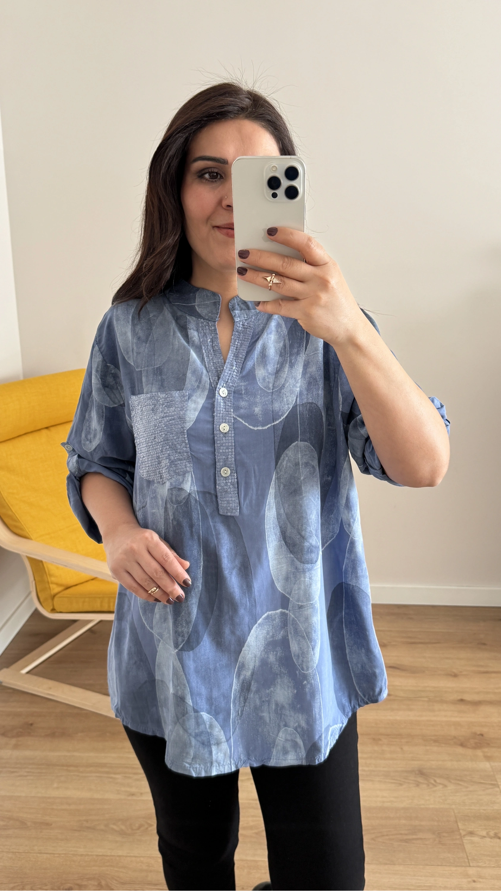 Hakim Yaka Pul Payet İşlemeli Mavi İthal Gömlek Hakkında