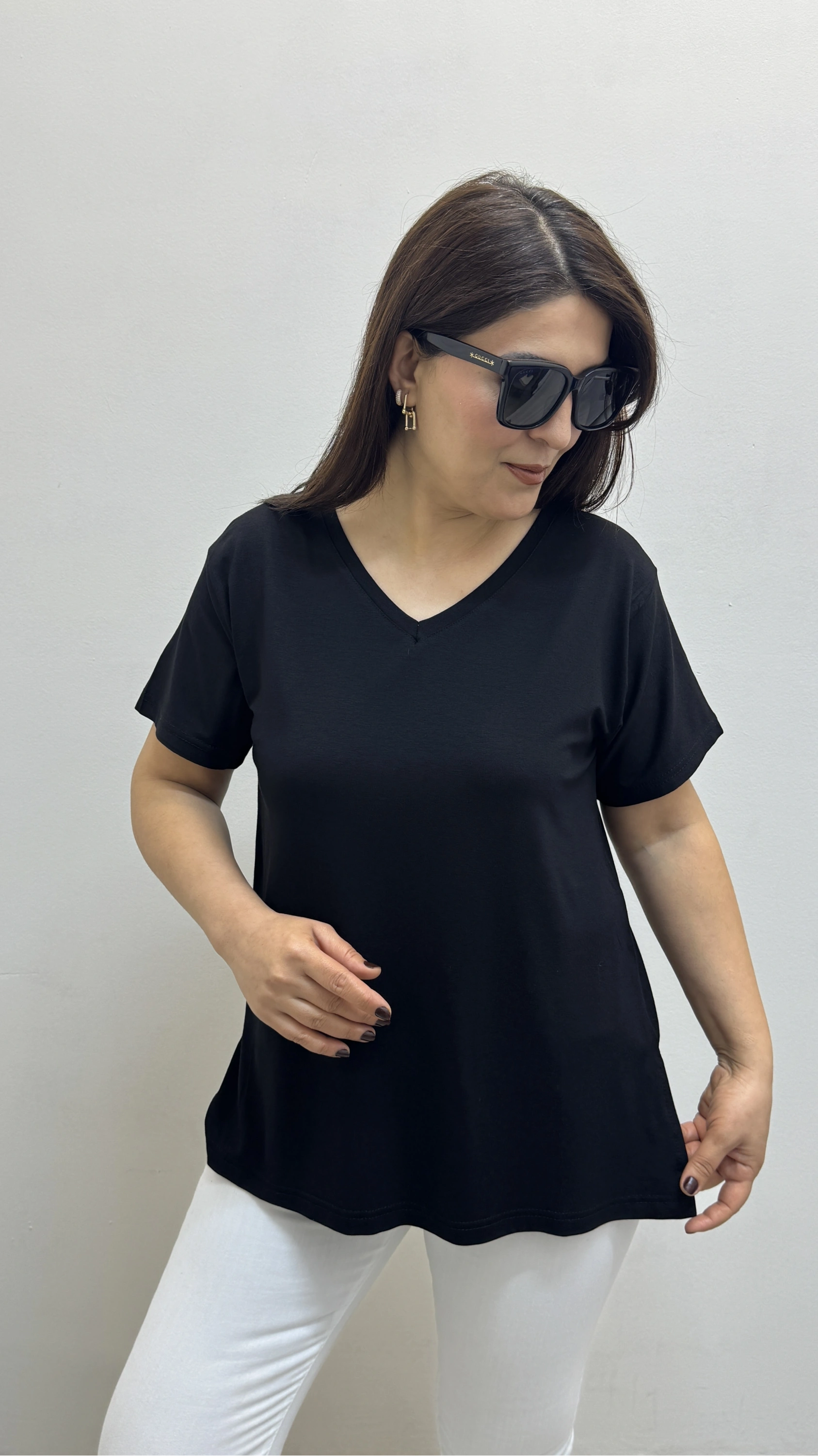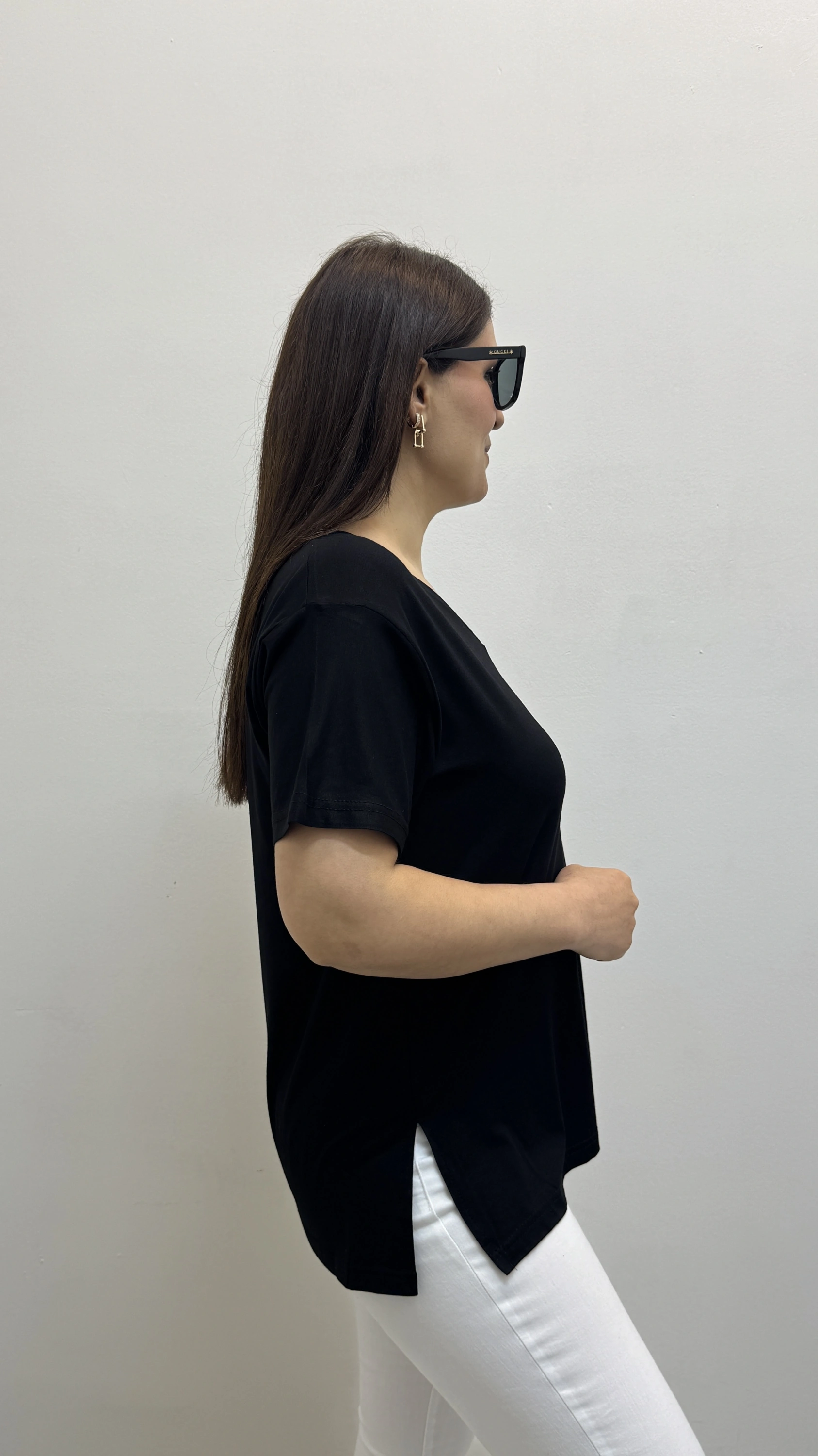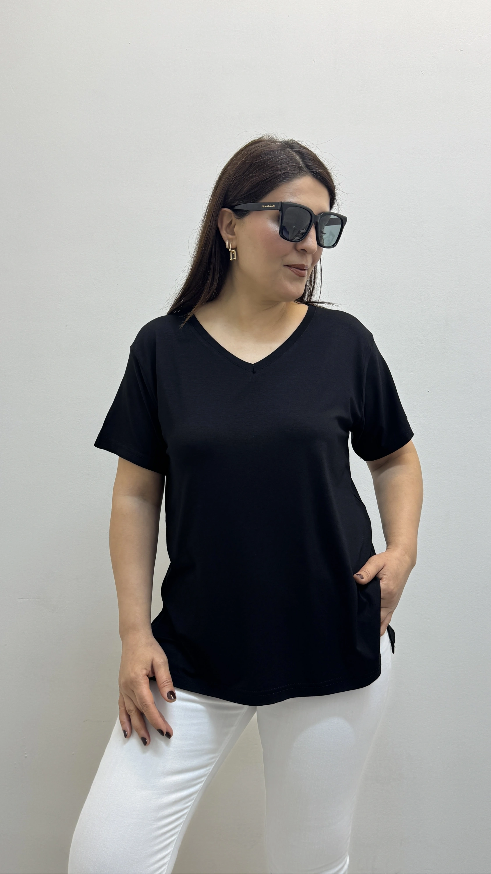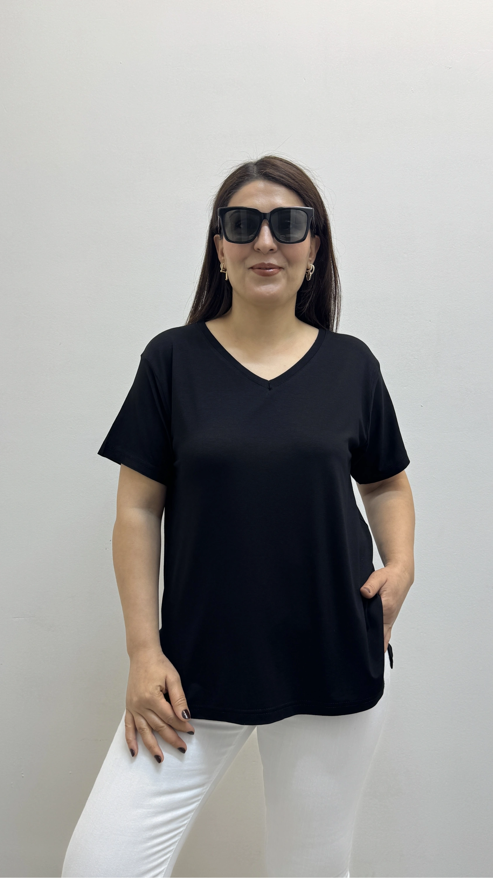 İki Yandan Yırtmaçlı V Yaka Siyah Basic Tişört Hakkında