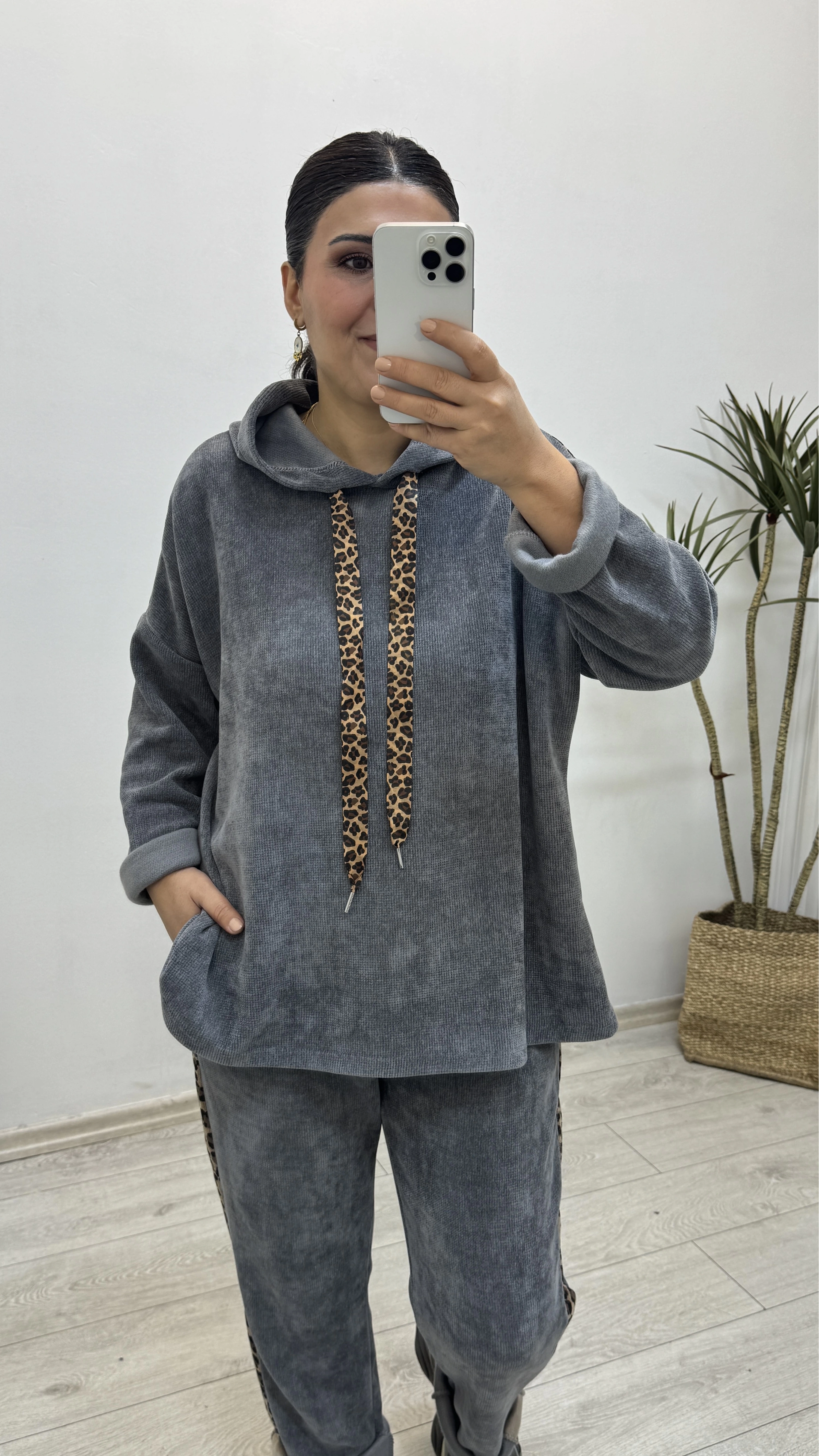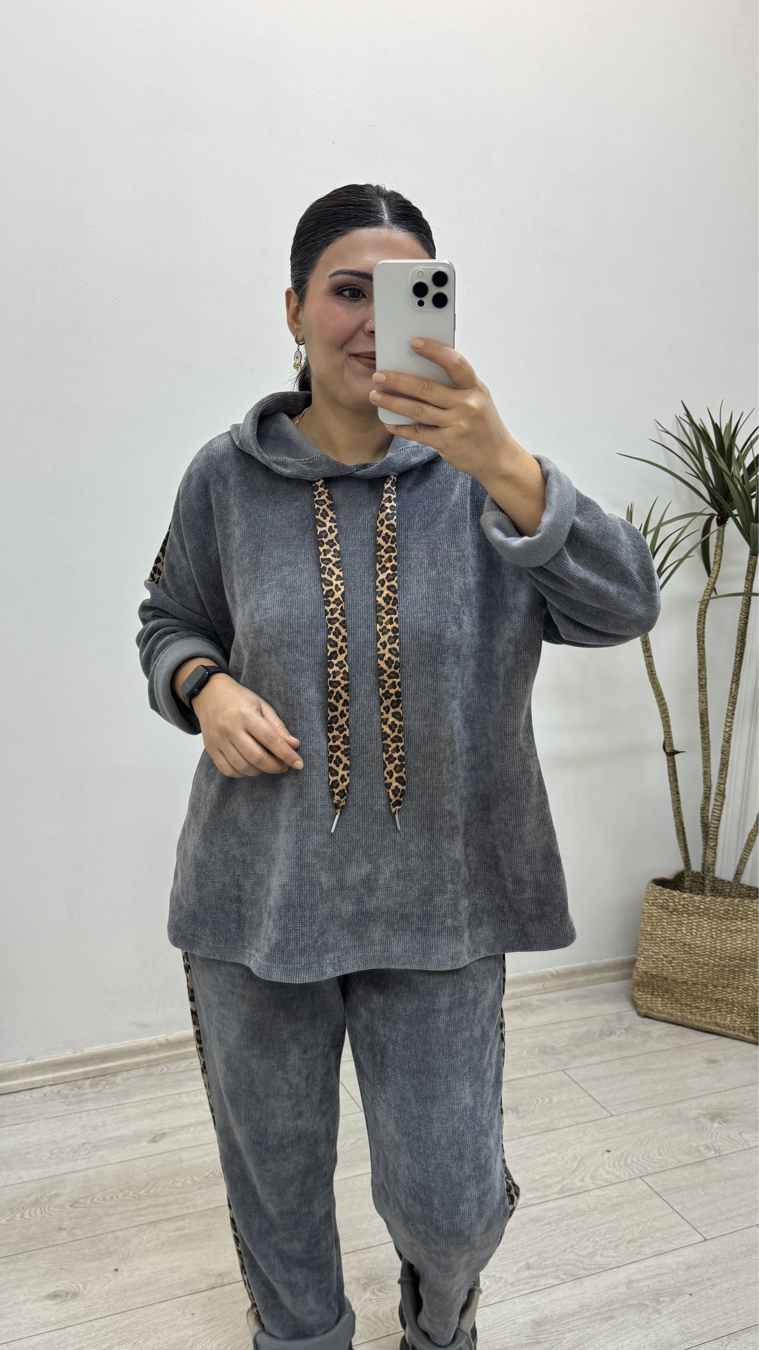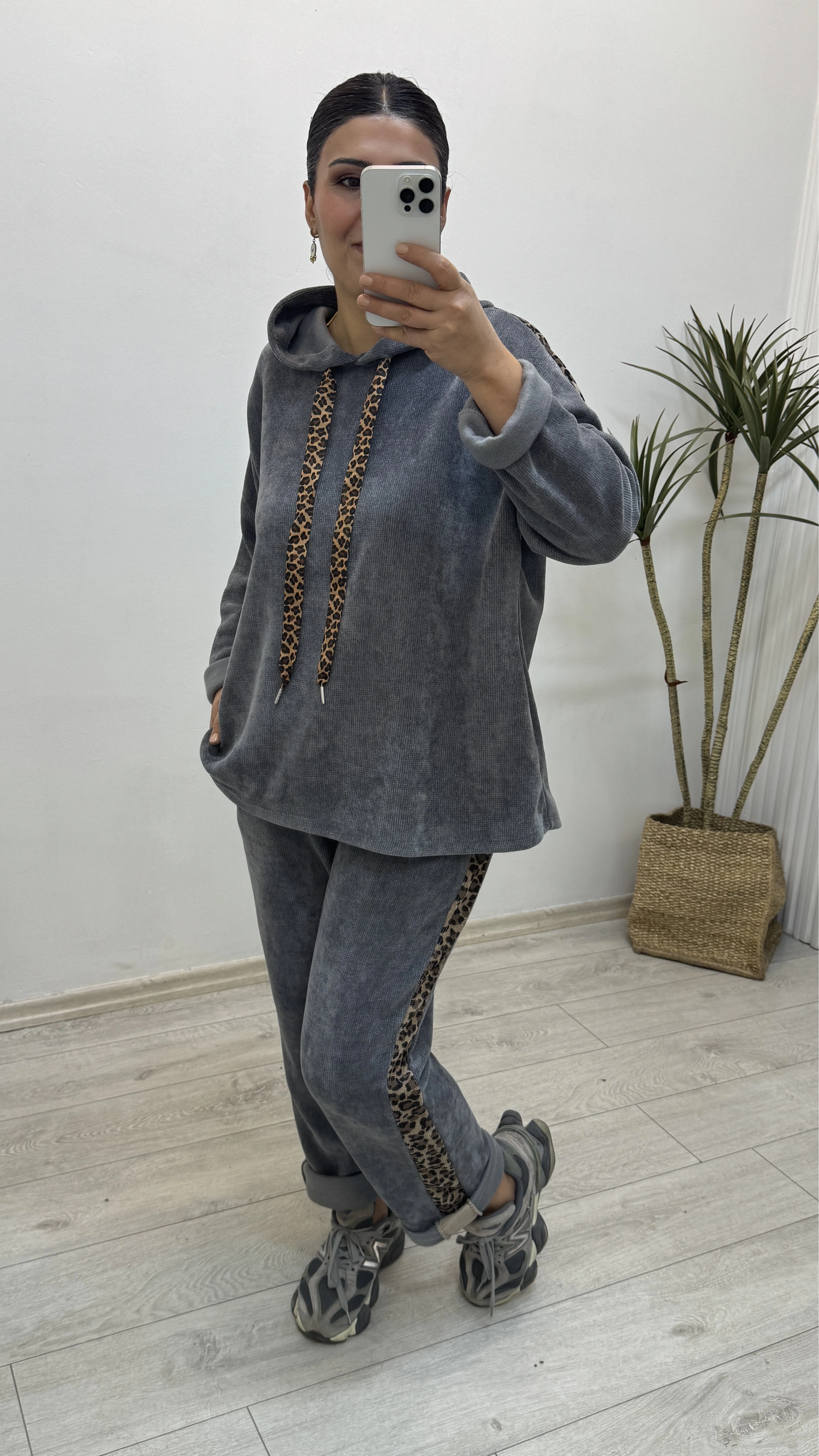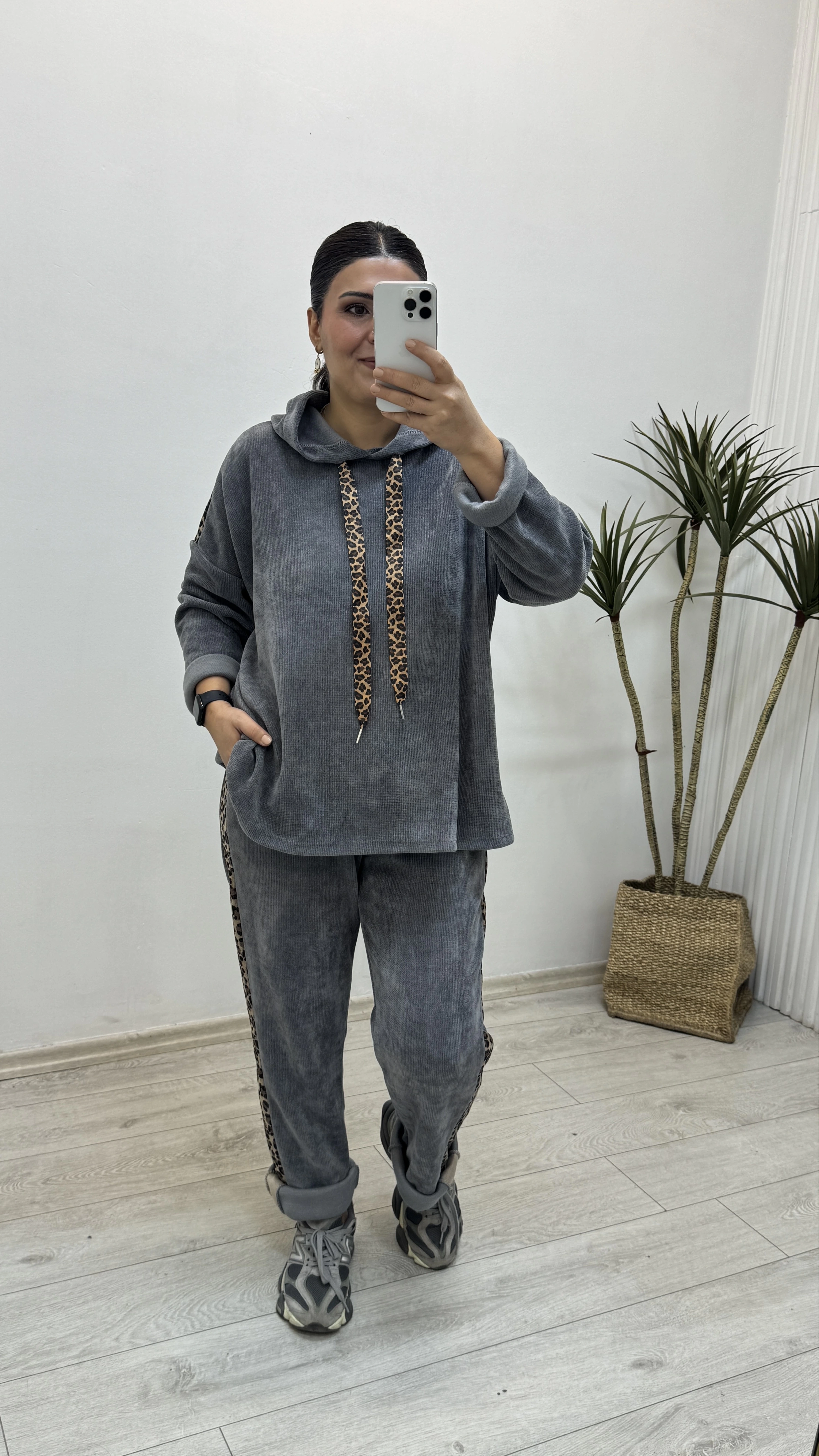 İthal Kapüşonlu Gri Kadife Takım Hakkında