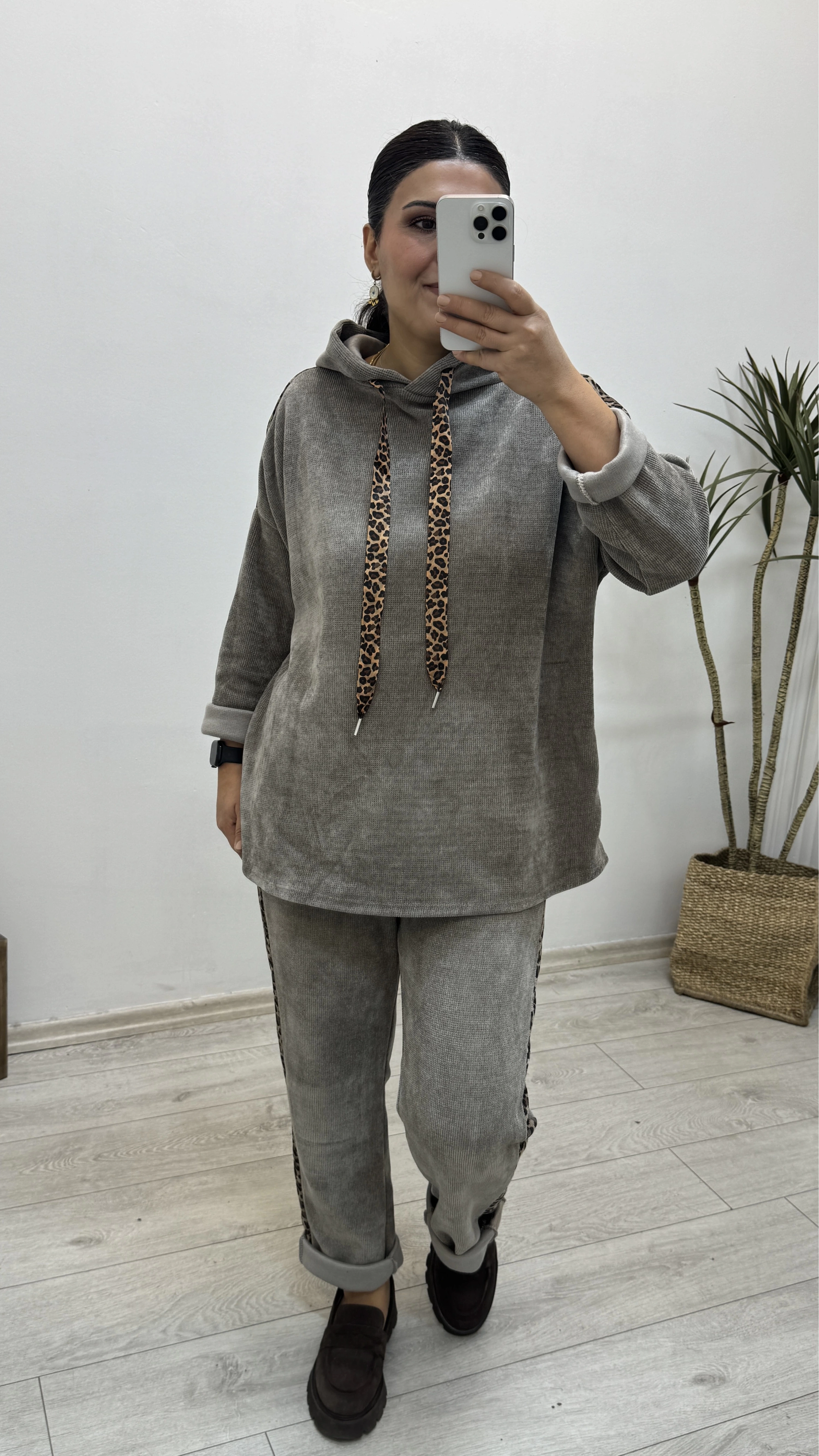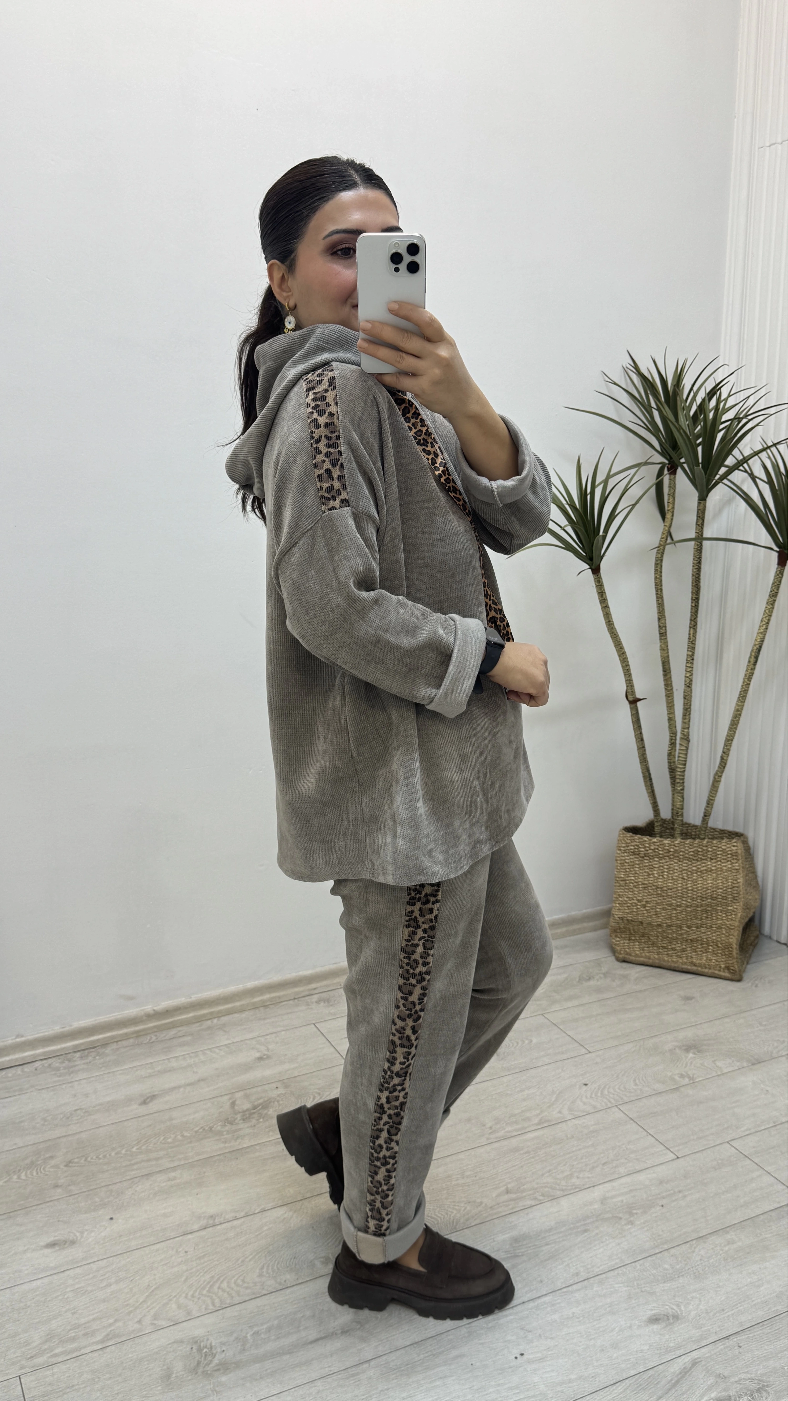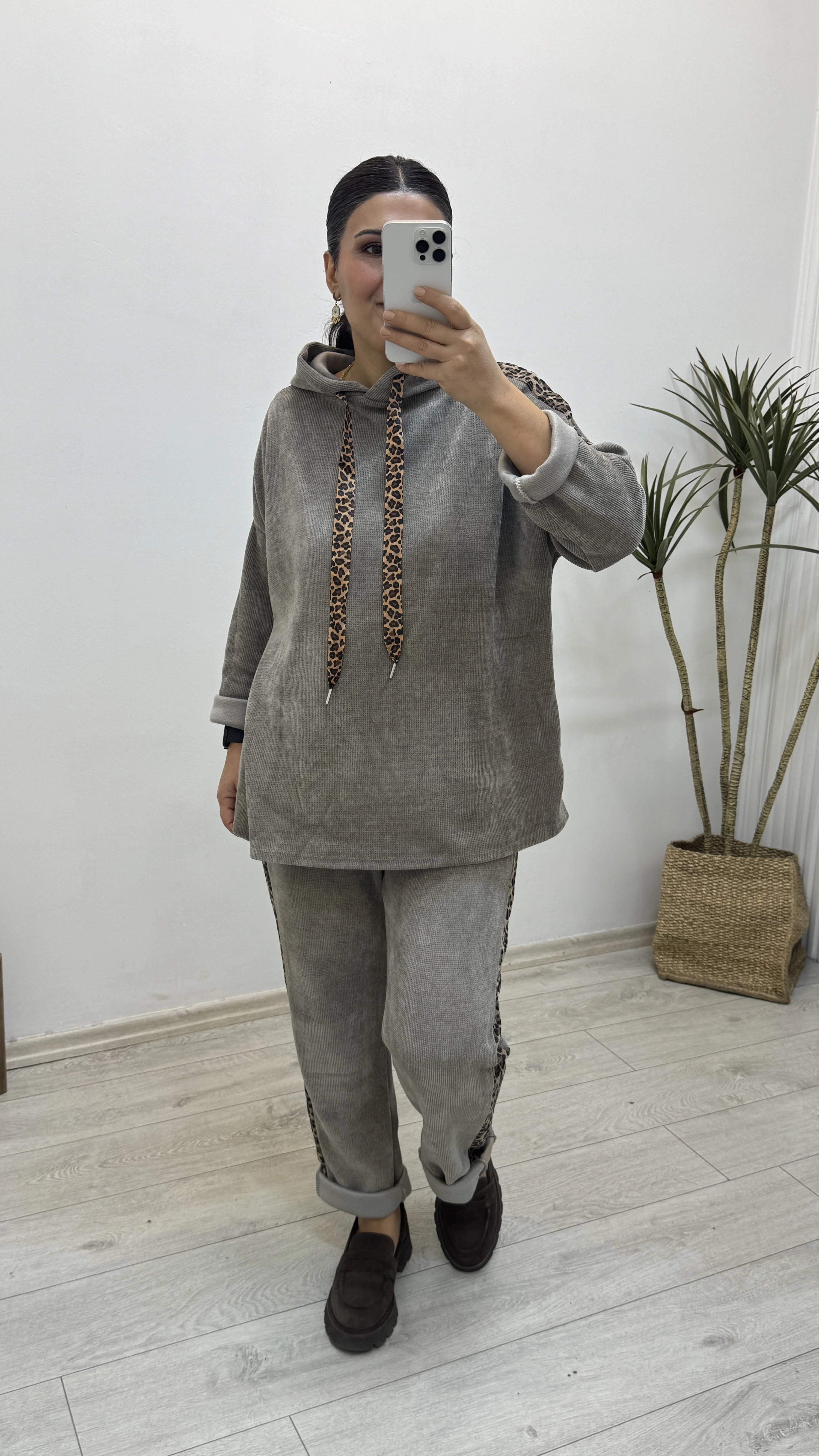 İthal Kapüşonlu Vizonrengi Kadife Takım Hakkında