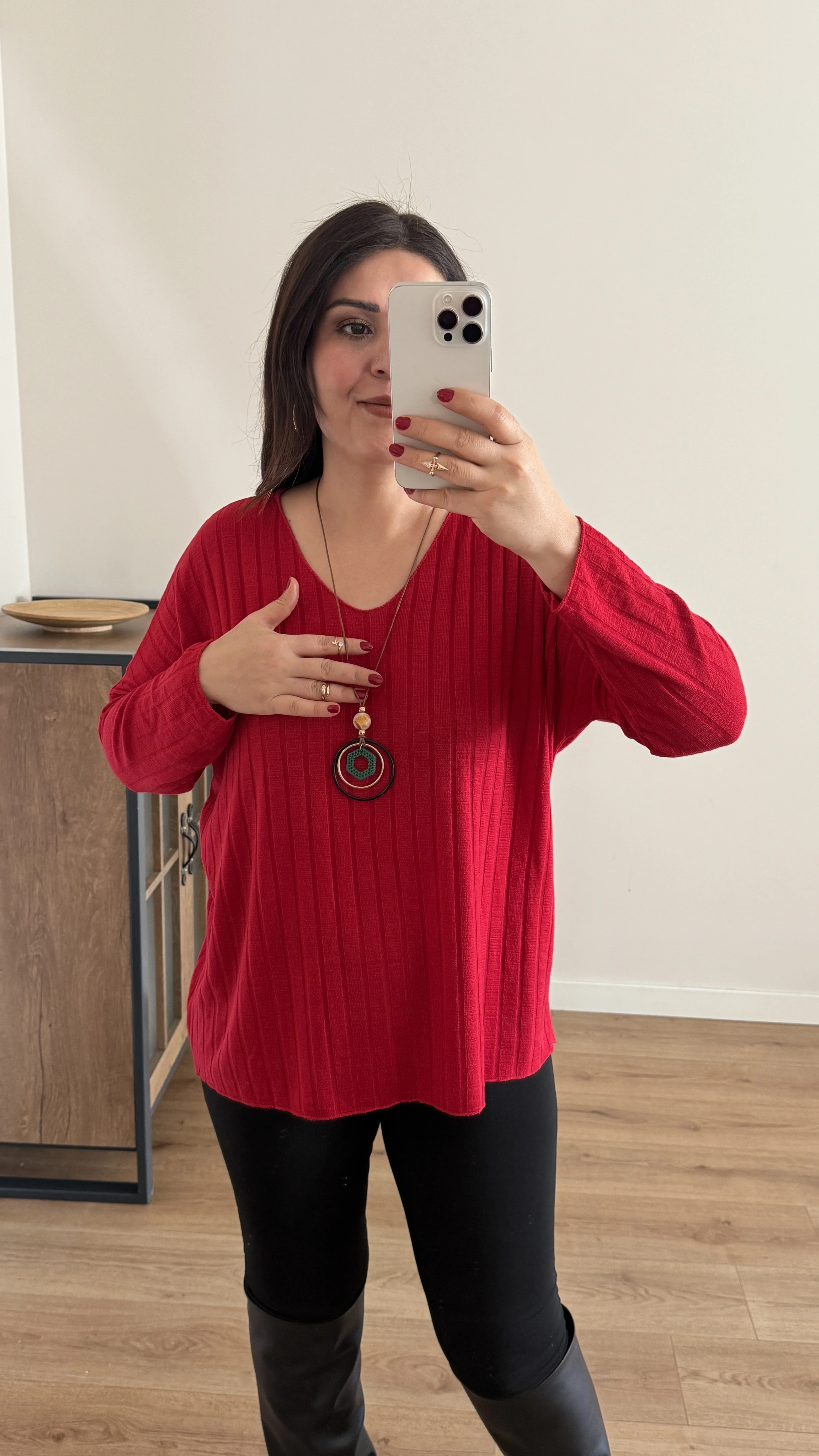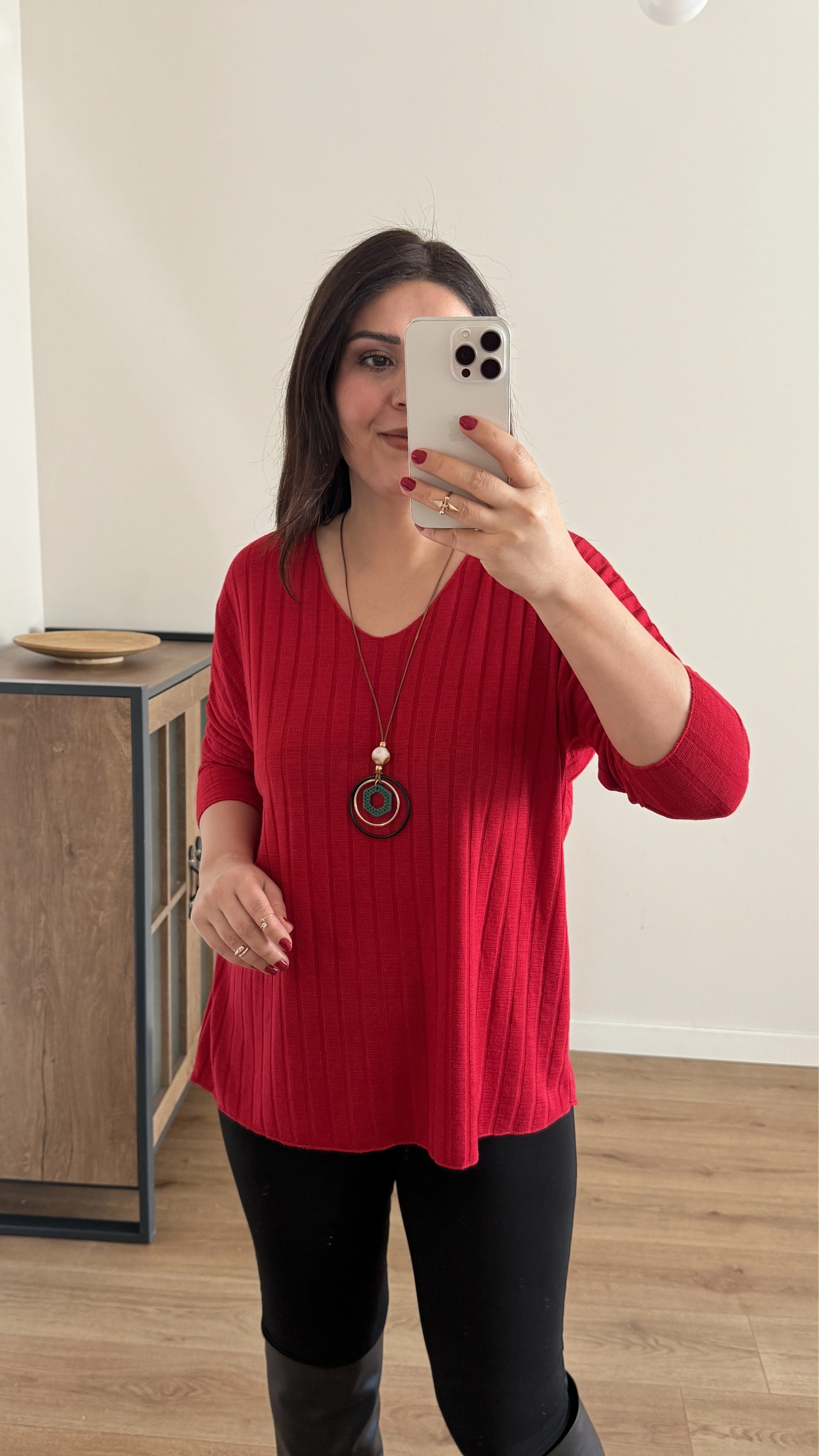 İthal Kolyeli Kırmızı Bluz