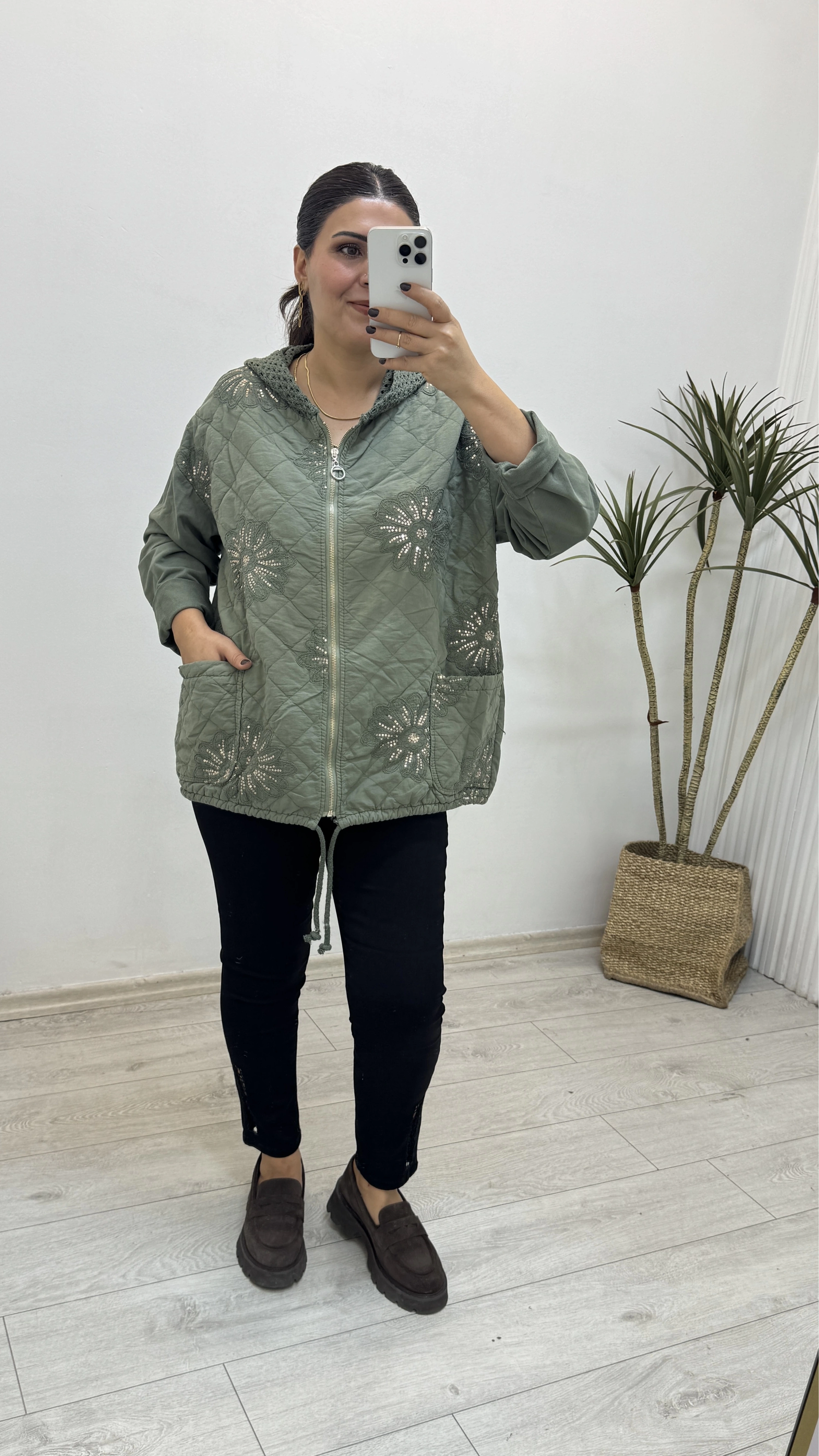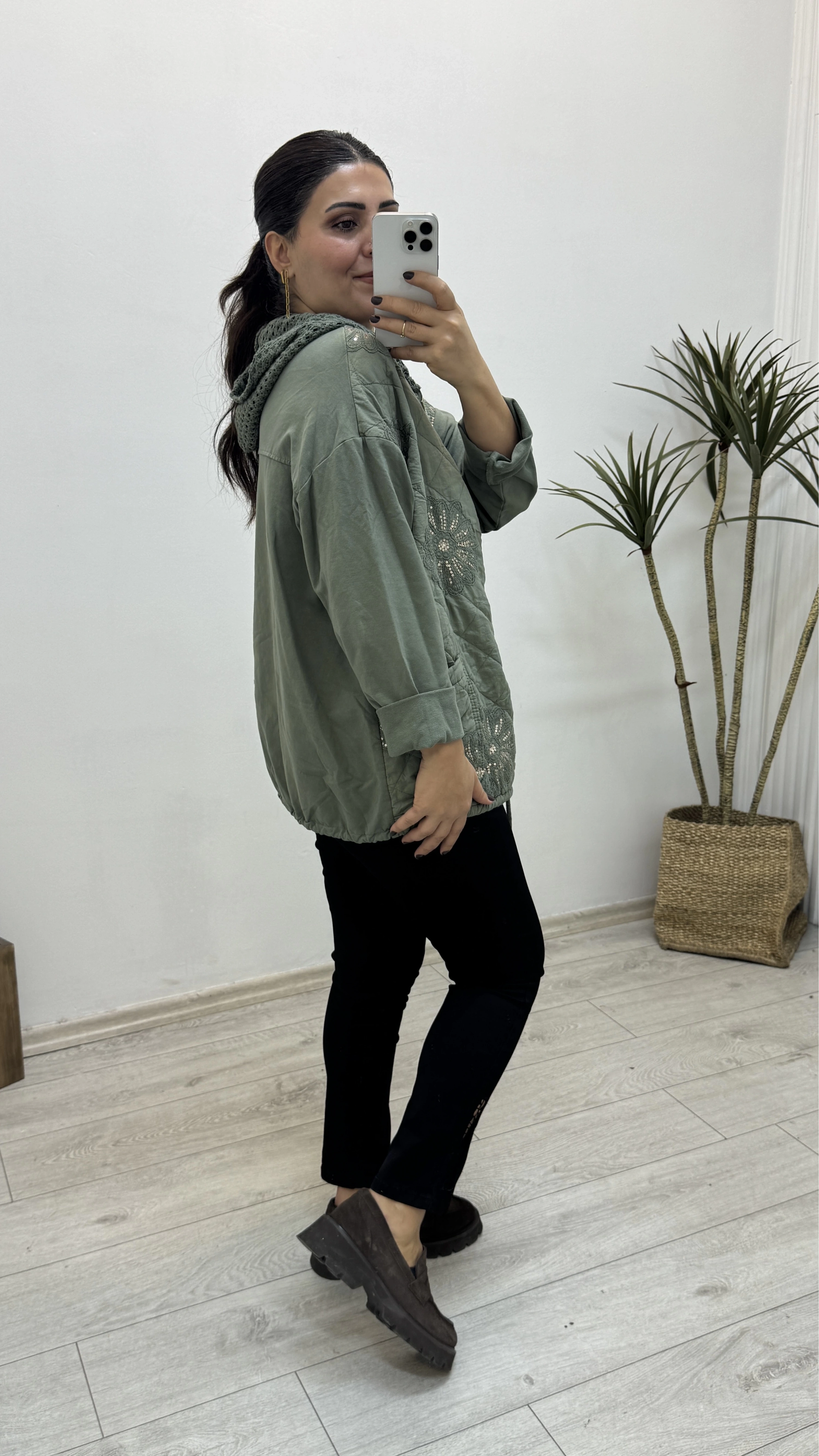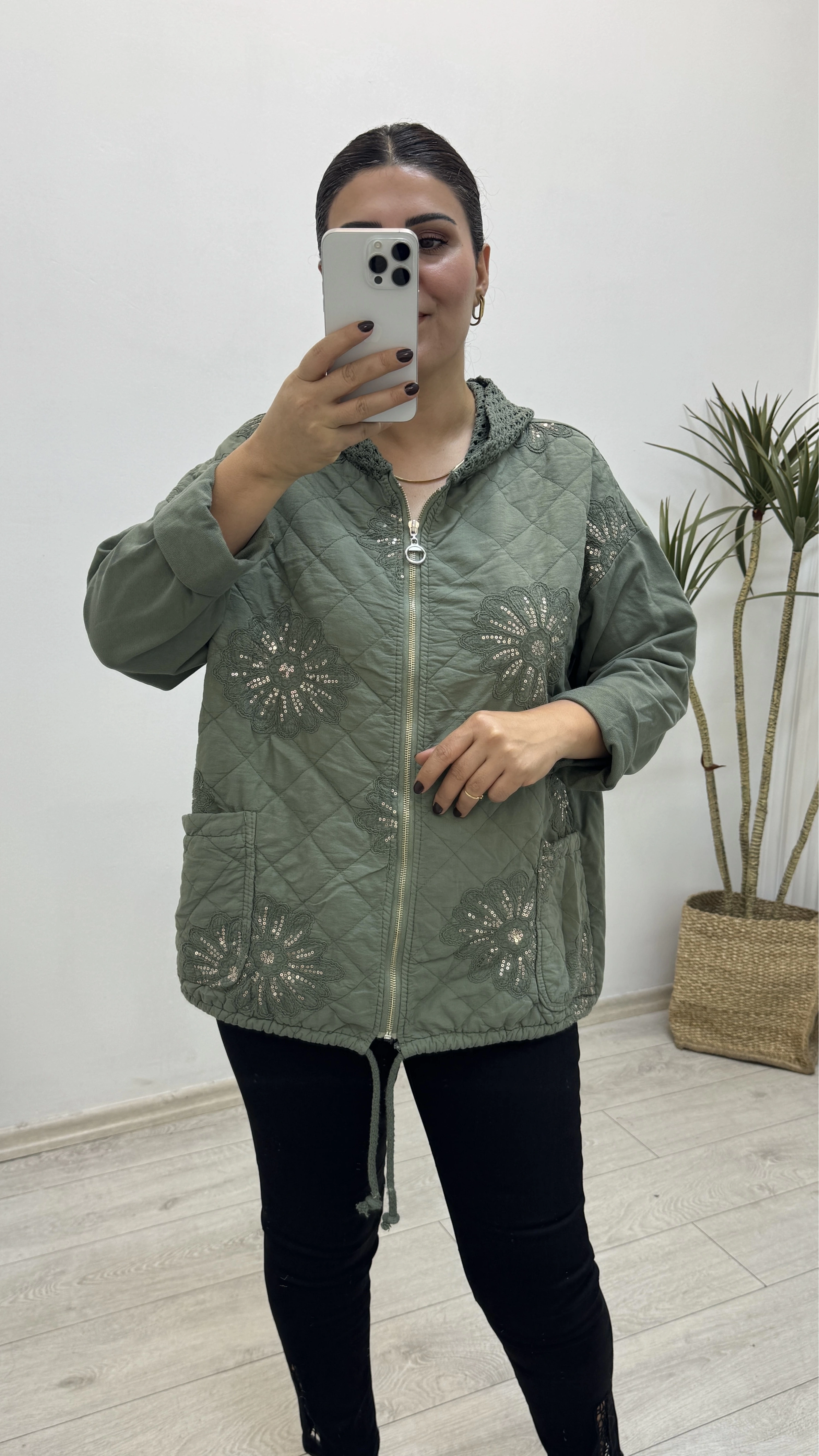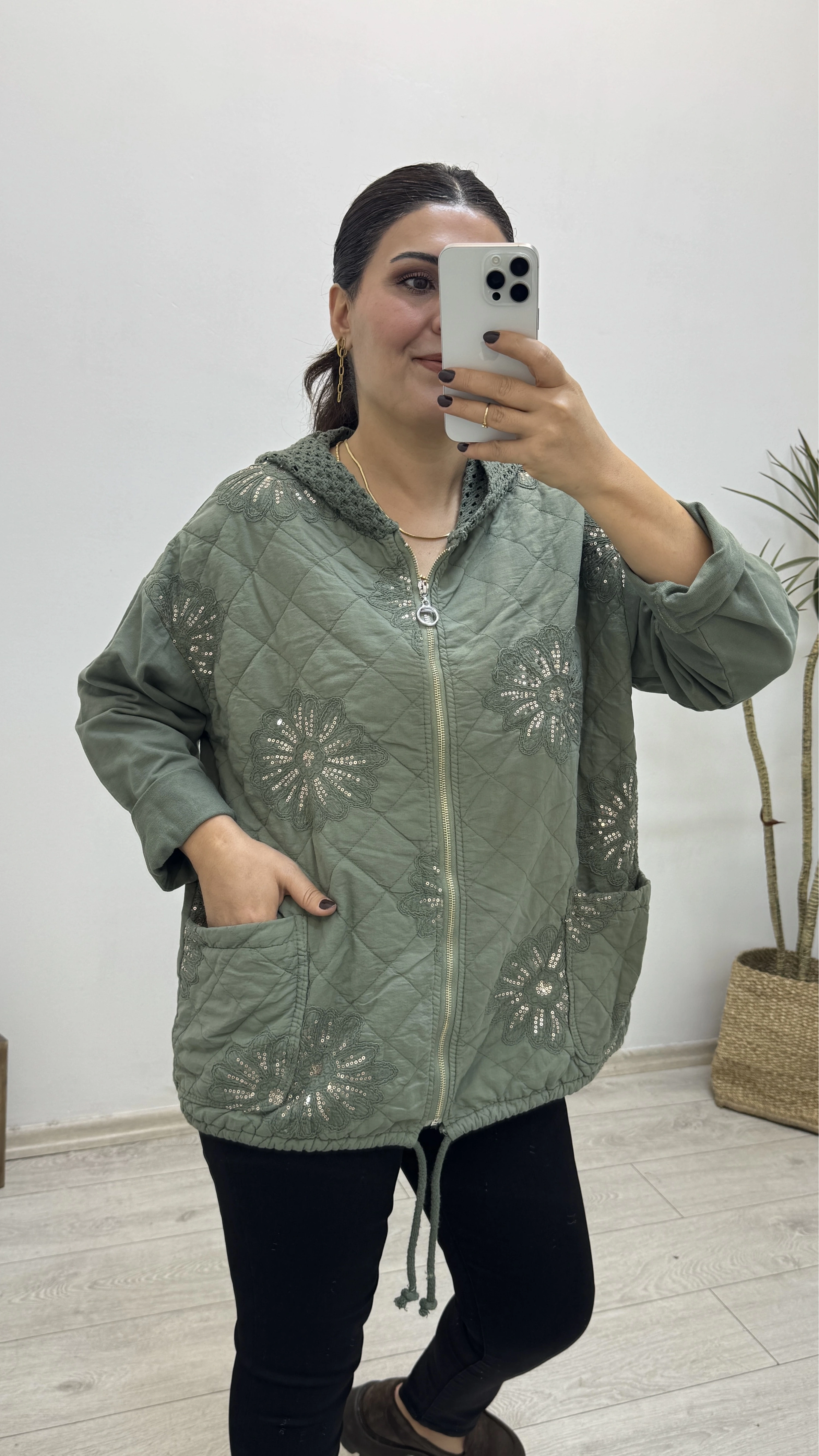İthal Nakış İşlemeli Kapitone Haki Yeşil Ceket Hakkında