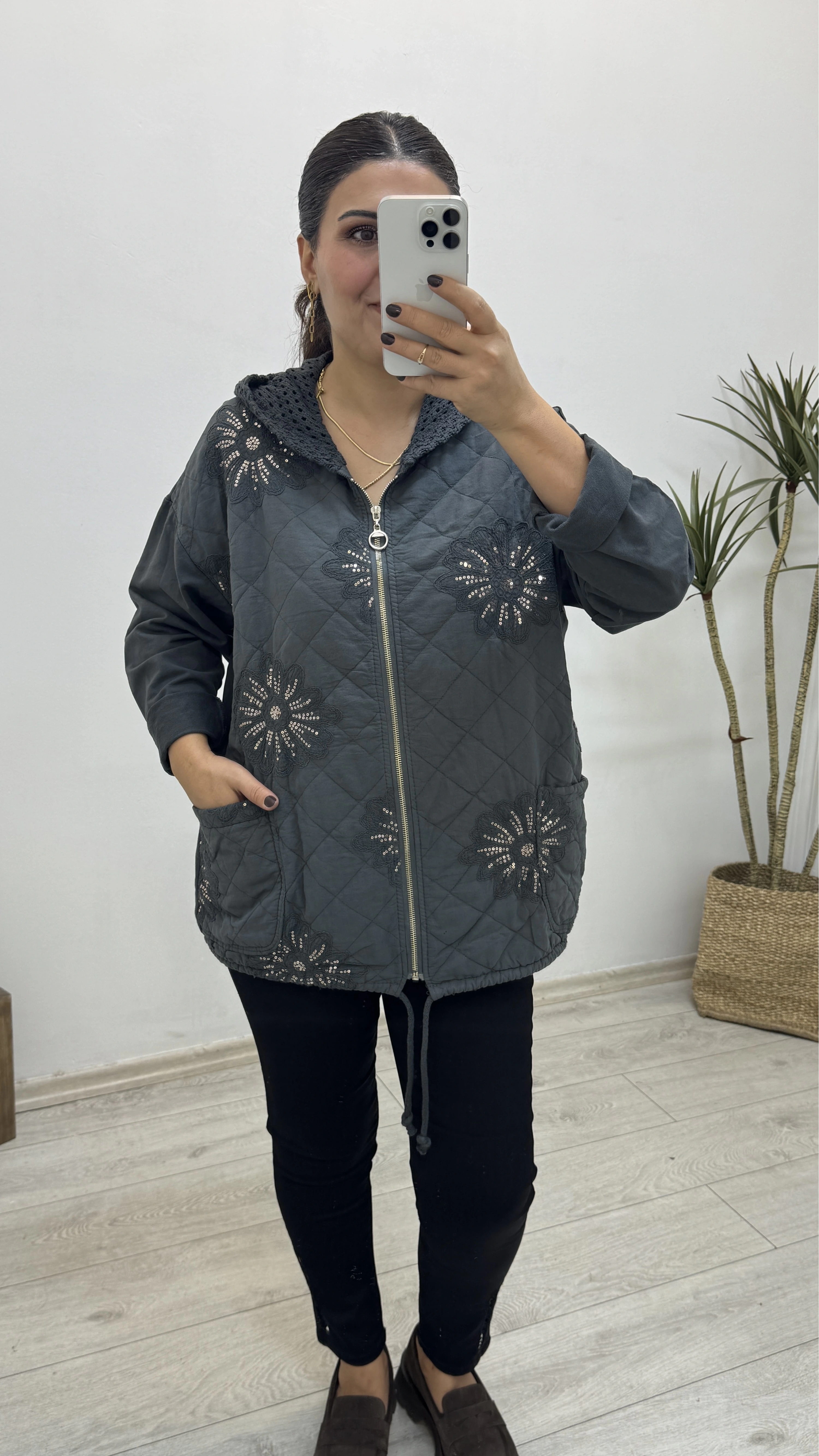 İthal Nakış İşlemeli Kapitone Krem Rengi Ceket Hakkında