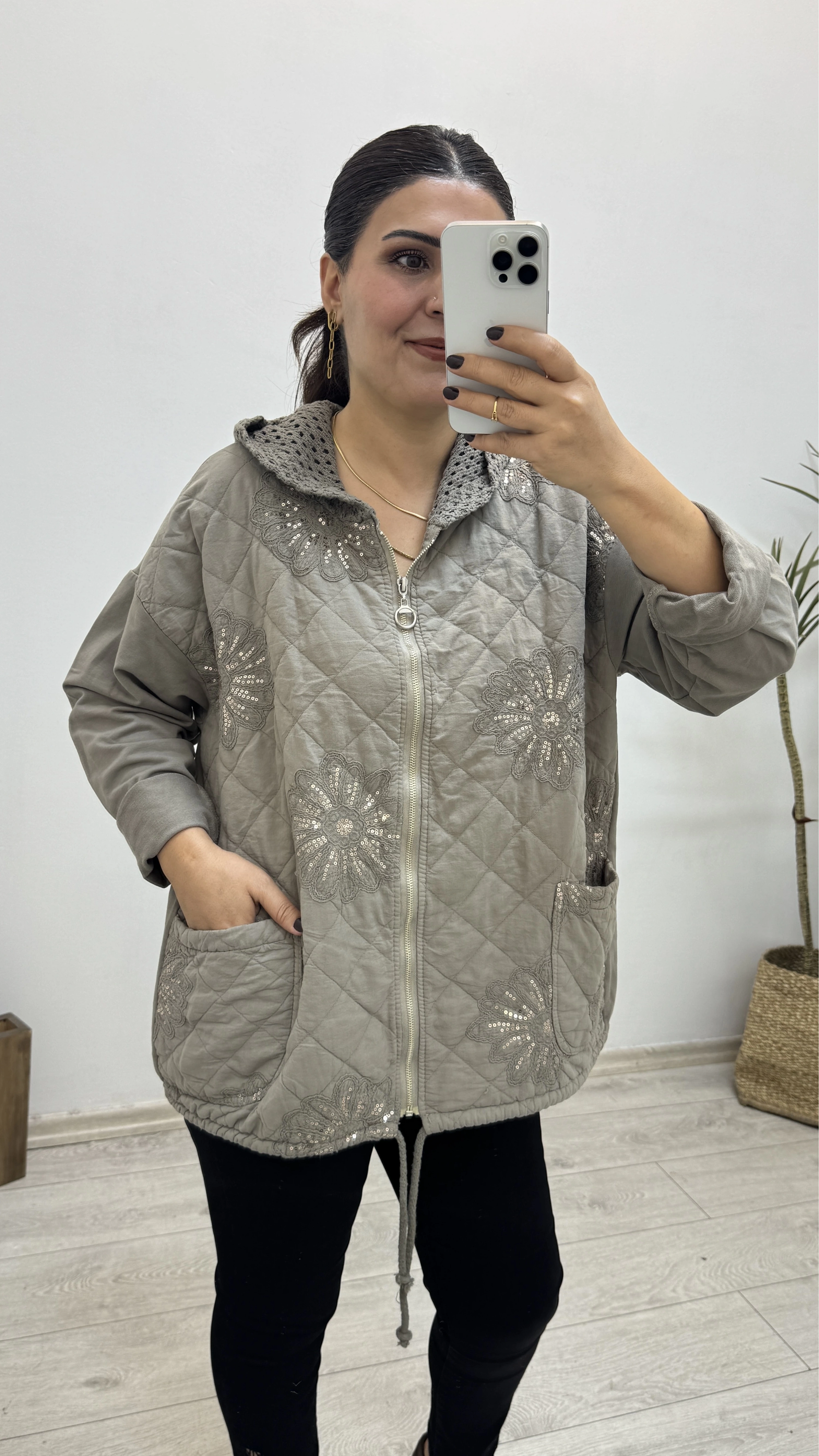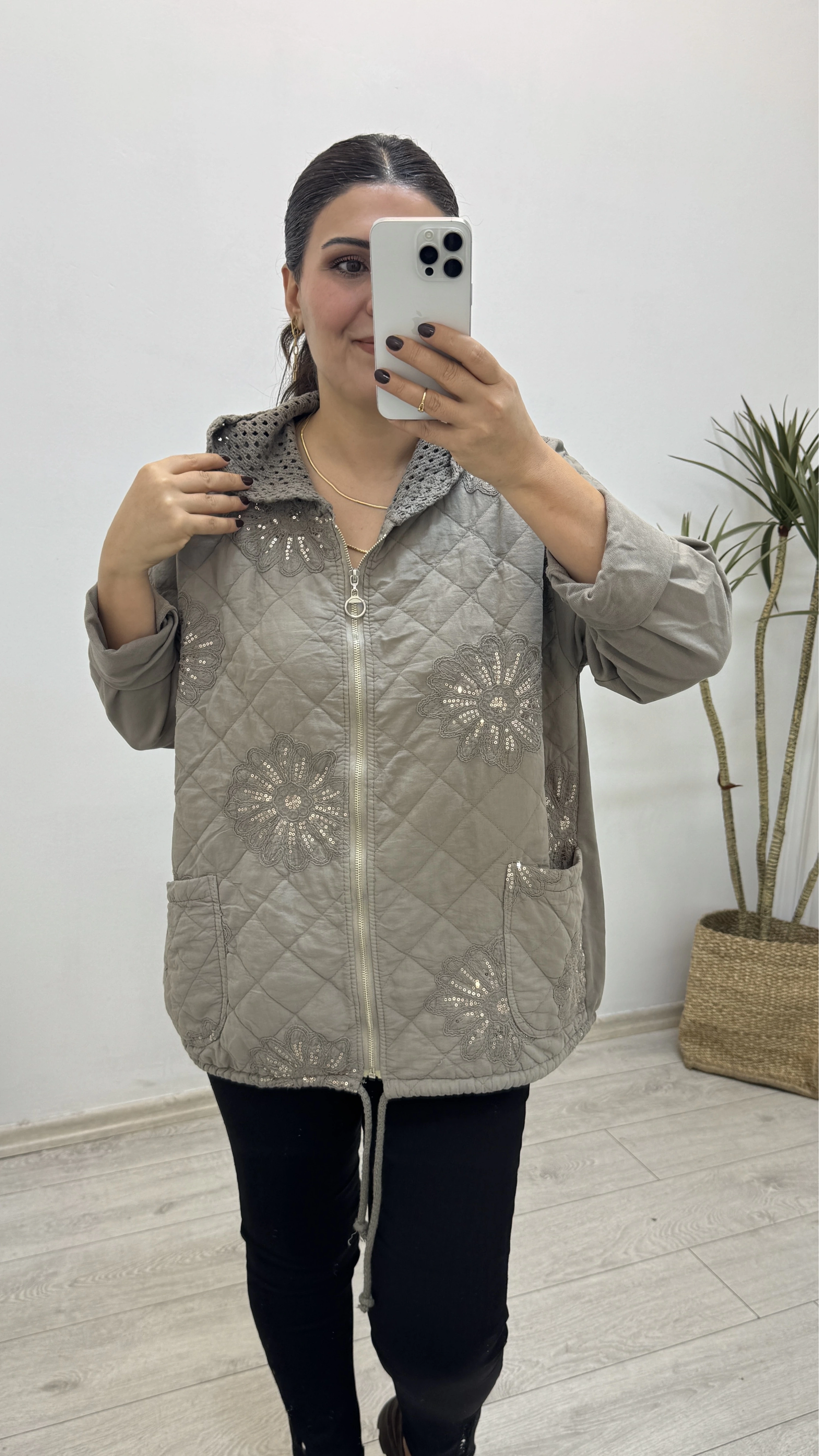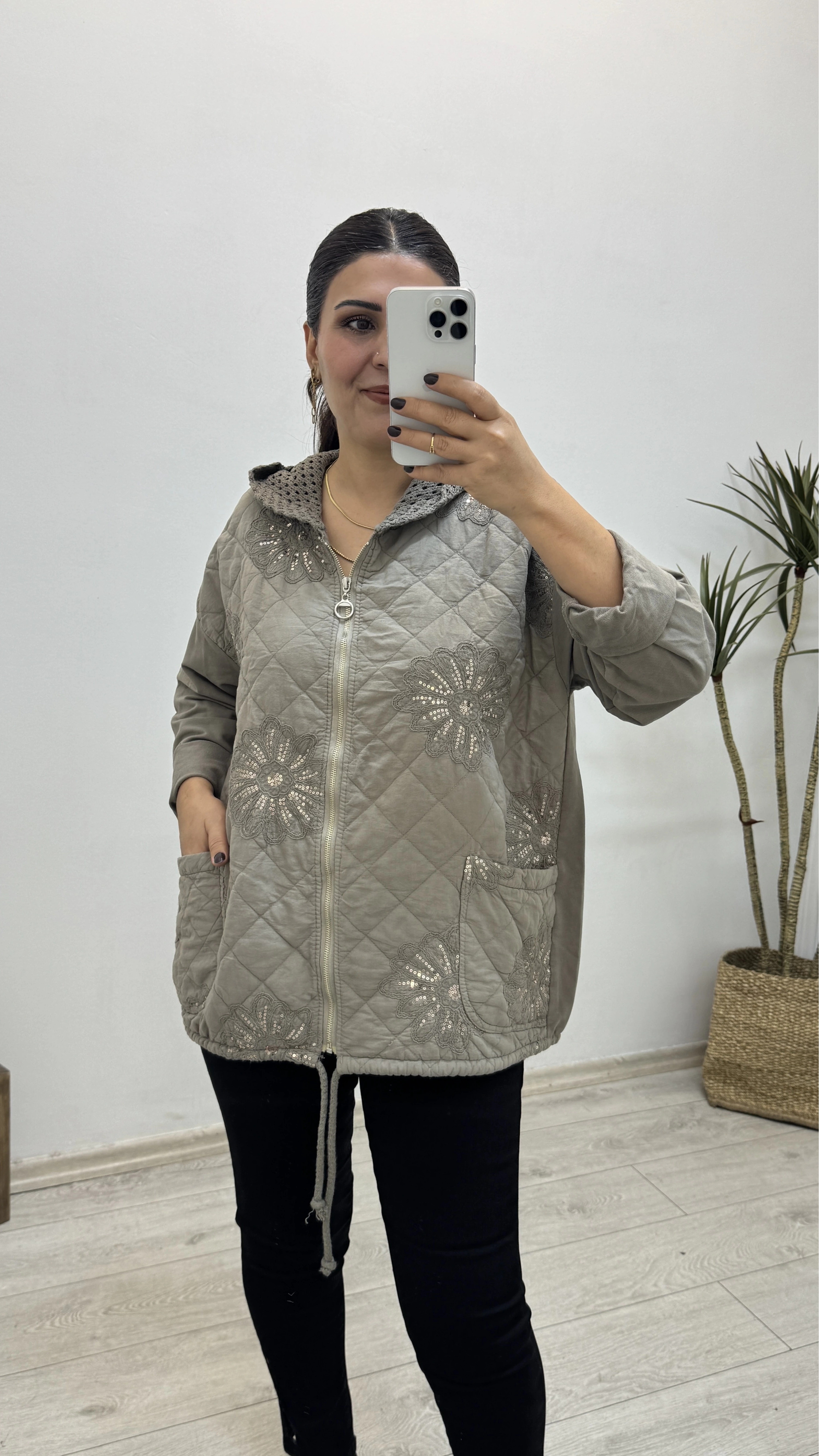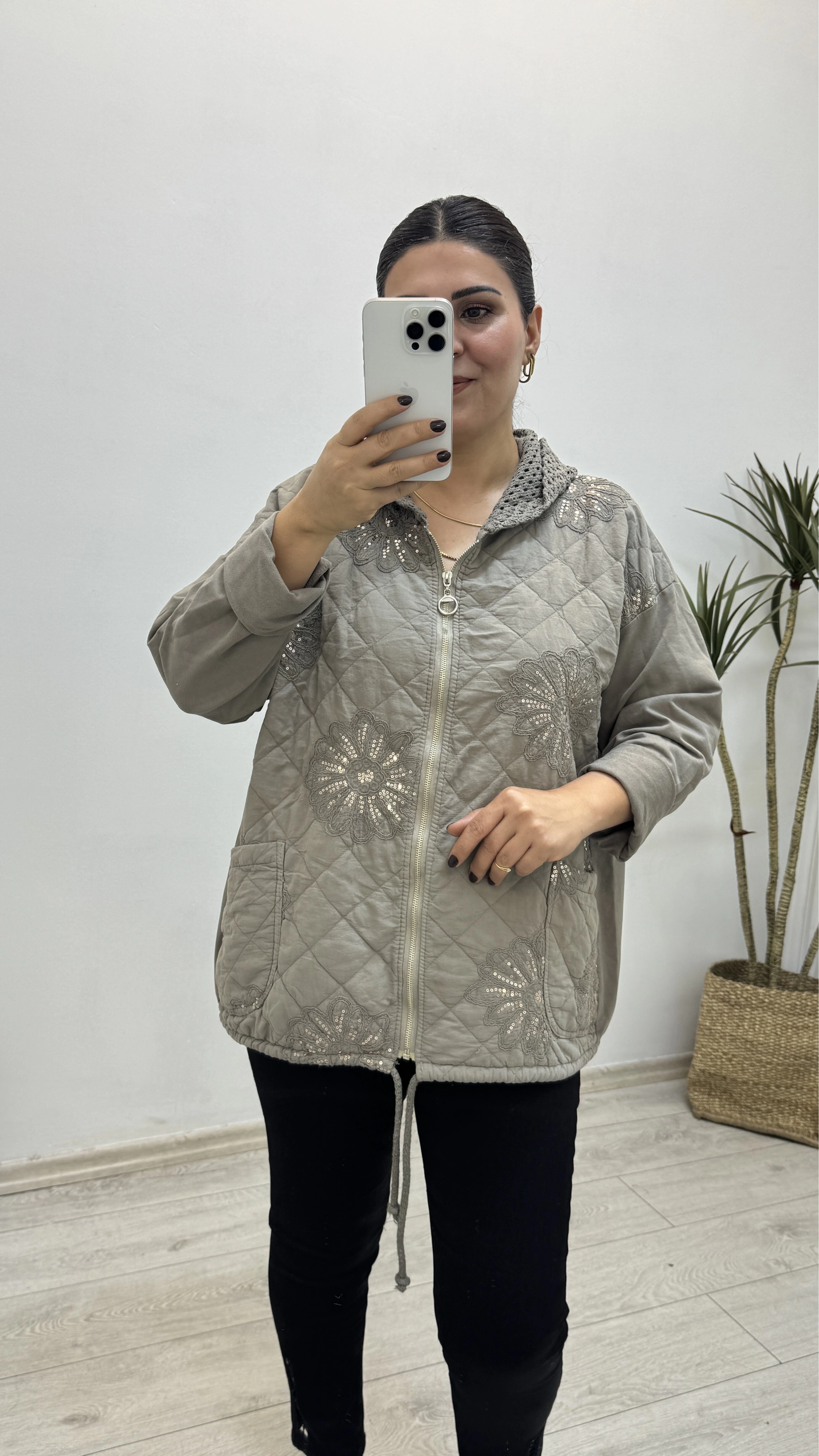 İthal Nakış İşlemeli Kapitone Taş Rengi Ceket