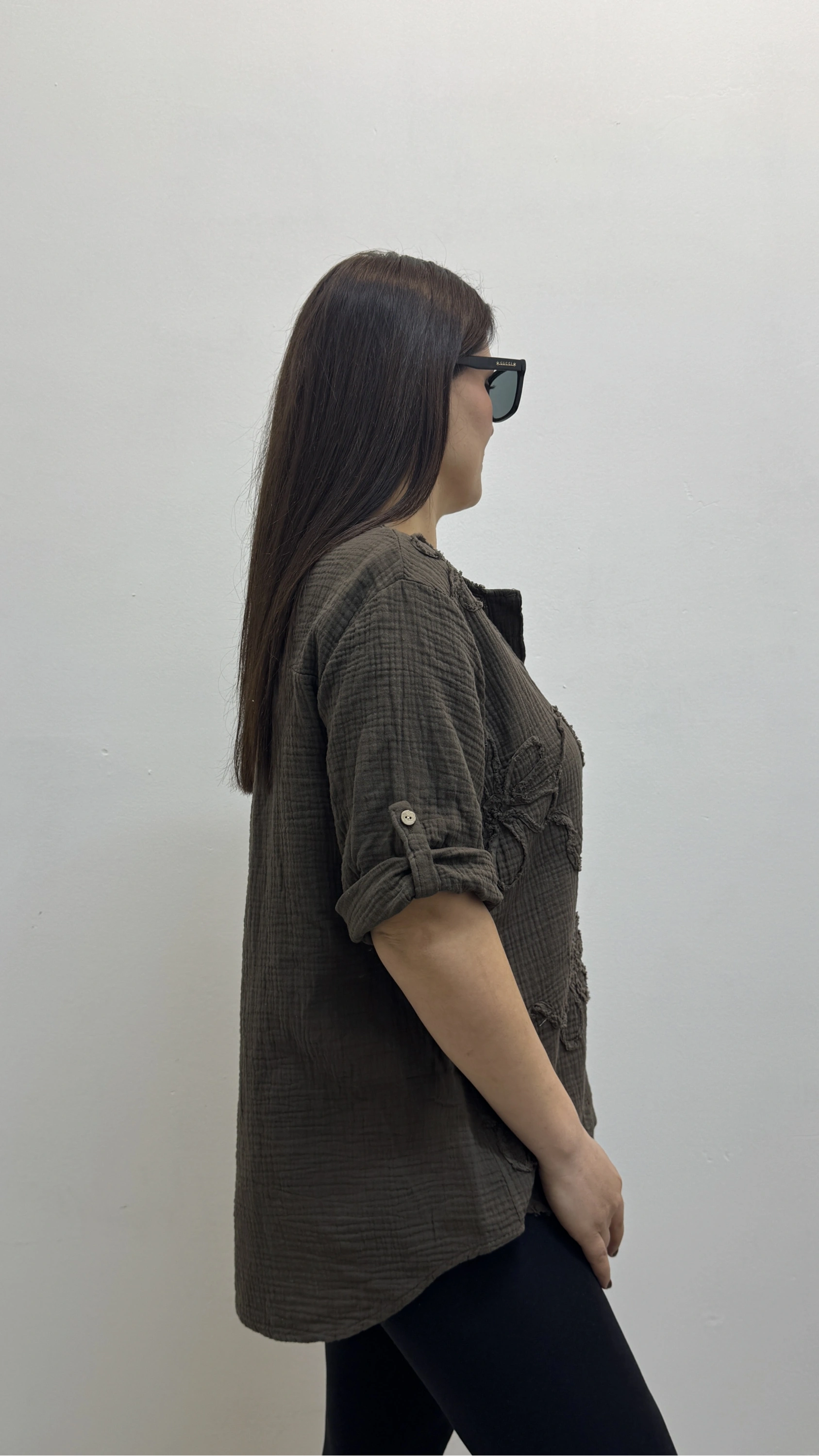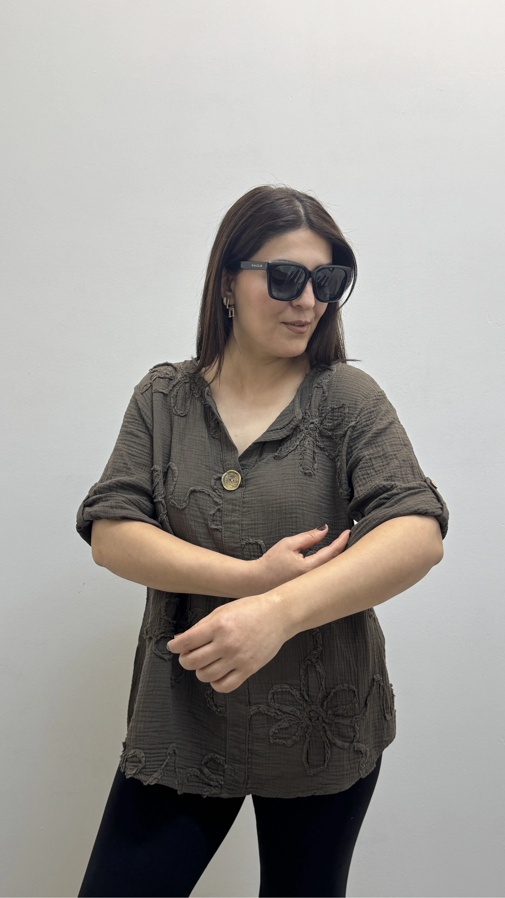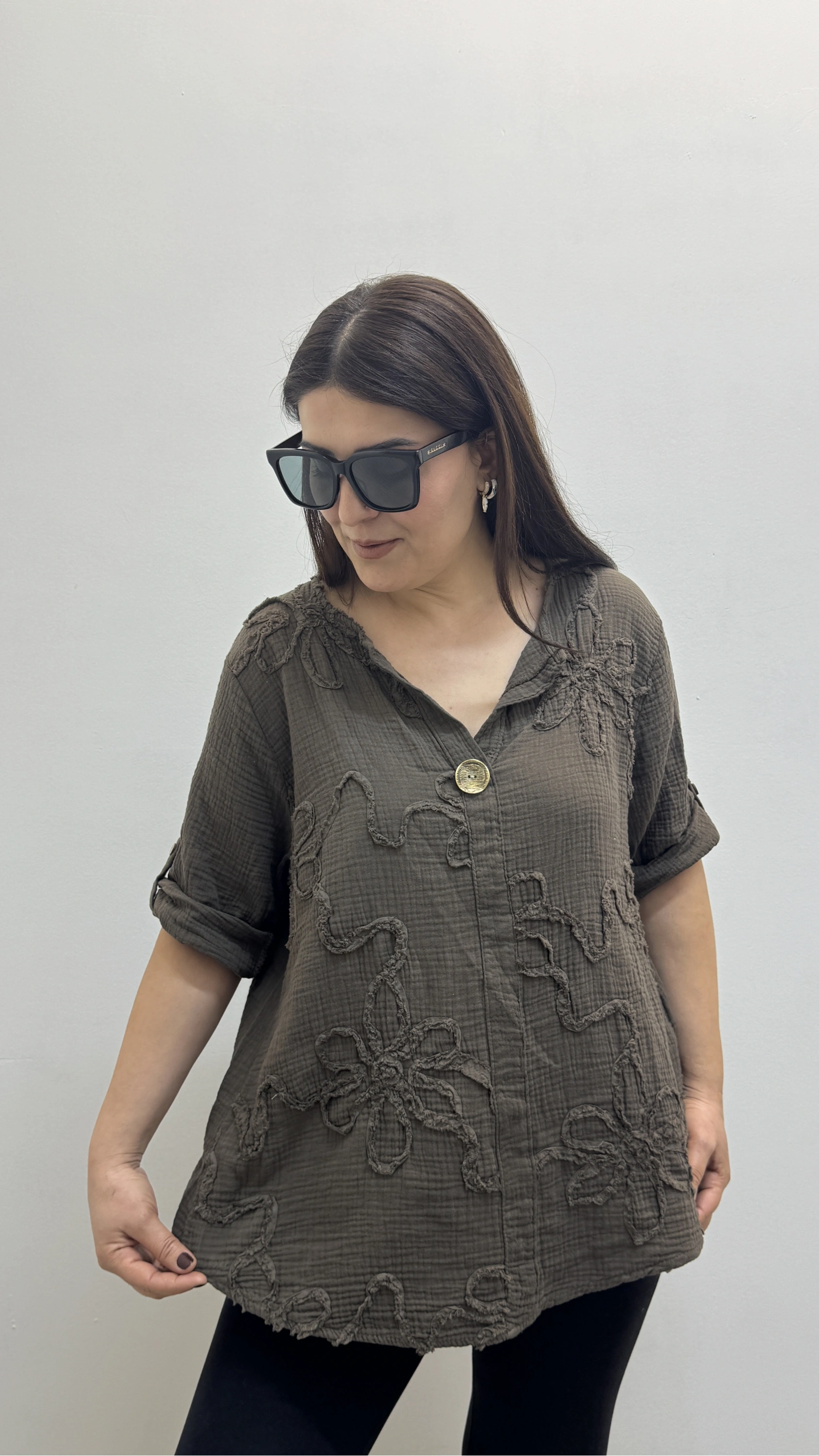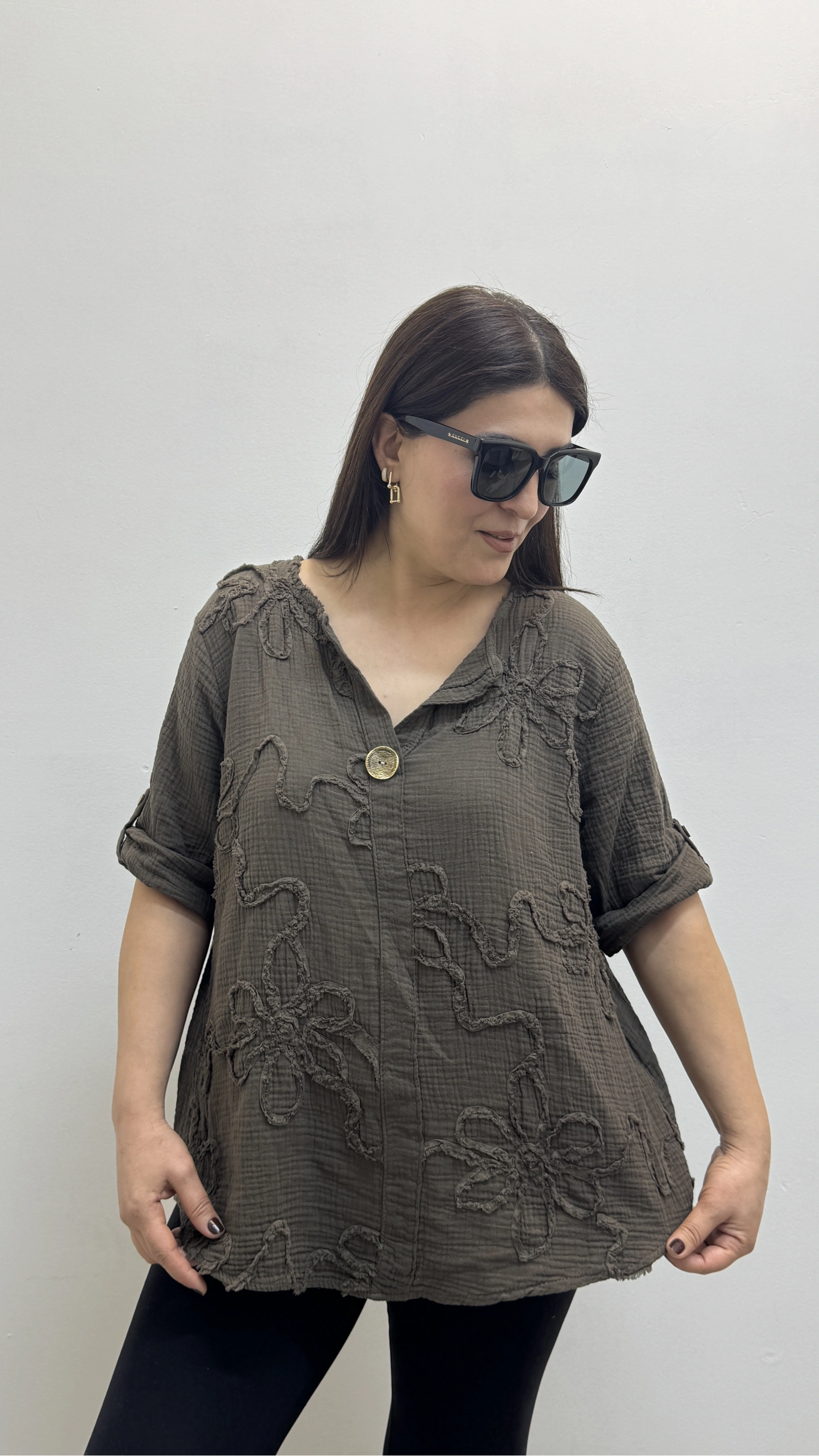 Kabartma Desenli Kahverengi Müslin Bluz Hakkında