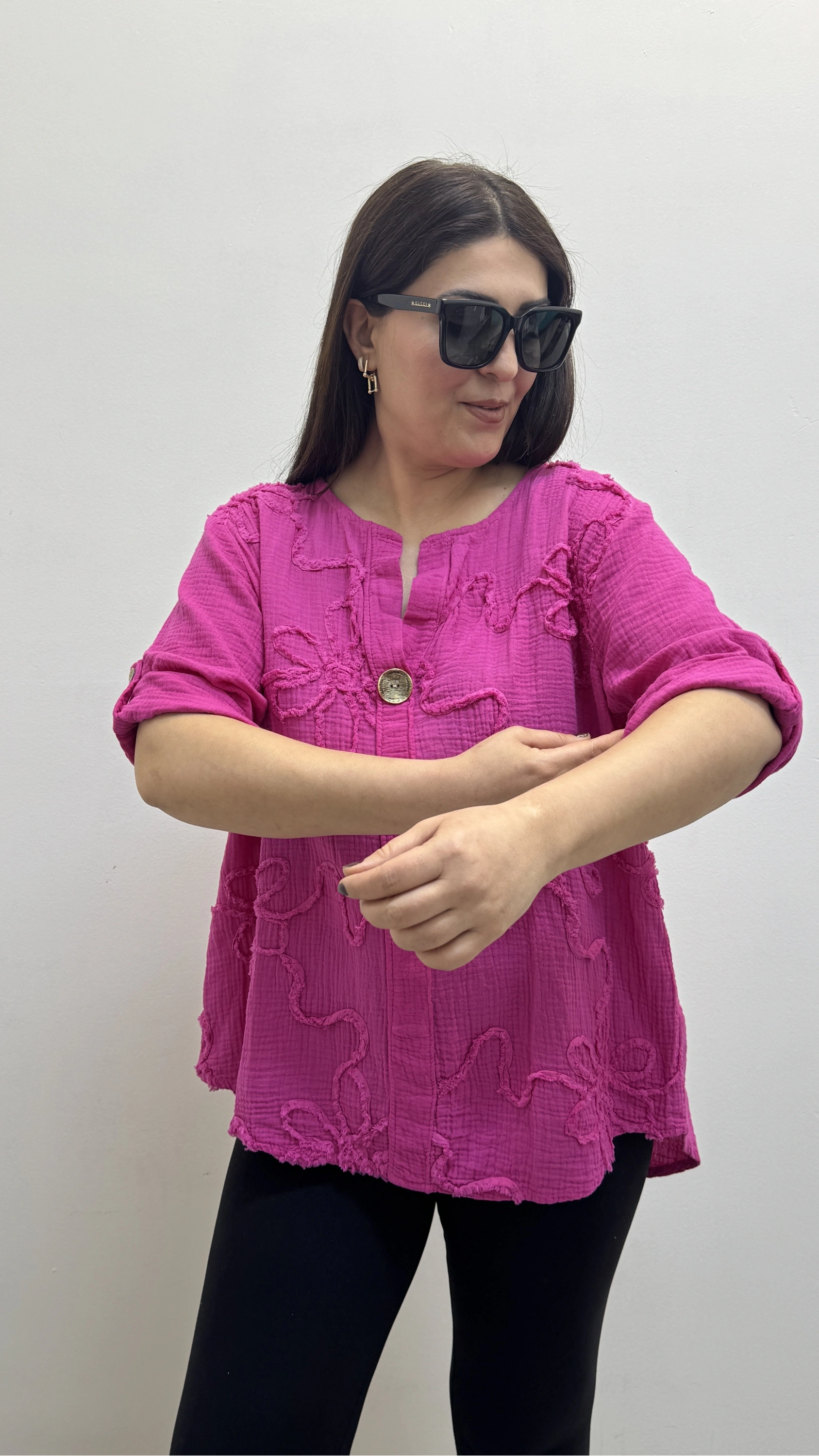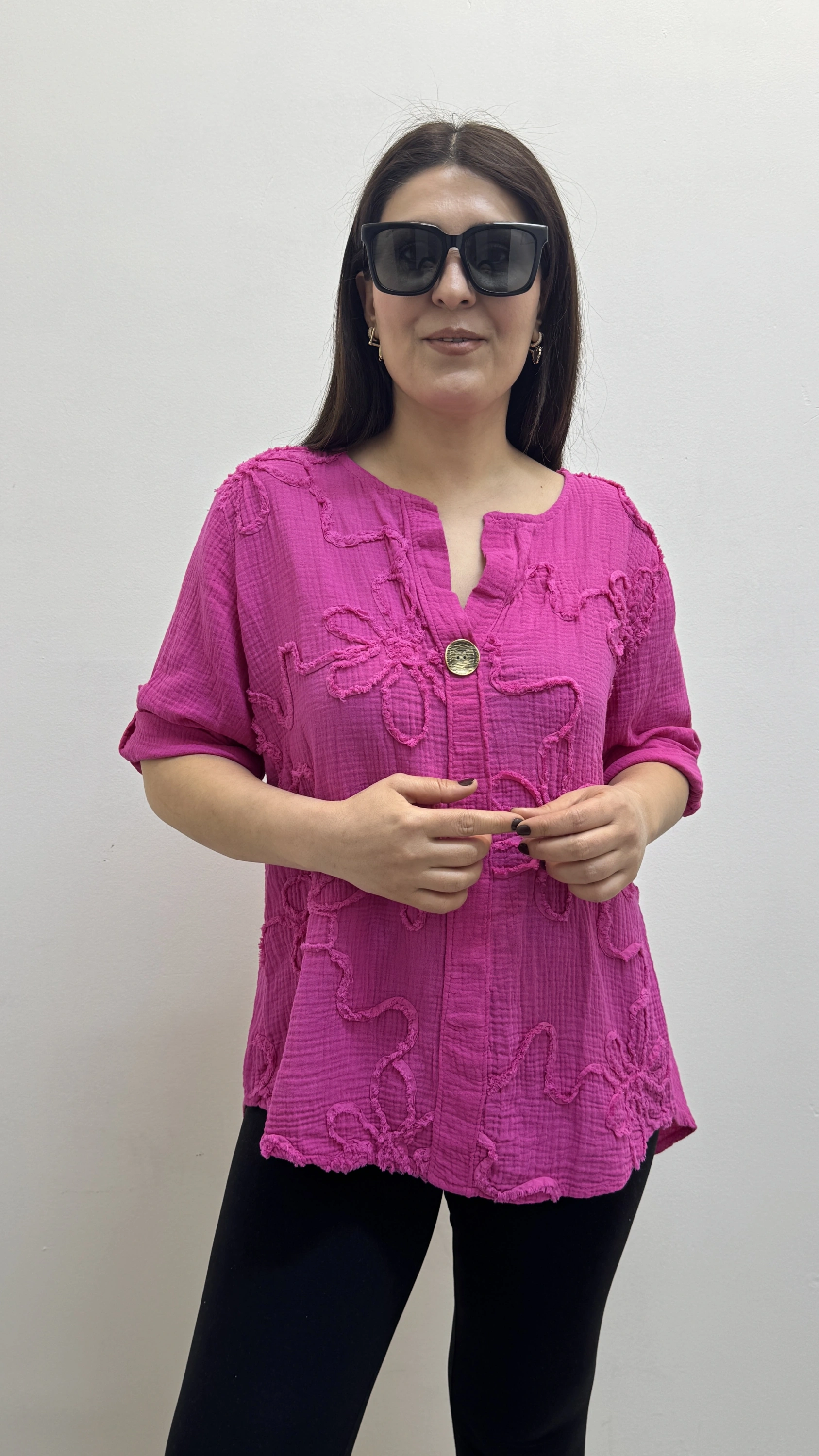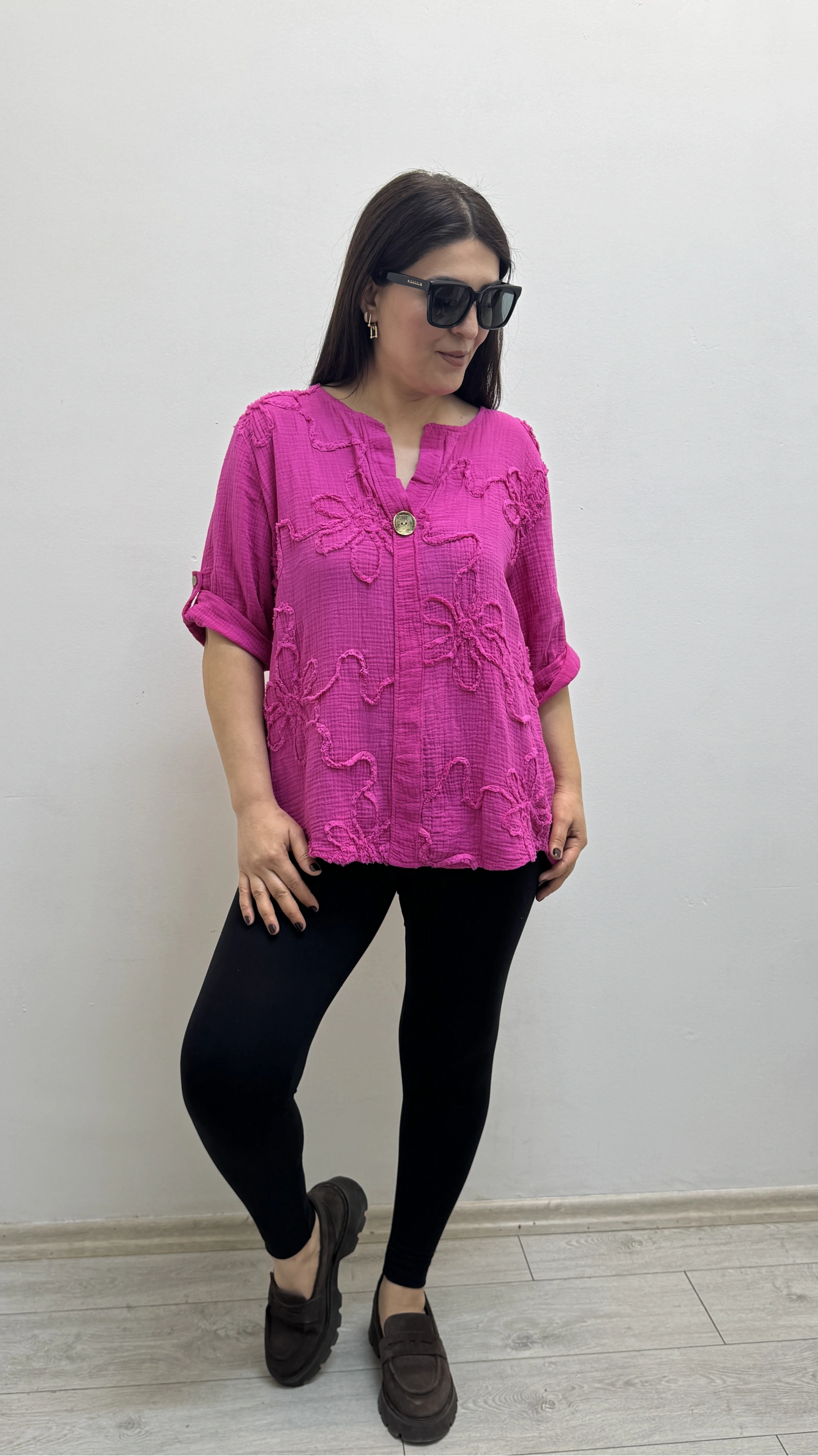 Kabartma Desenli Pembe Renk Müslin Bluz Hakkında