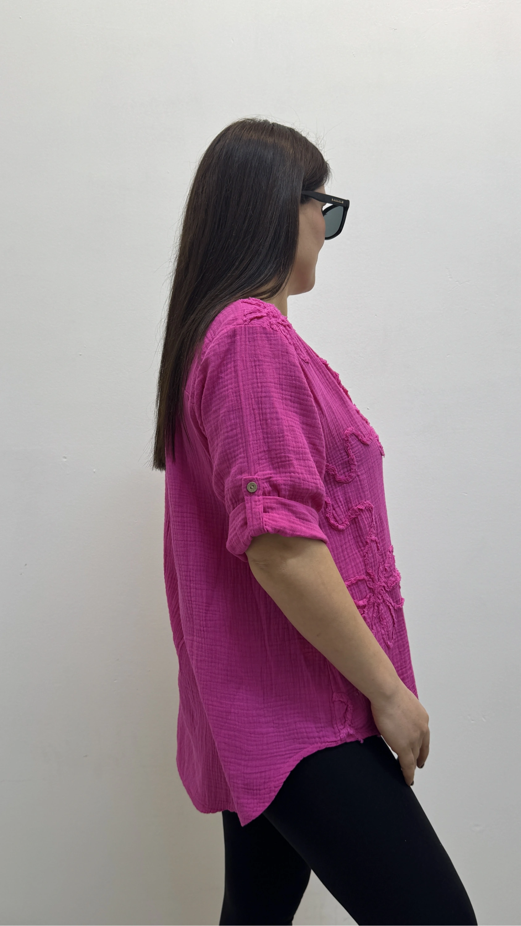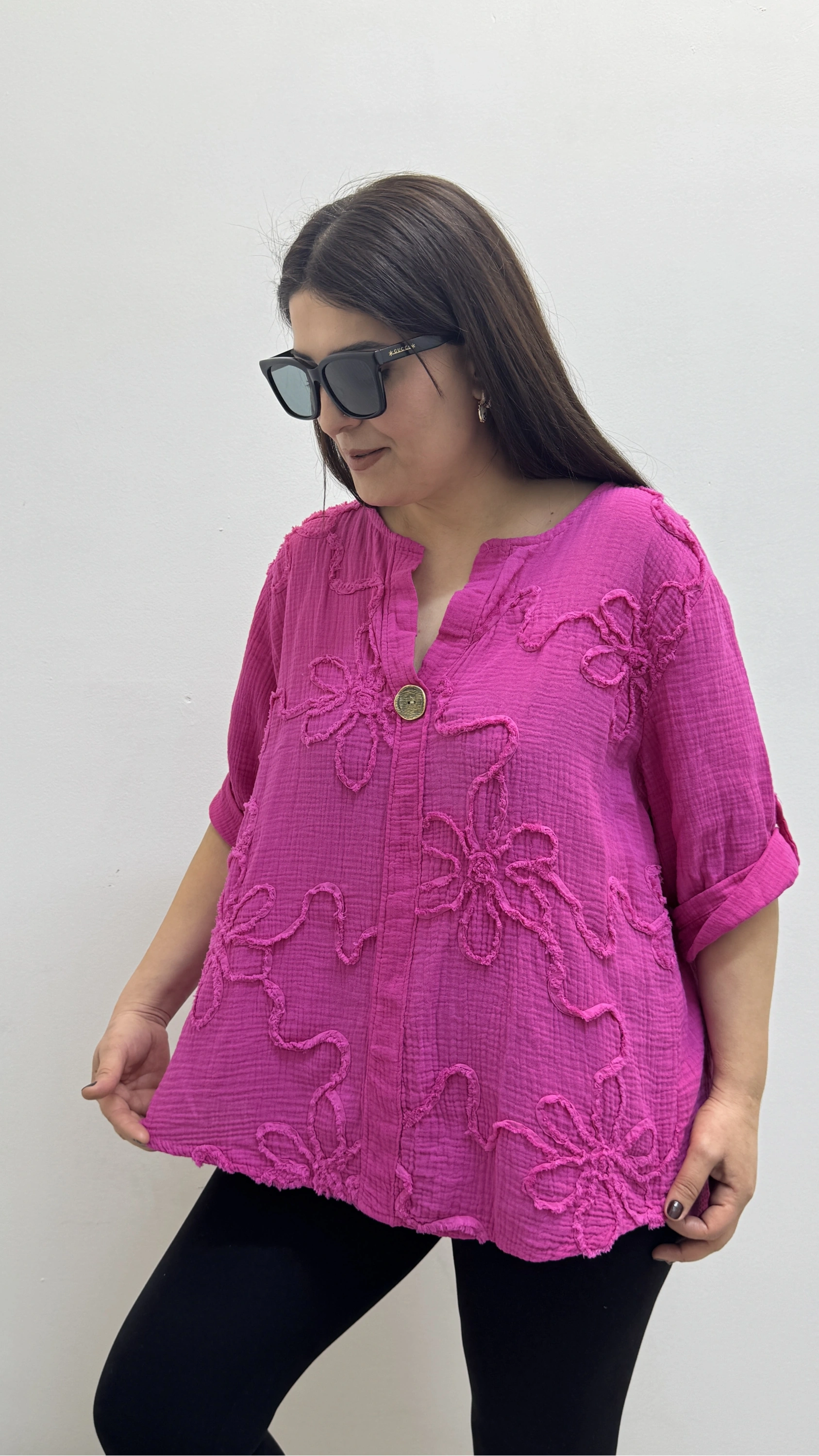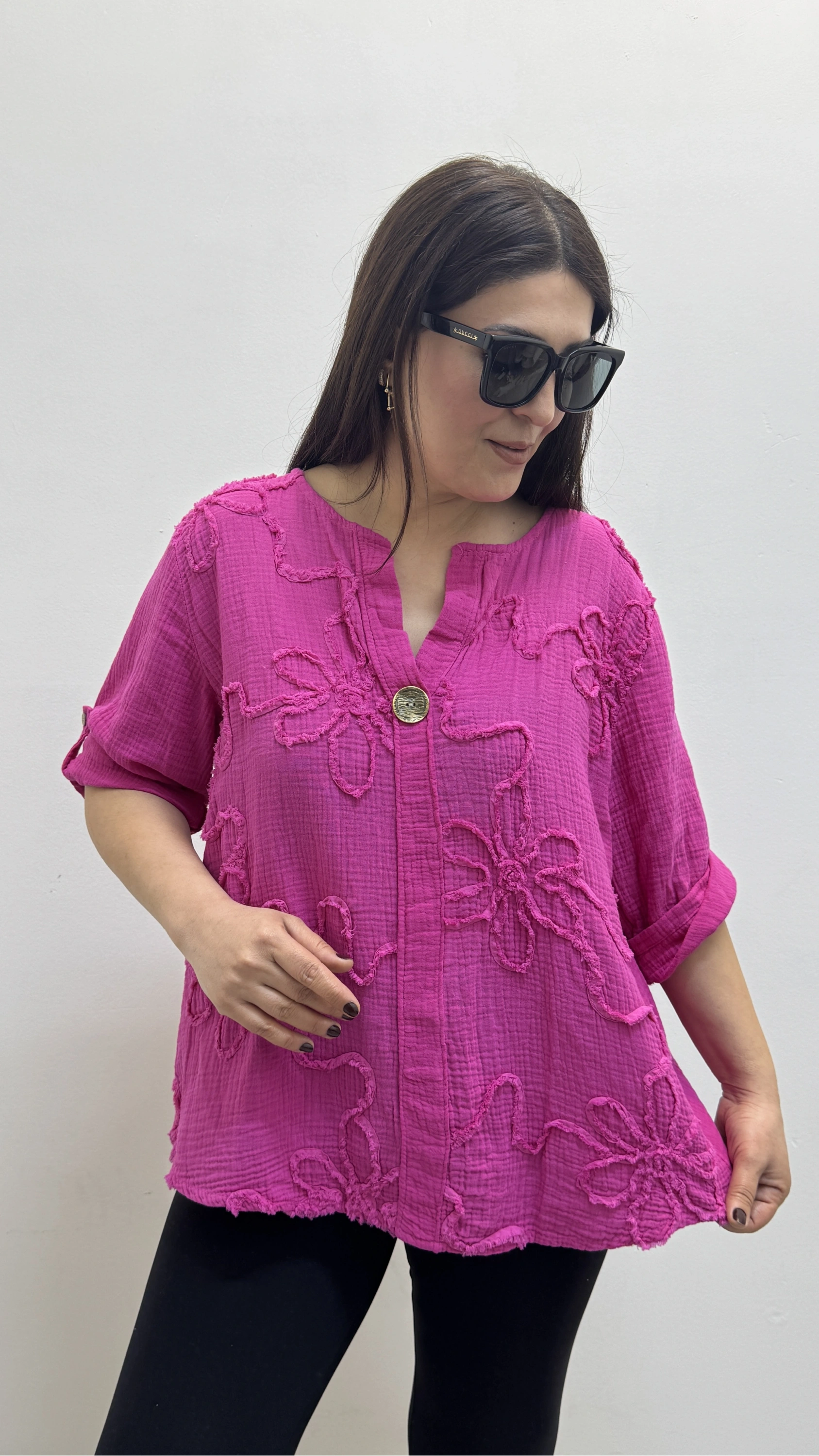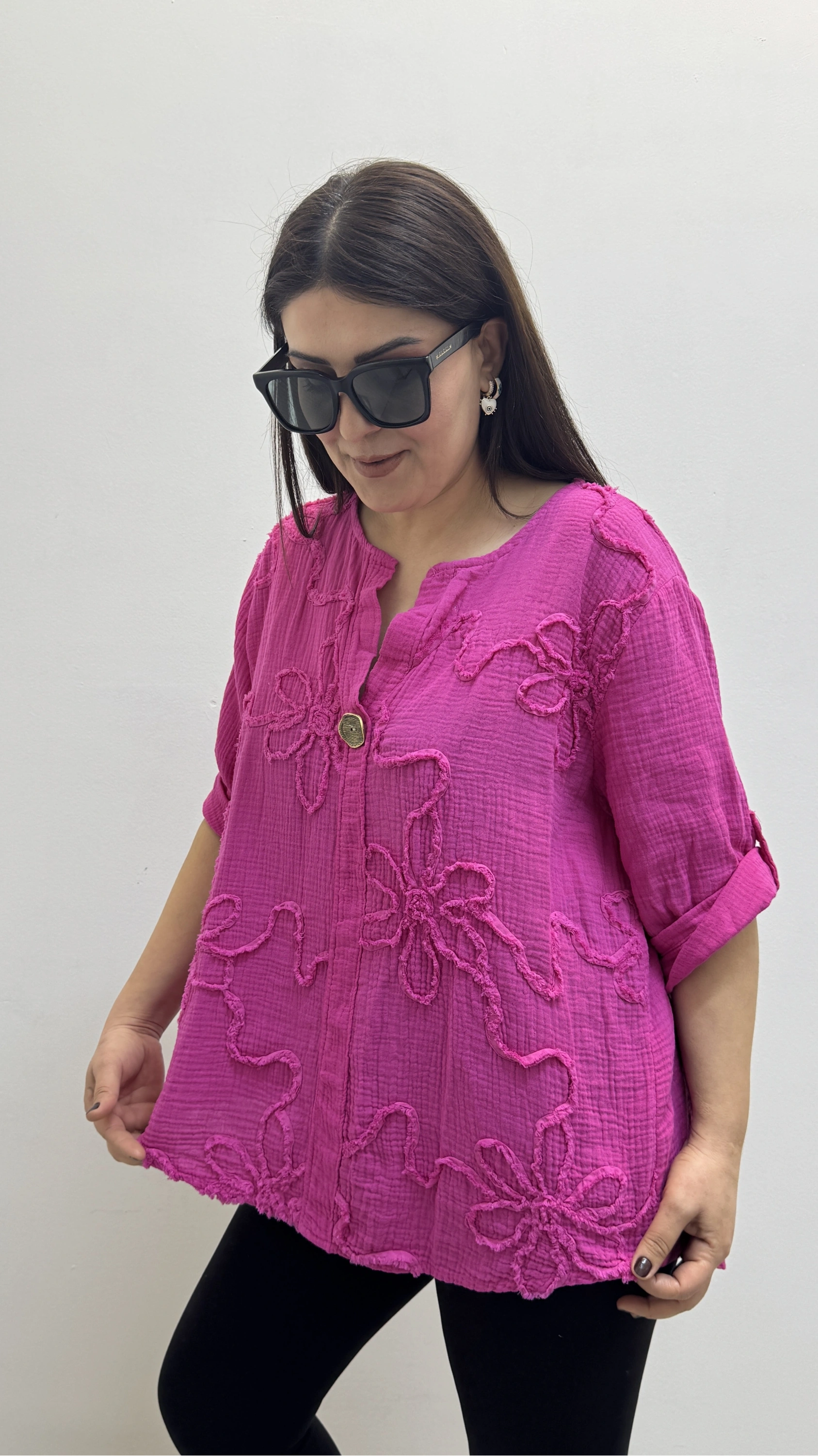 Kabartma Desenli Pembe Renk Müslin Bluz Hakkında