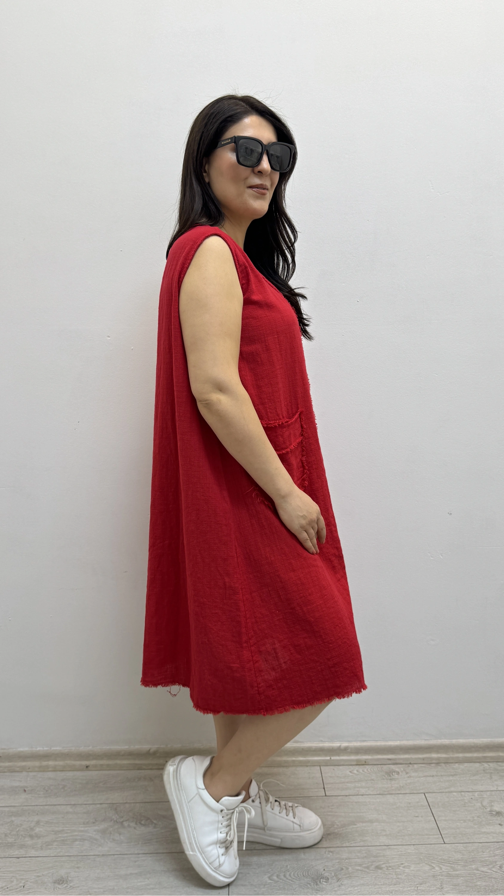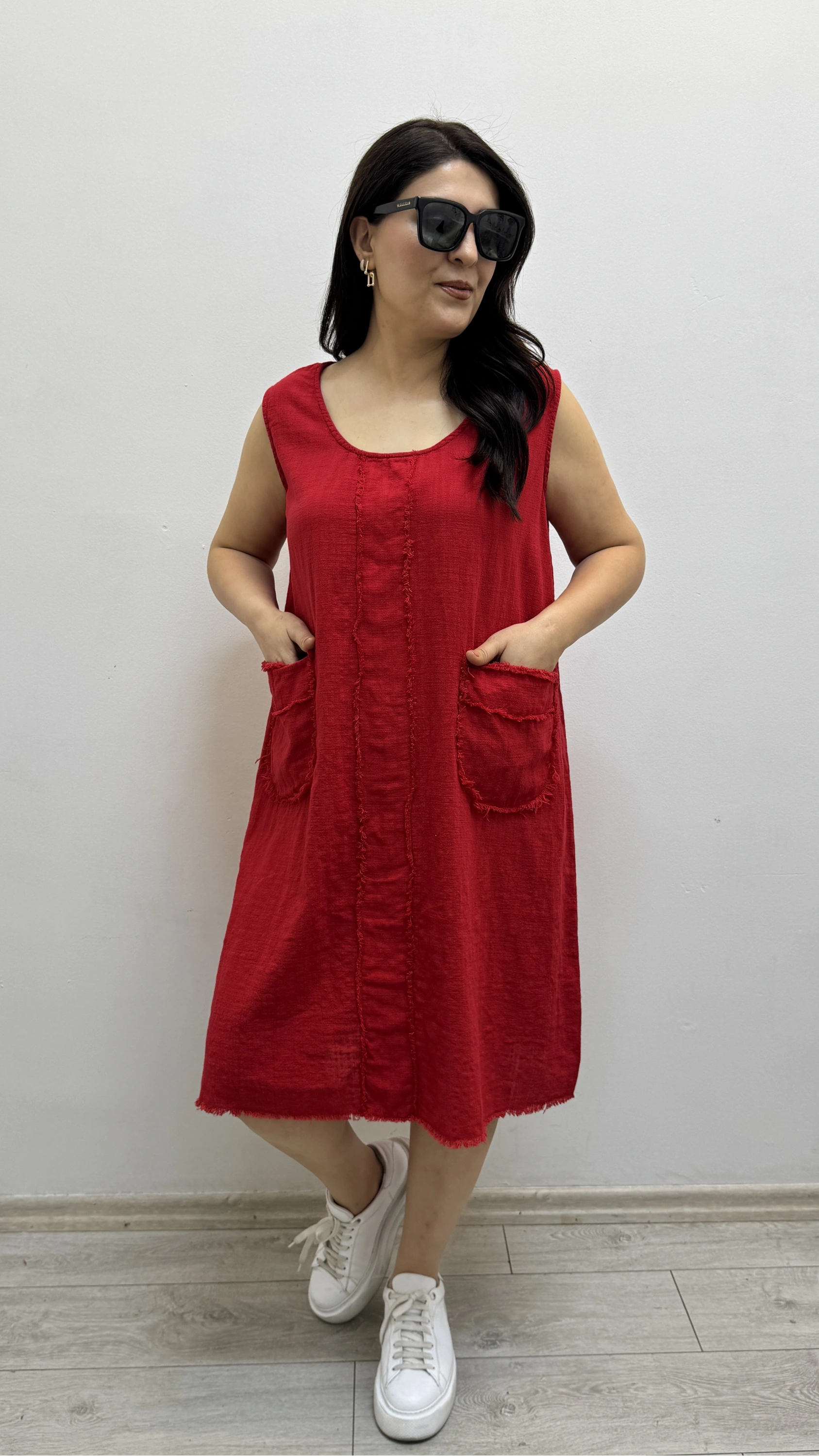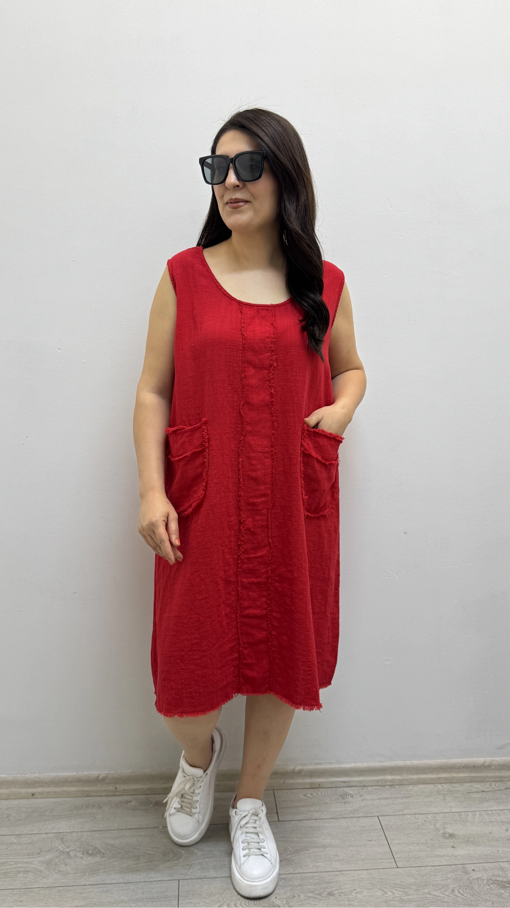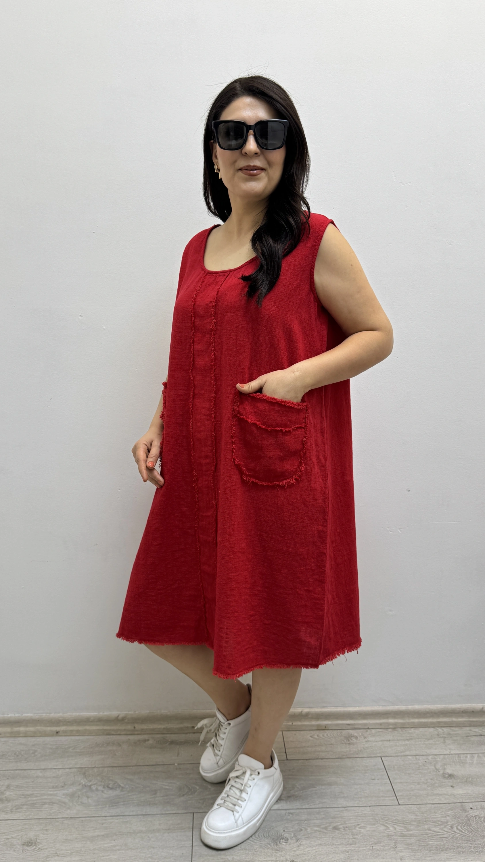 Kalın Askılı Püskül Dikişli Cepli Pamuklu Kırmızı Elbise Hakkında