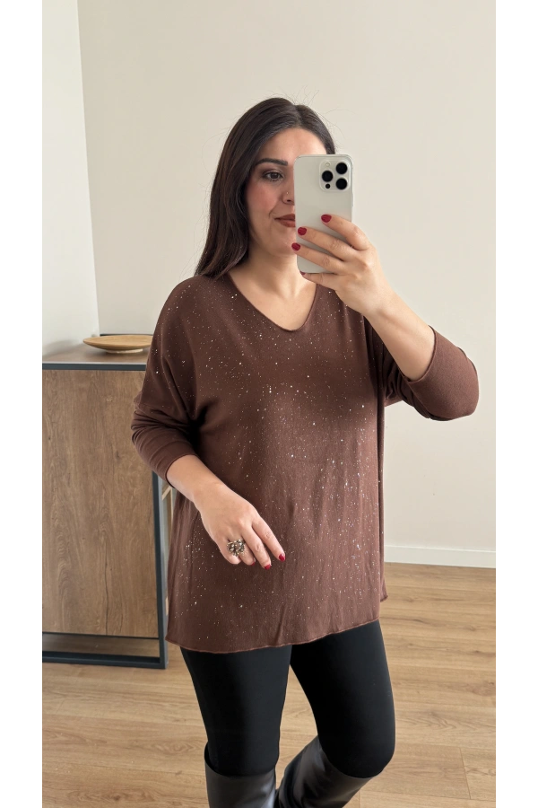 Kırık Taş Baskılı Kahverengi İthal Bluz