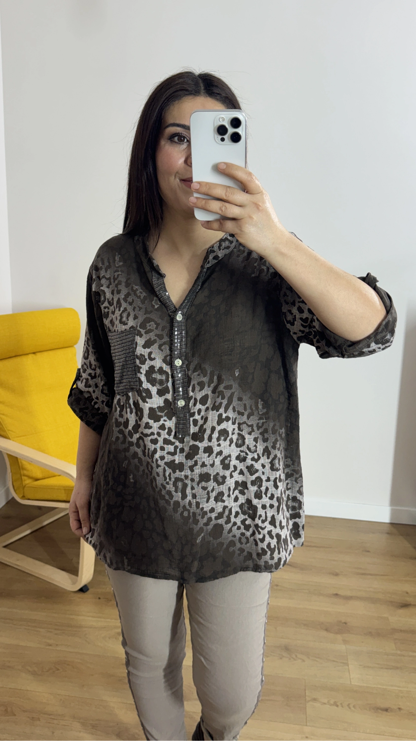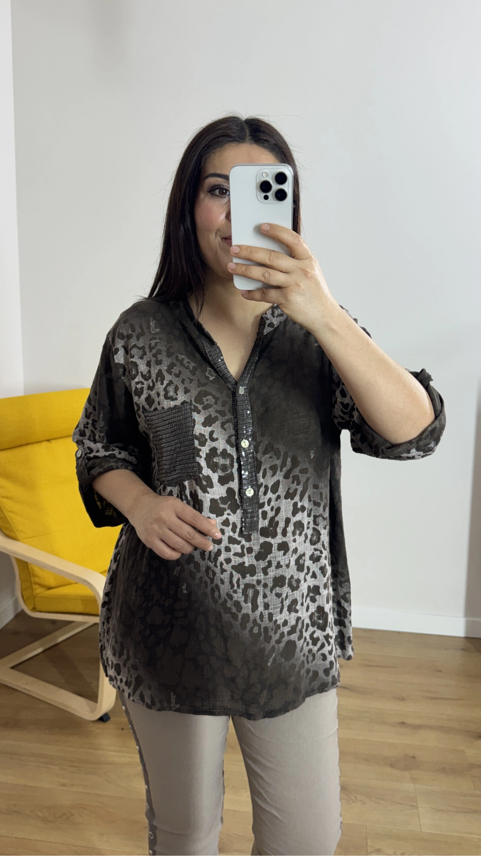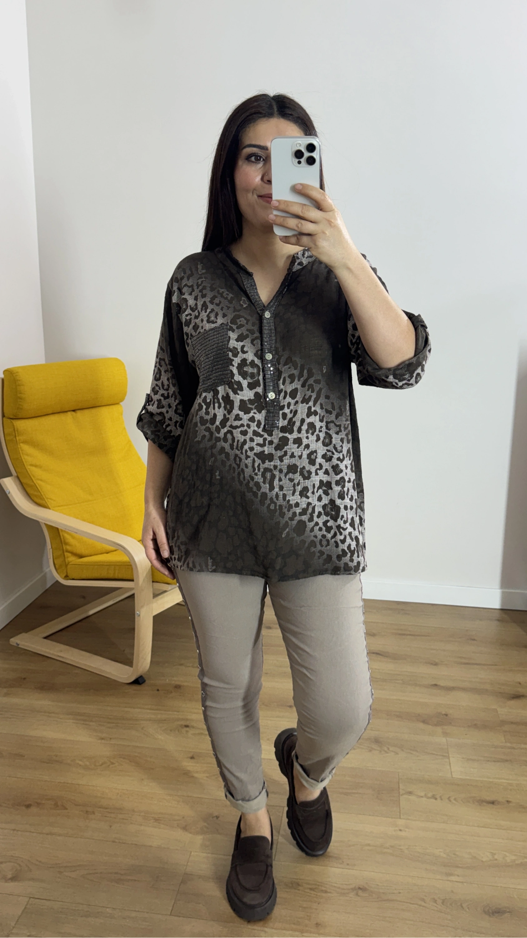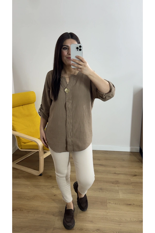 Leopar Desenli Haki Yaka Kahverengi İthal Bluz Hakkında