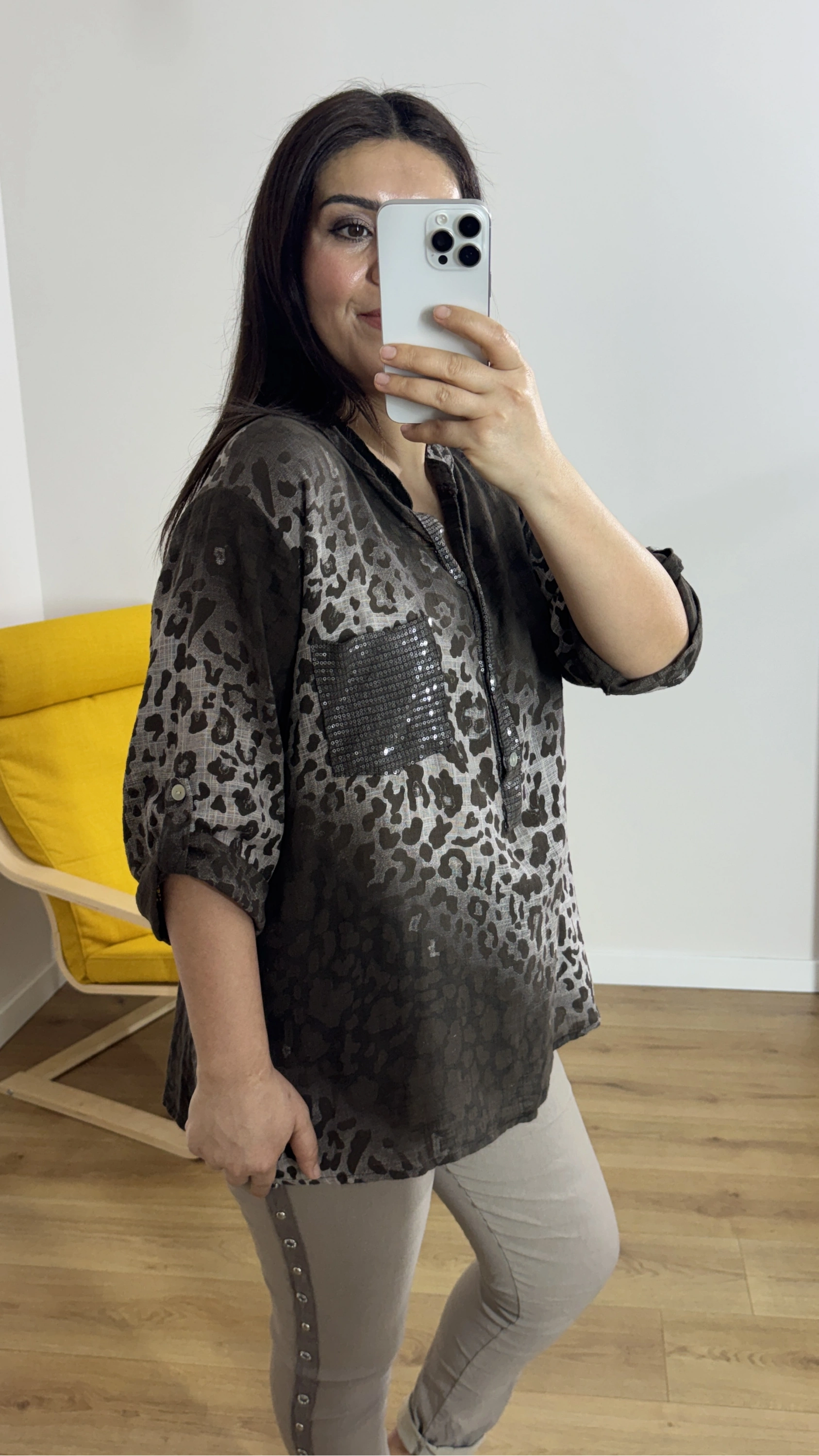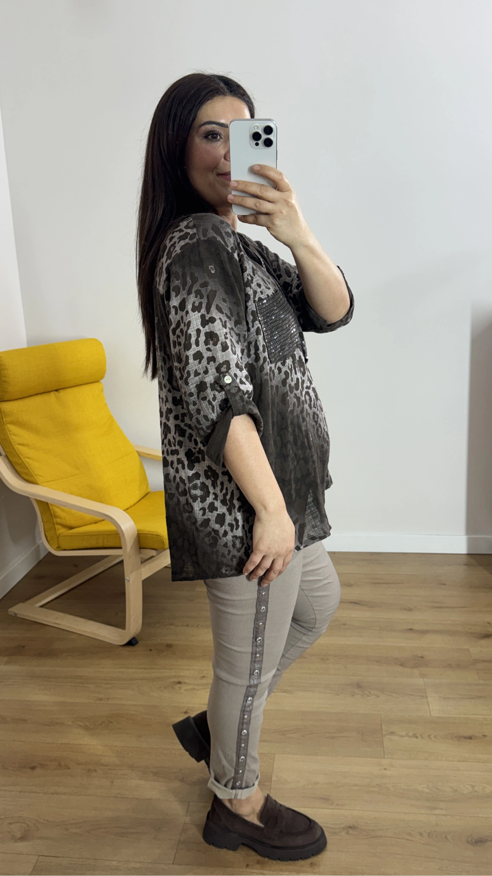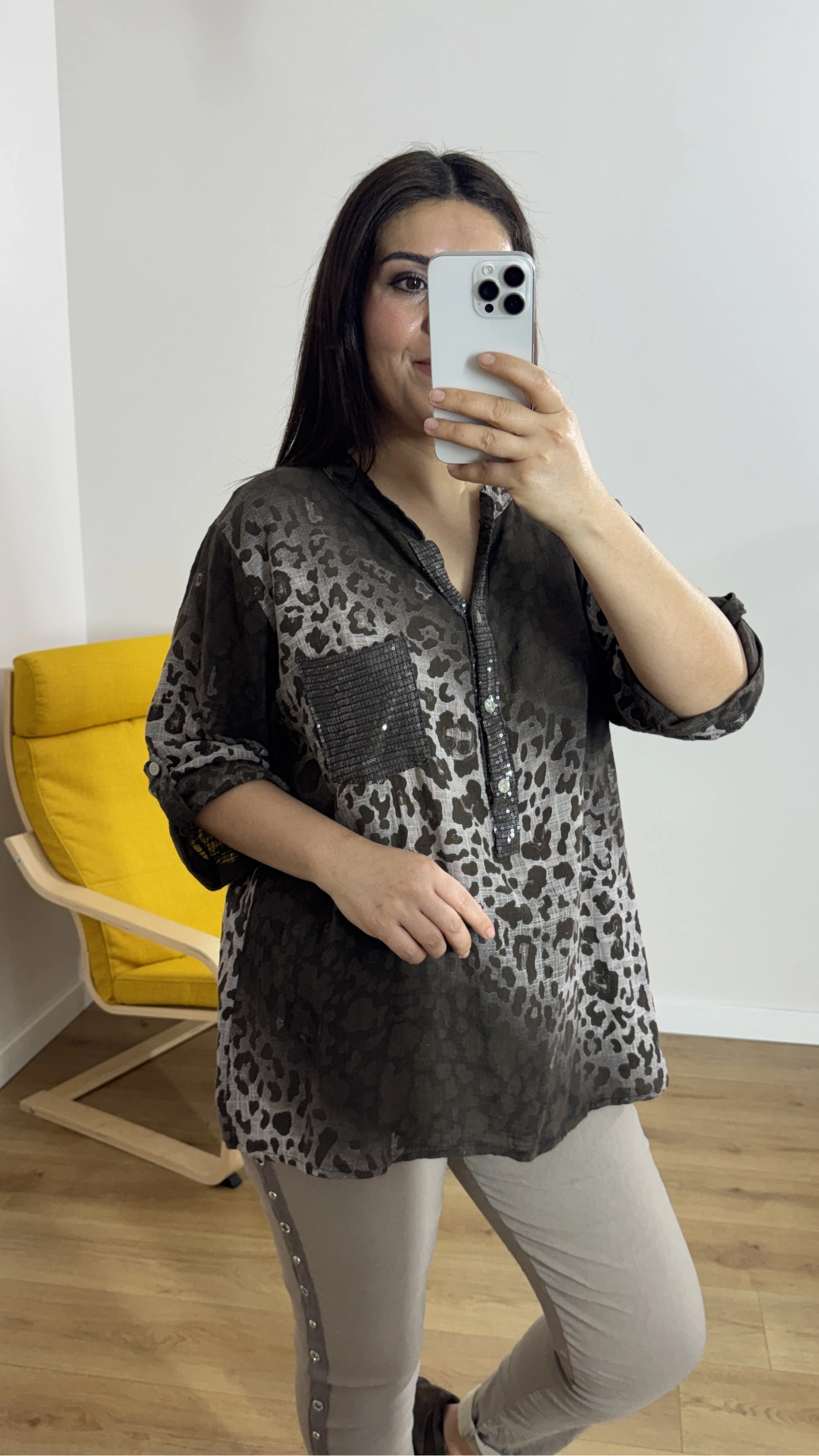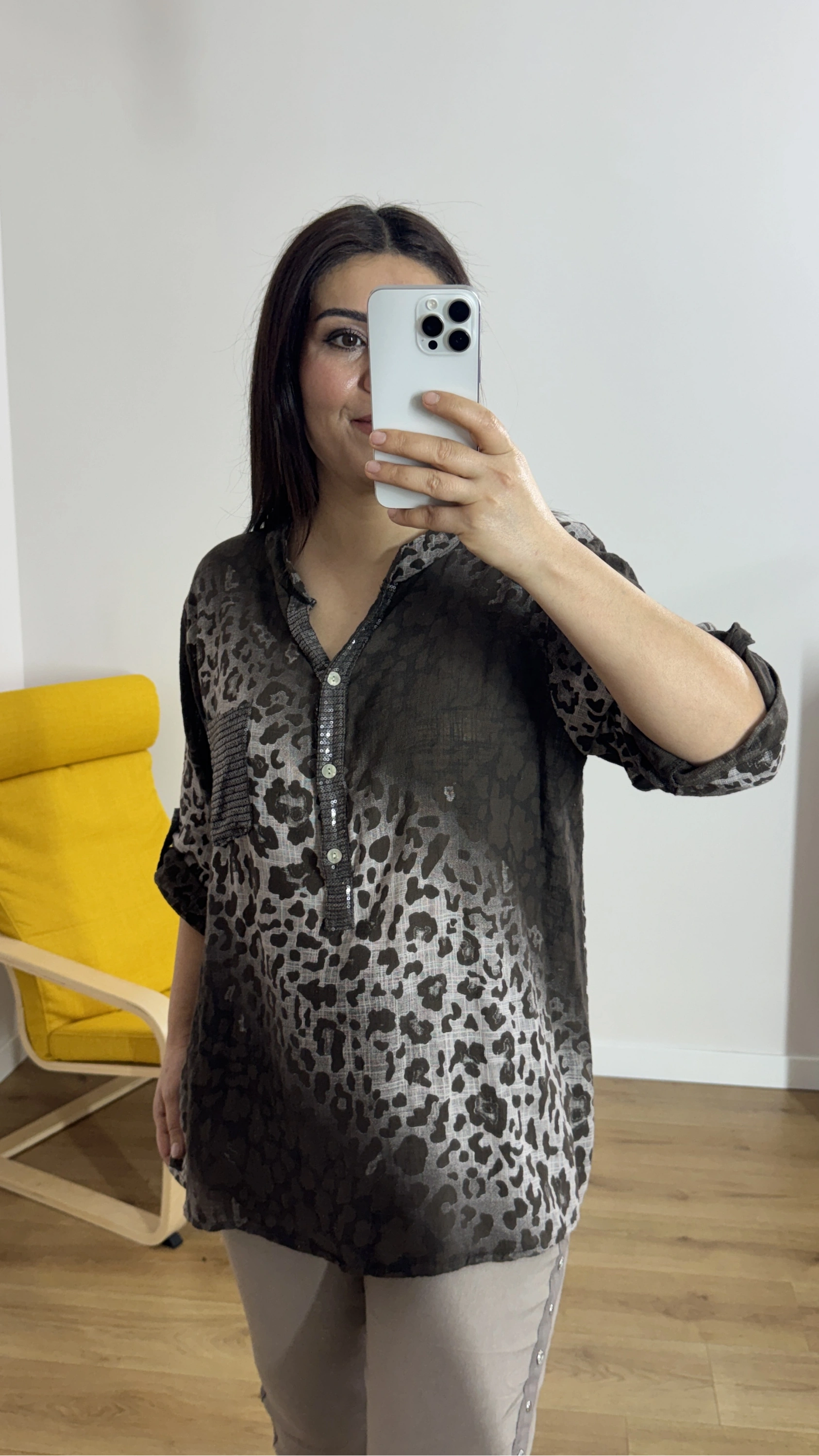 Leopar Desenli Haki Yaka Kahverengi İthal Bluz Hakkında