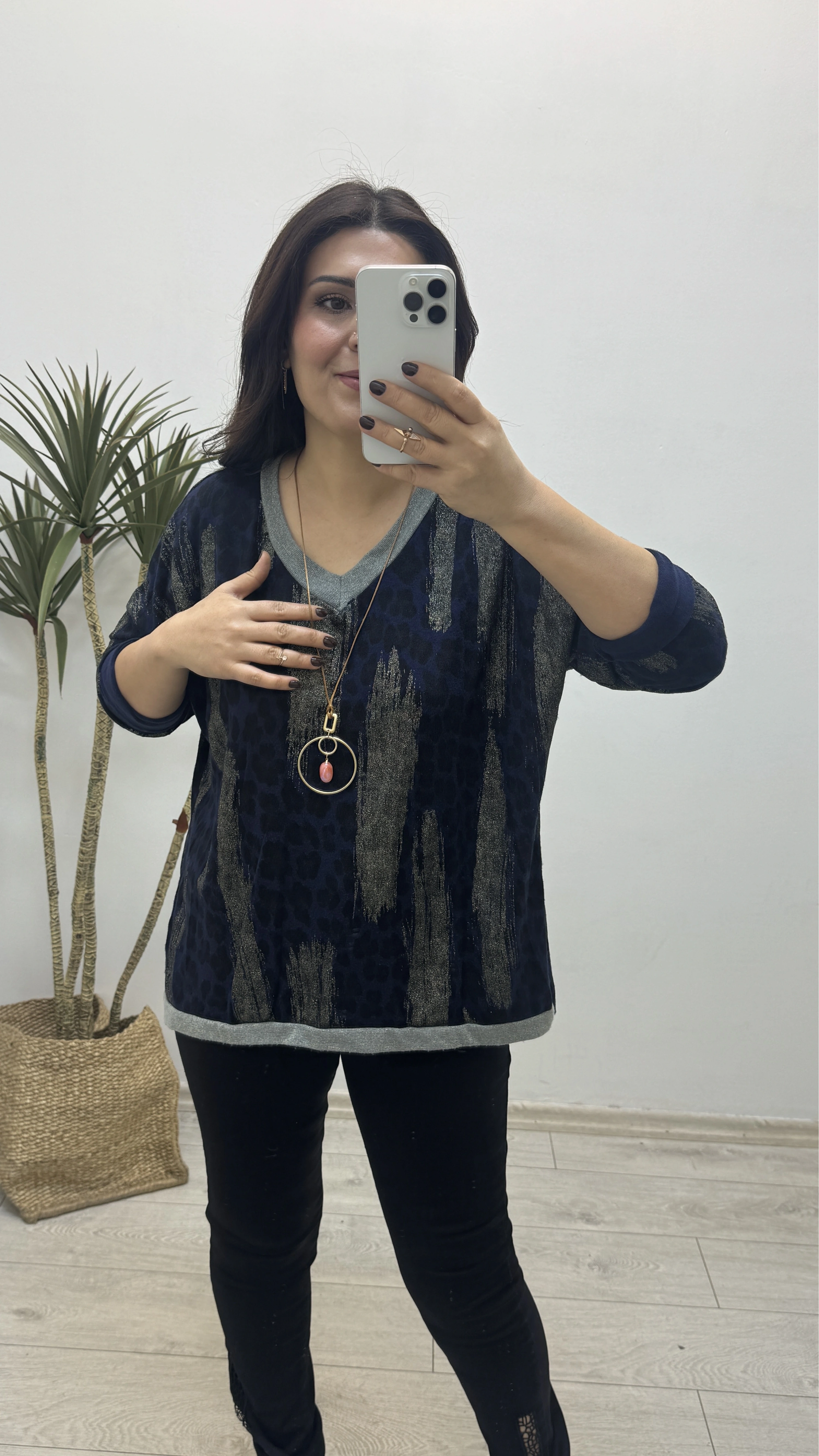 Leopar Sim Baskılı Lacivert Bluz Hakkında