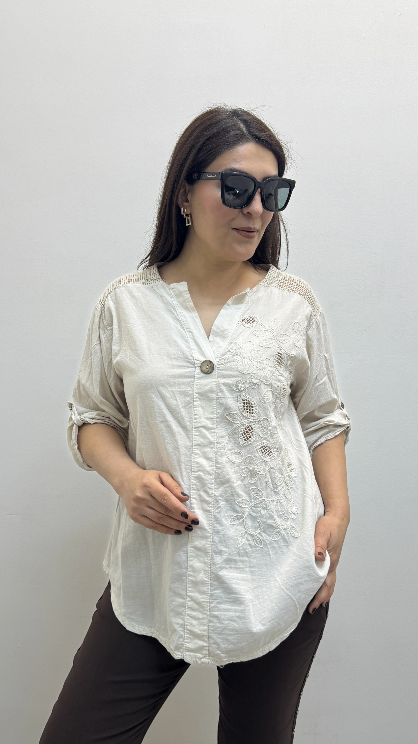 Nakış İşlemeli Hakim Yaka Bej Rengi İthal Gömlek Hakkında