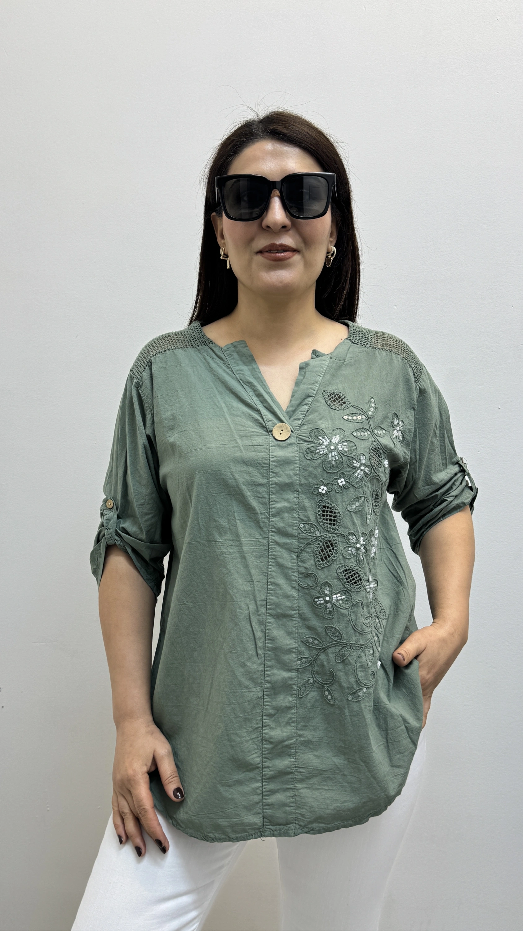 Nakış İşlemeli Hakim Yaka Haki Yeşil İthal Gömlek Hakkında