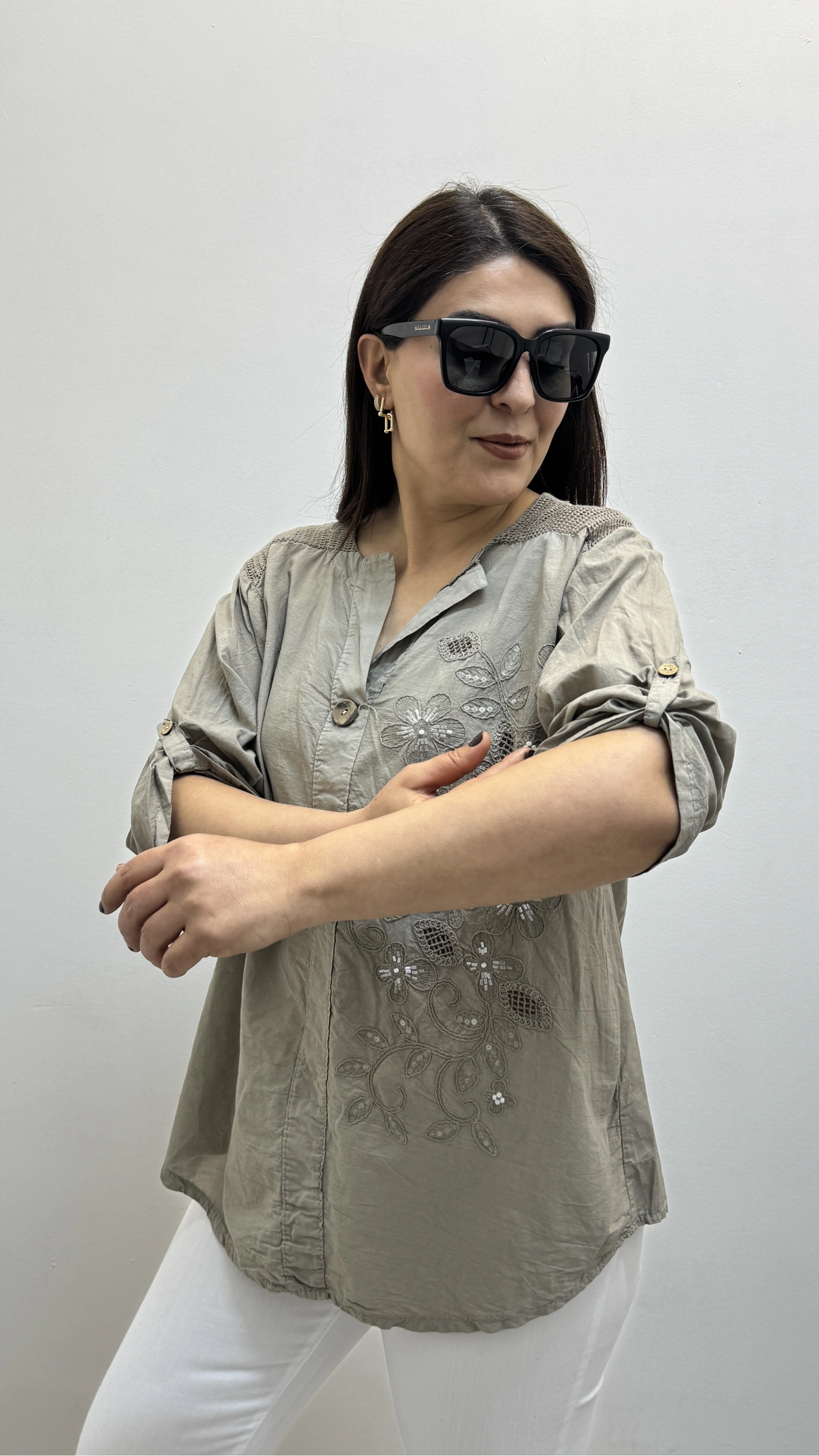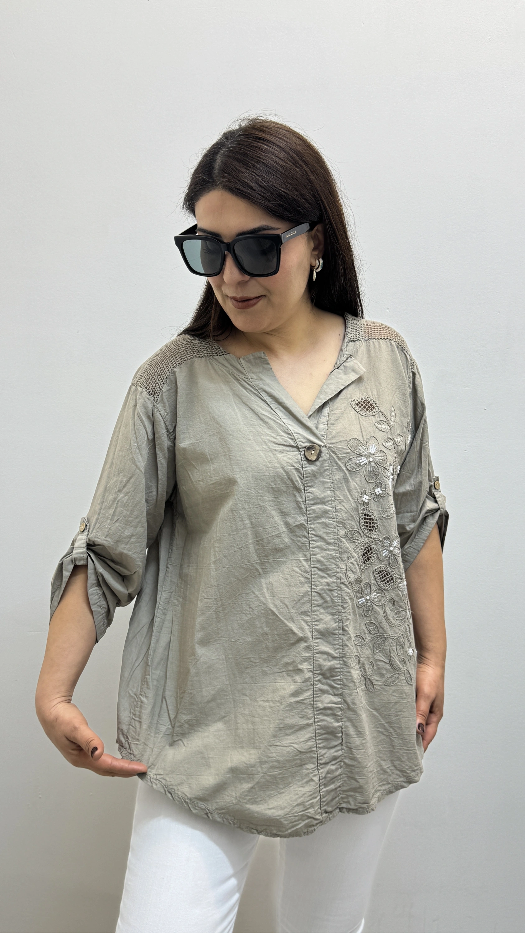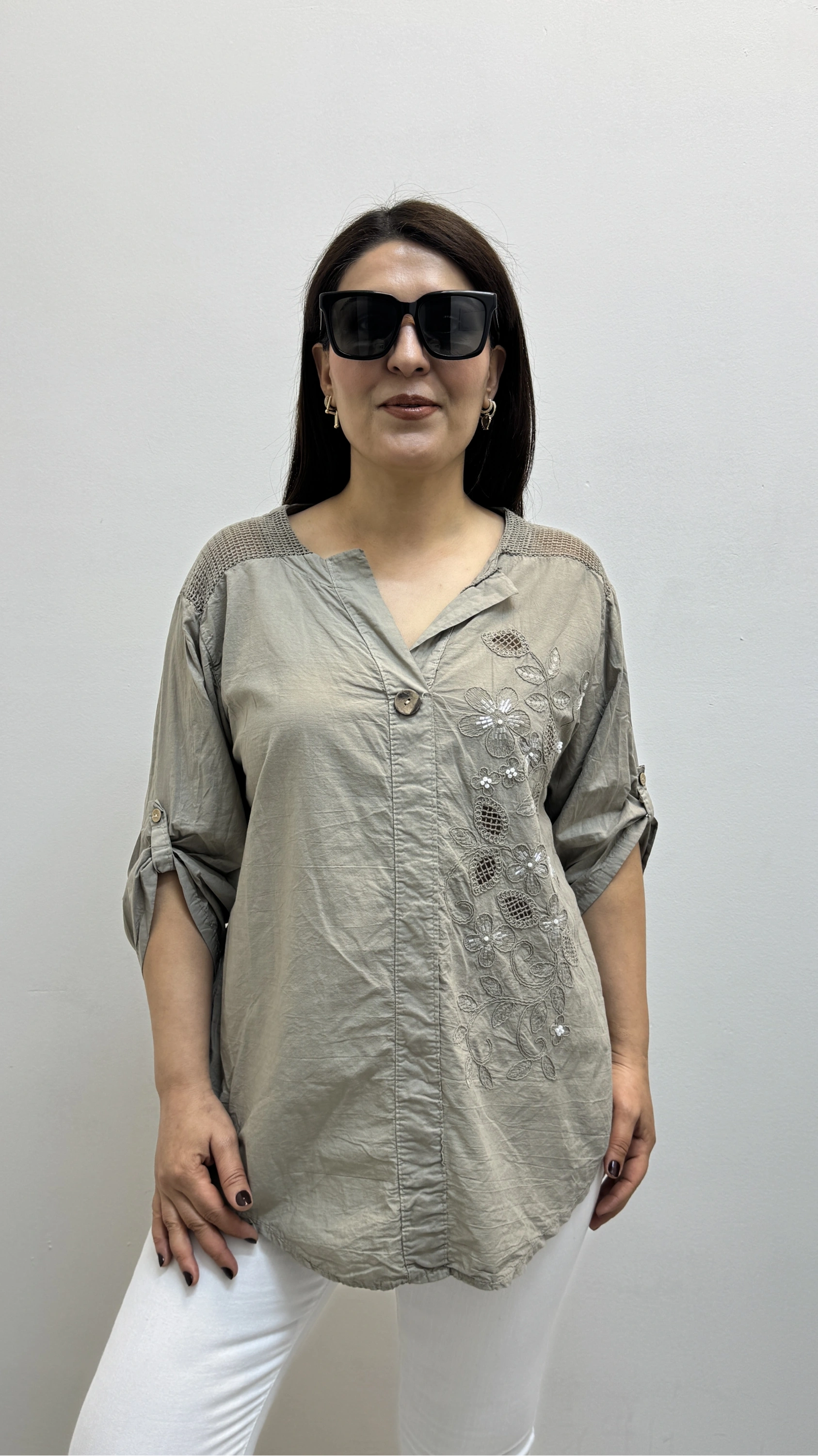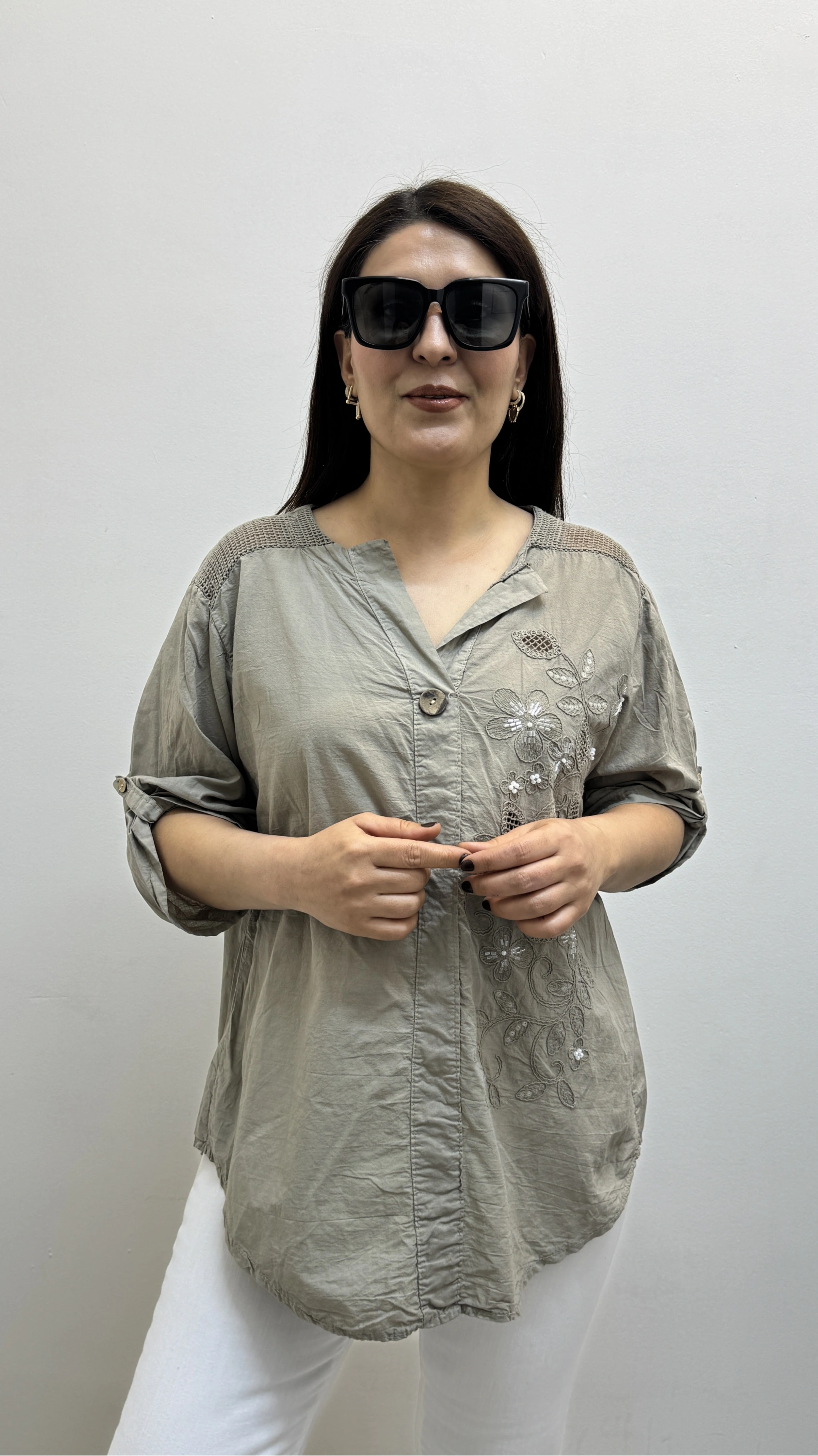 Nakış İşlemeli Hakim Yaka Vizon Rengi İthal Gömlek