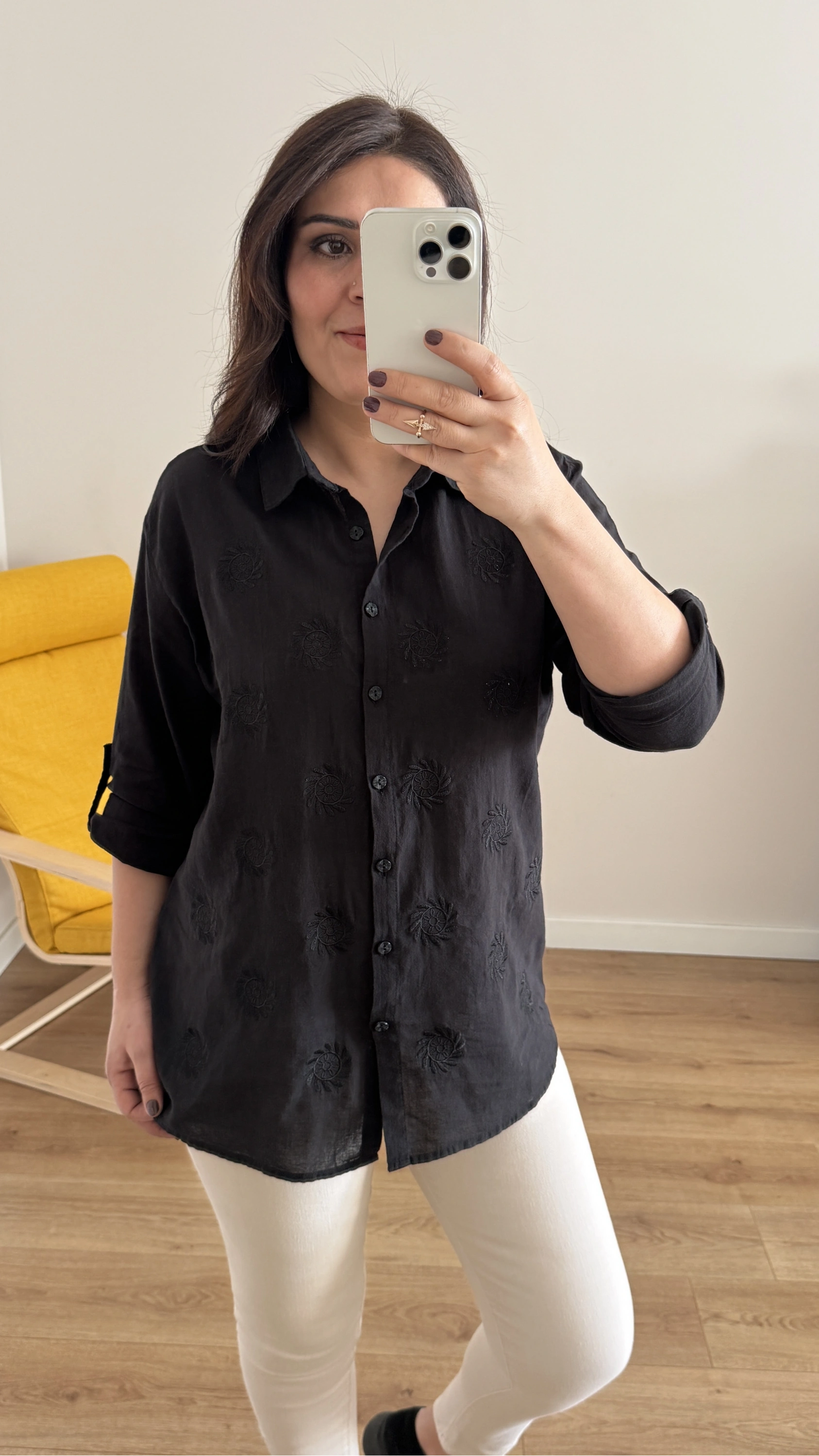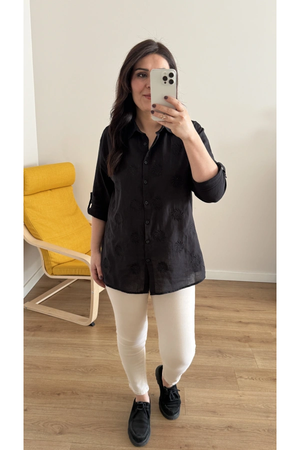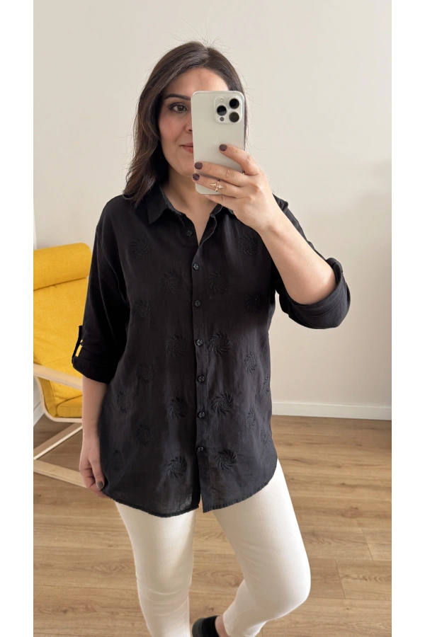 Nakış İşlemeli Pamuklu Siyah Gömlek Hakkında