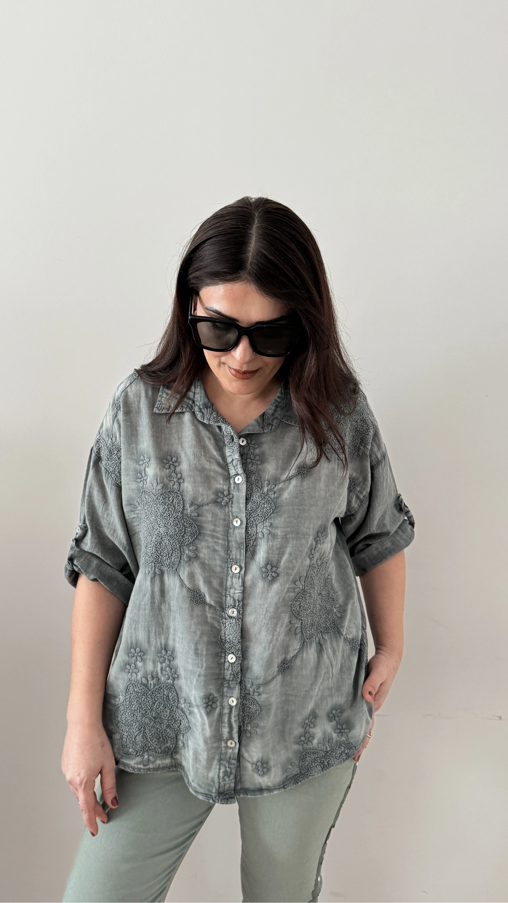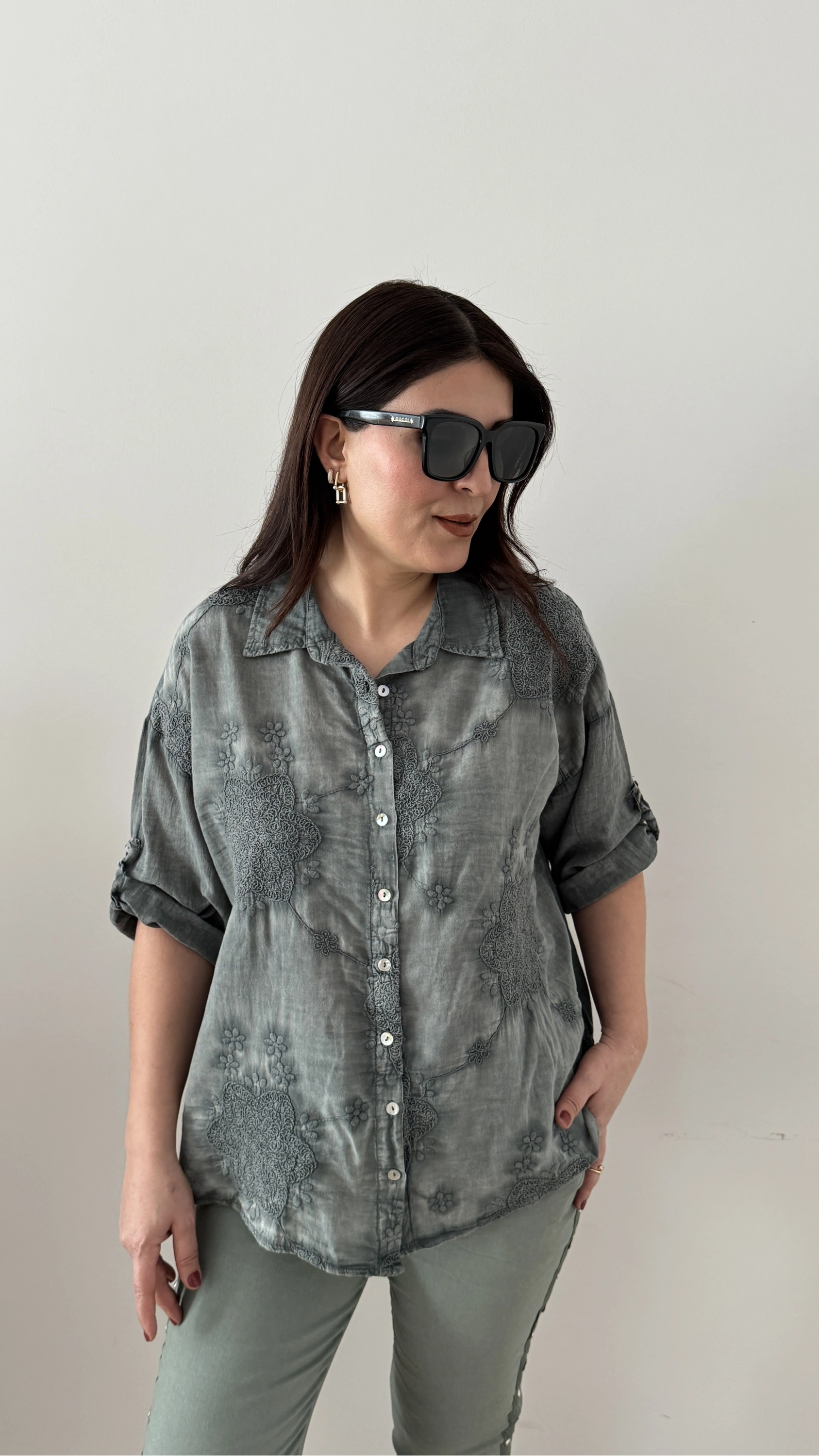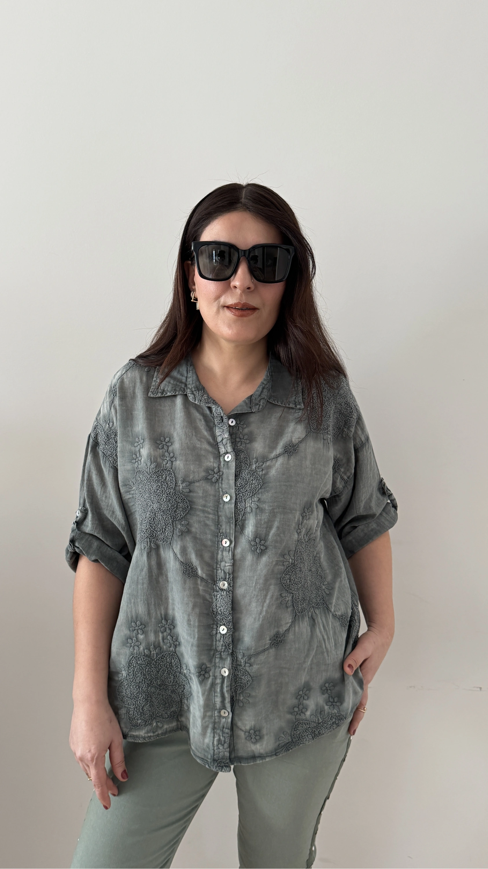 Nakış İşlemeli Yakalı Haki Yeşil İthal Gömlek Hakkında