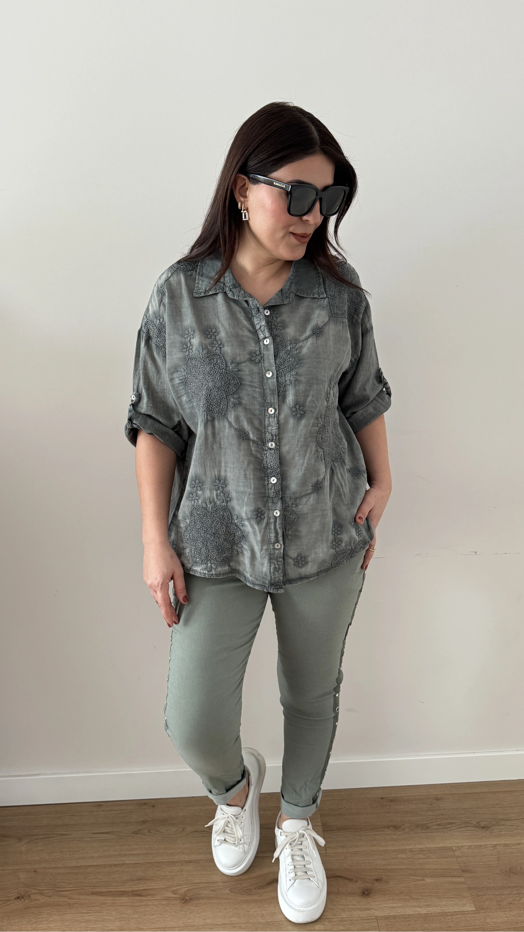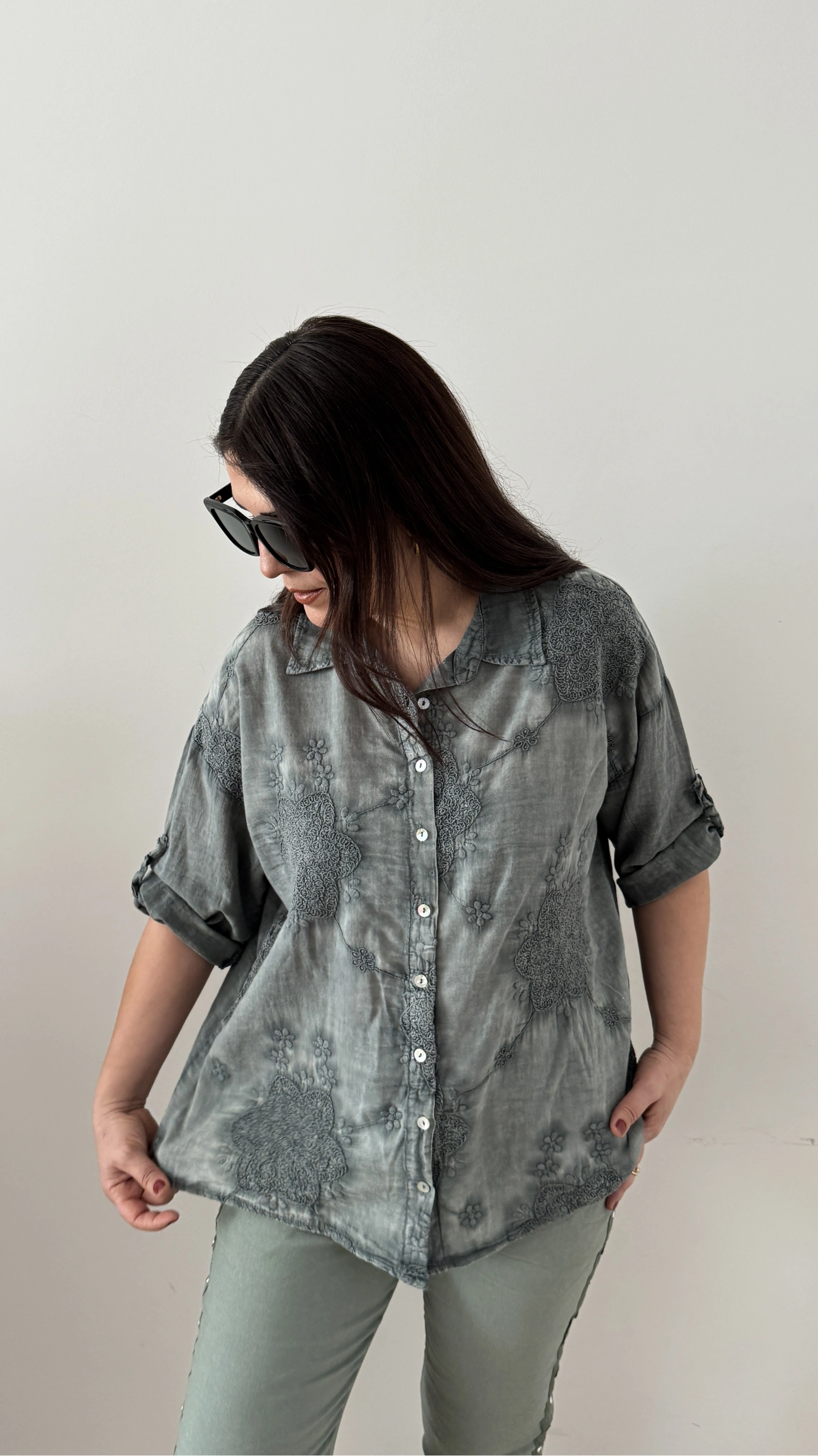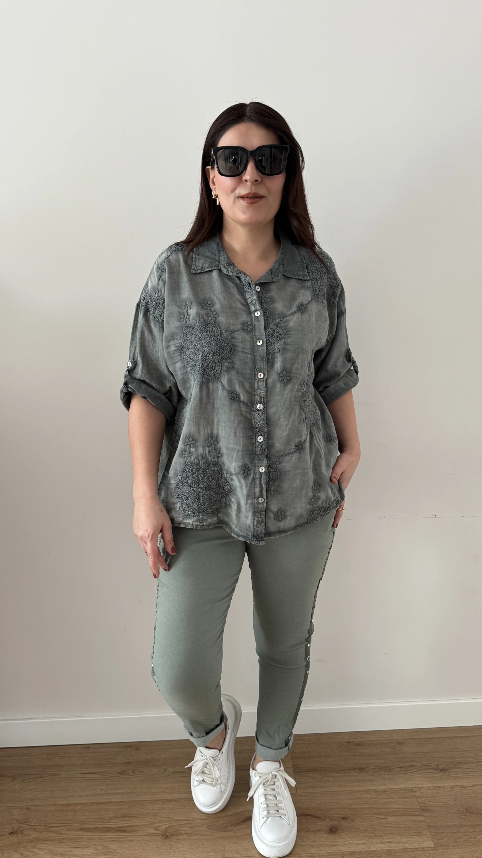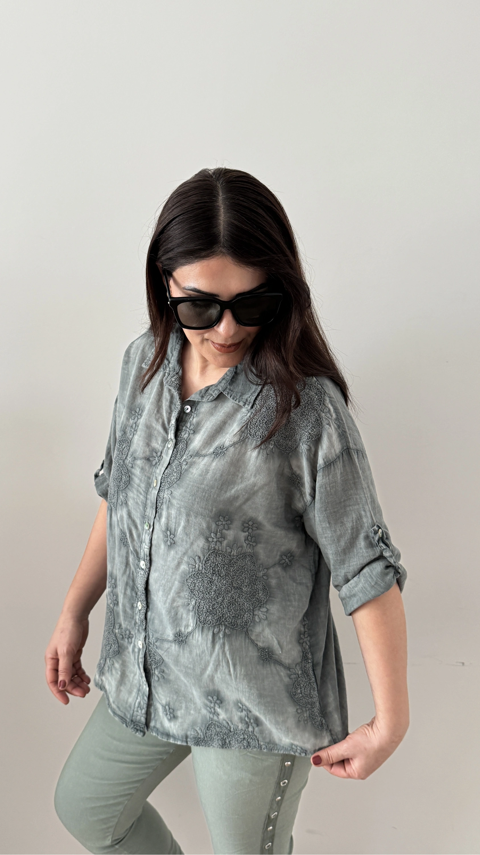 Nakış İşlemeli Yakalı Haki Yeşil İthal Gömlek Hakkında