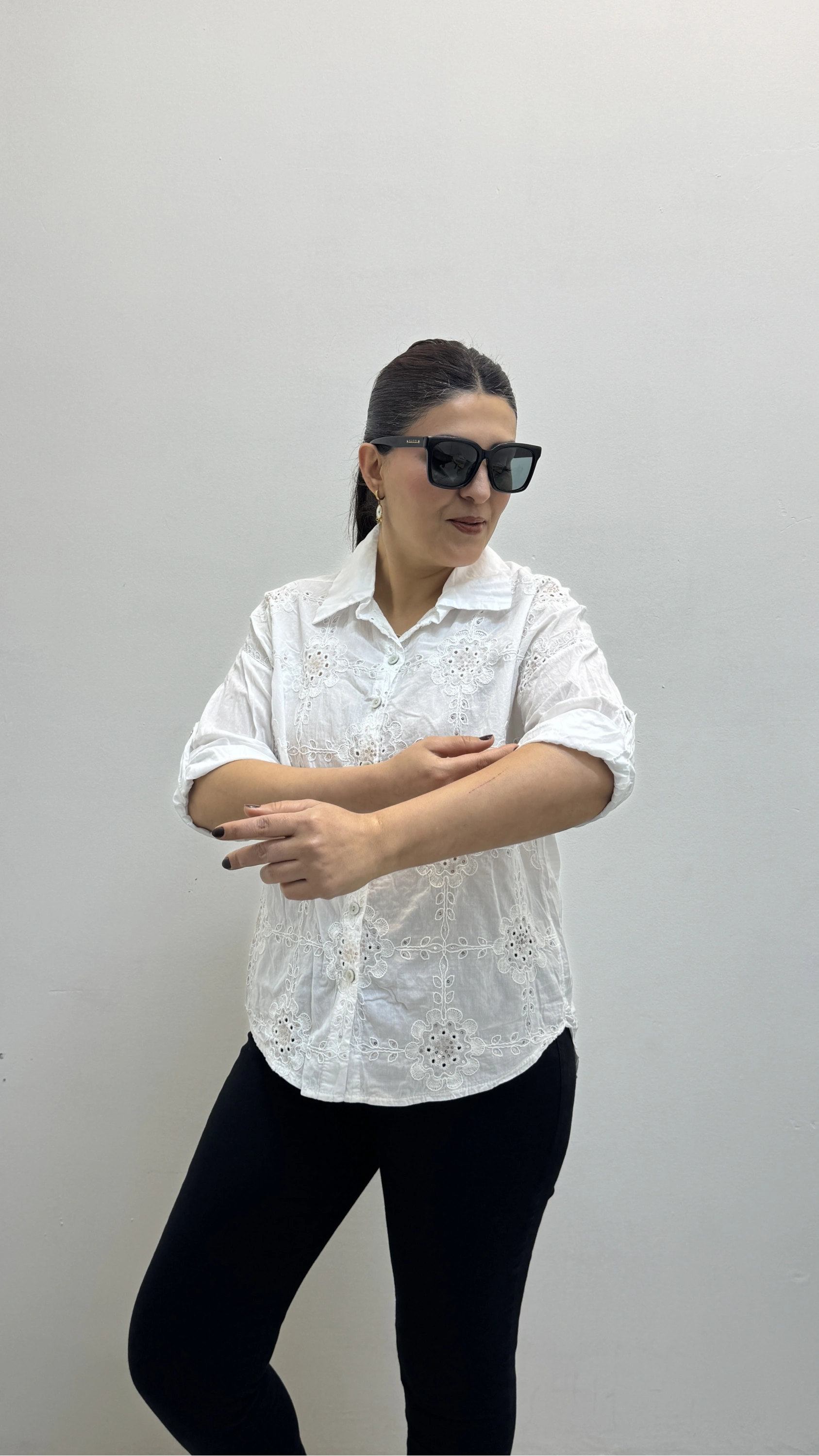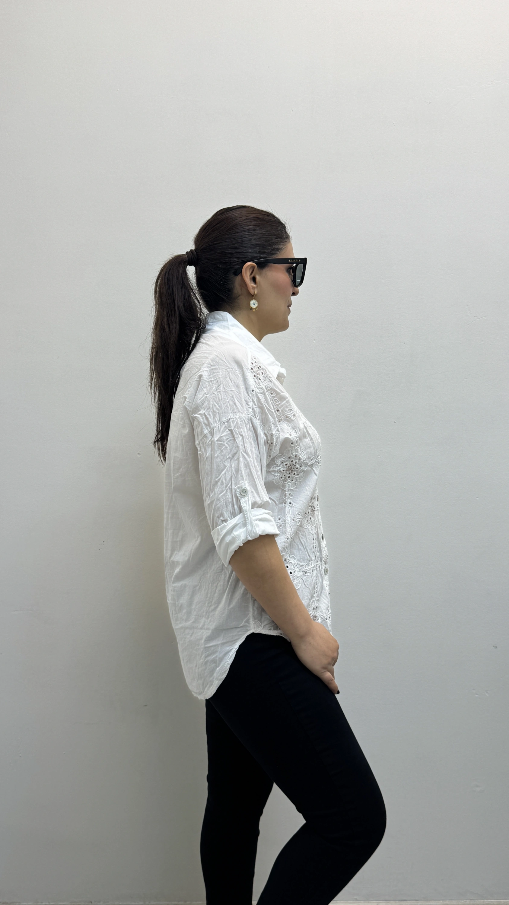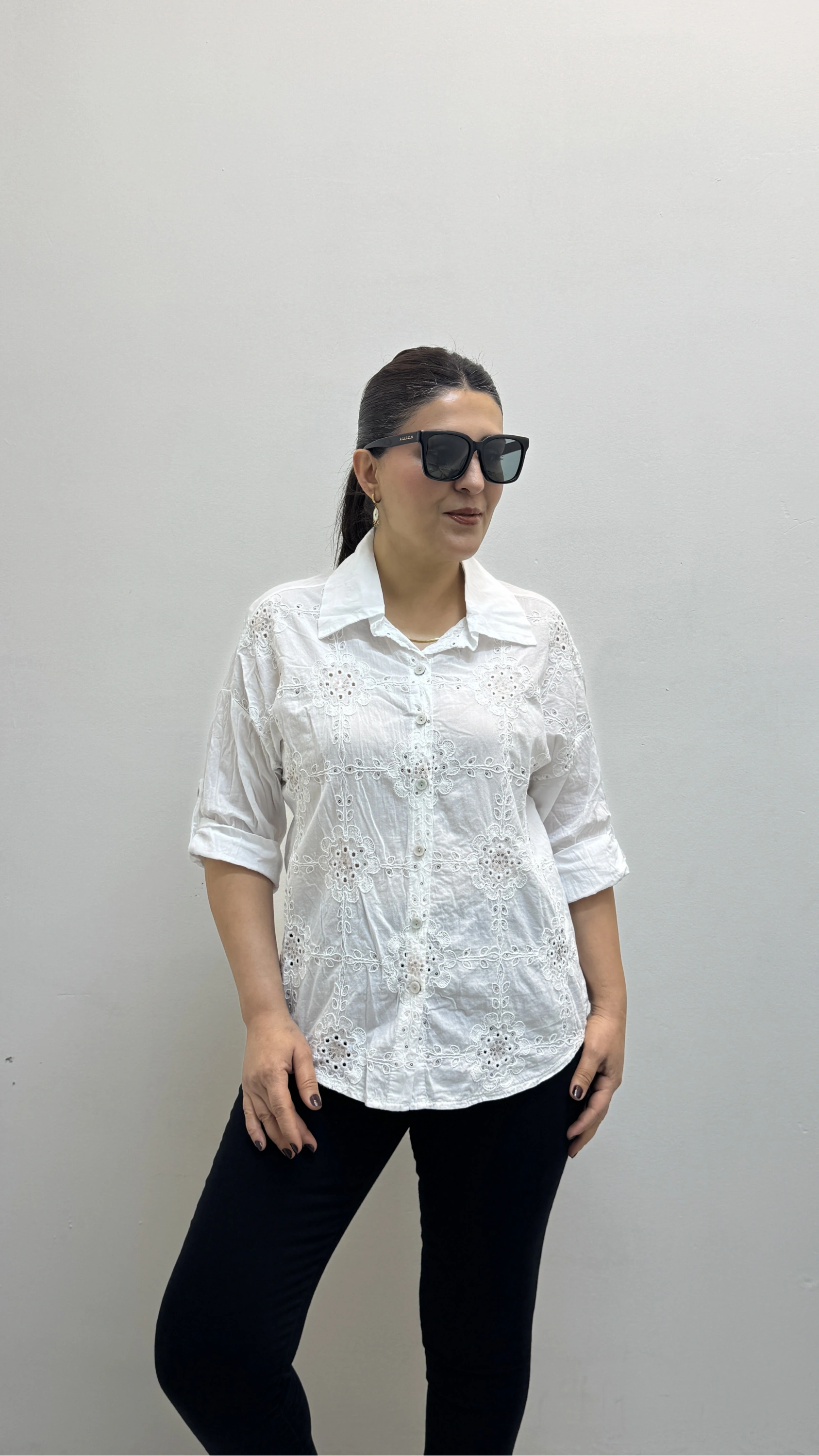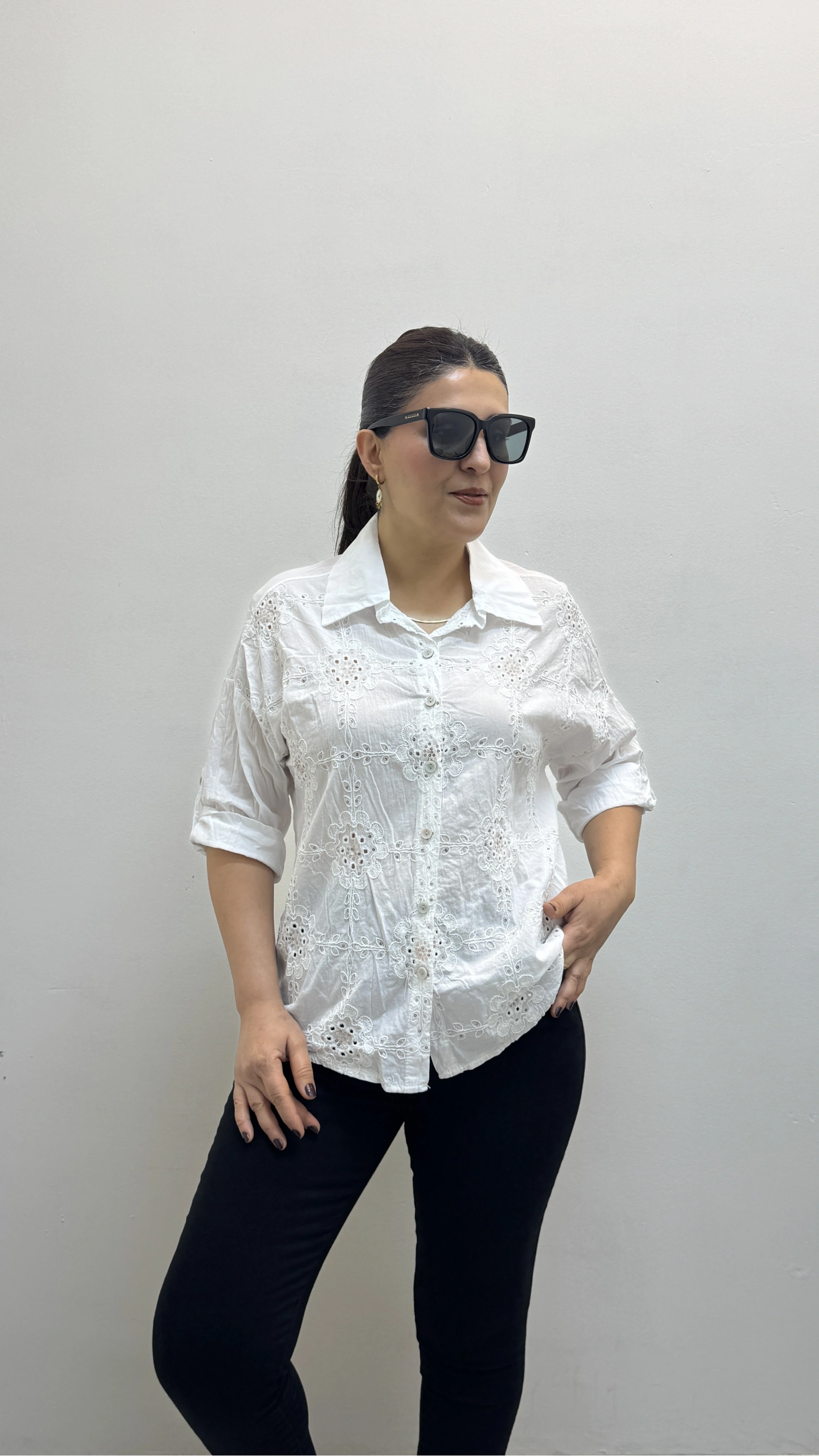 Nakış Ve Pul Payet İşlemeli Yakalı Beyaz Renk İthal Gömlek
