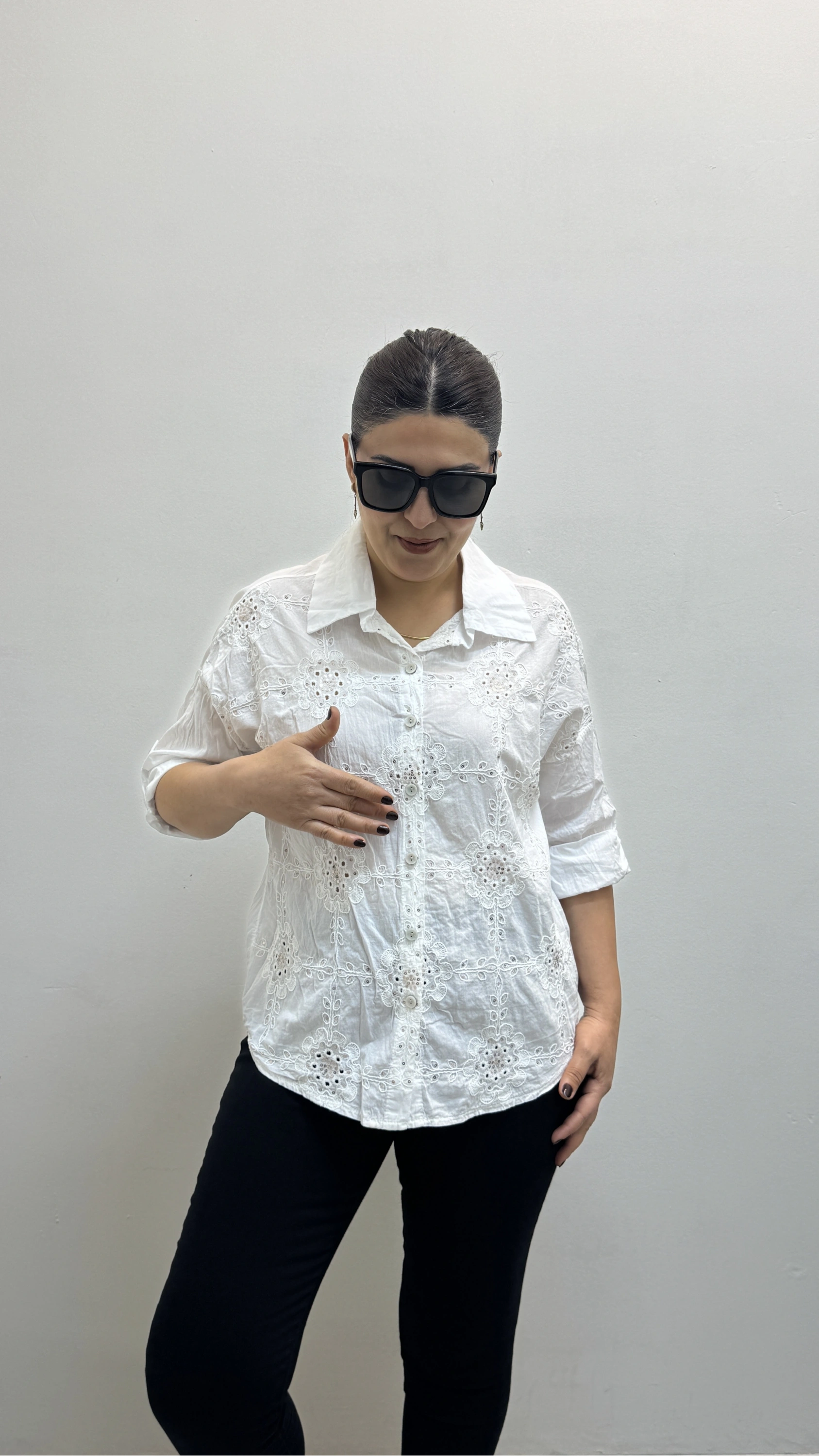 Nakış Ve Pul Payet İşlemeli Yakalı Beyaz Renk İthal Gömlek Hakkında