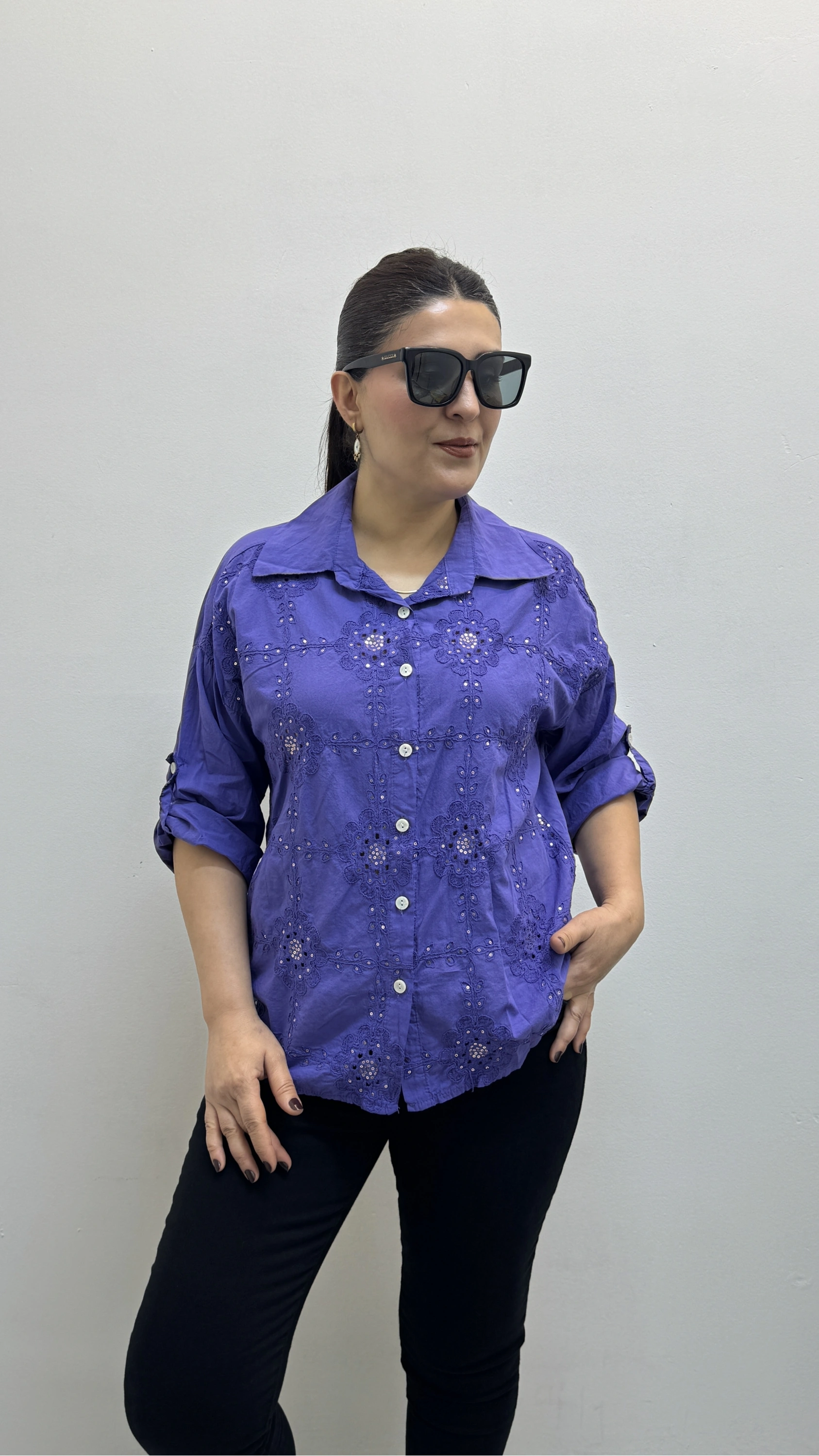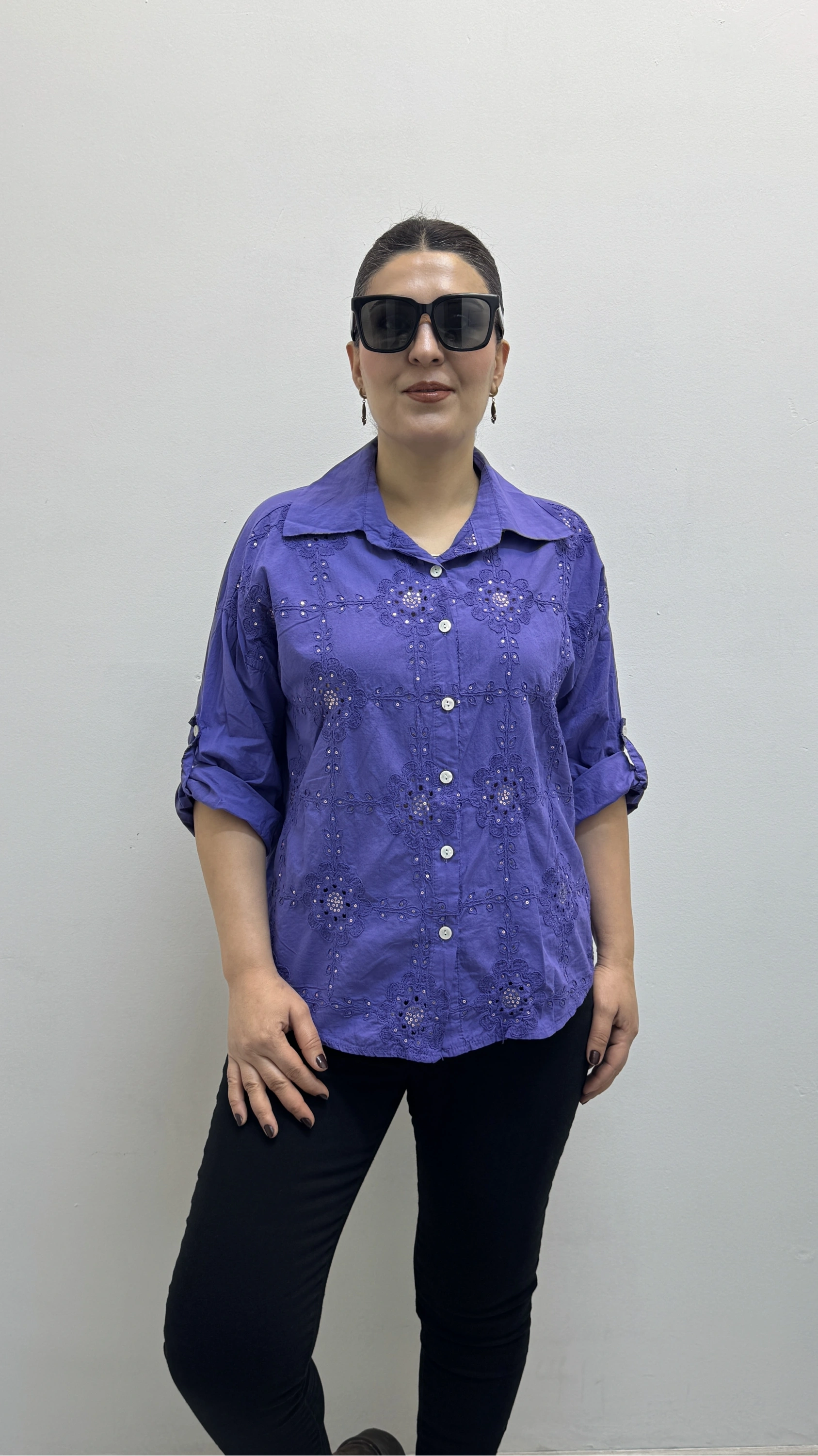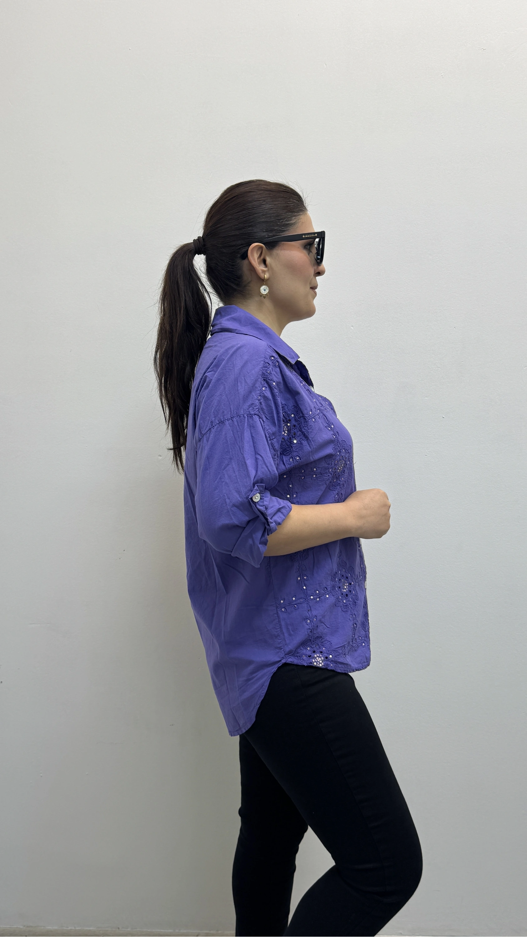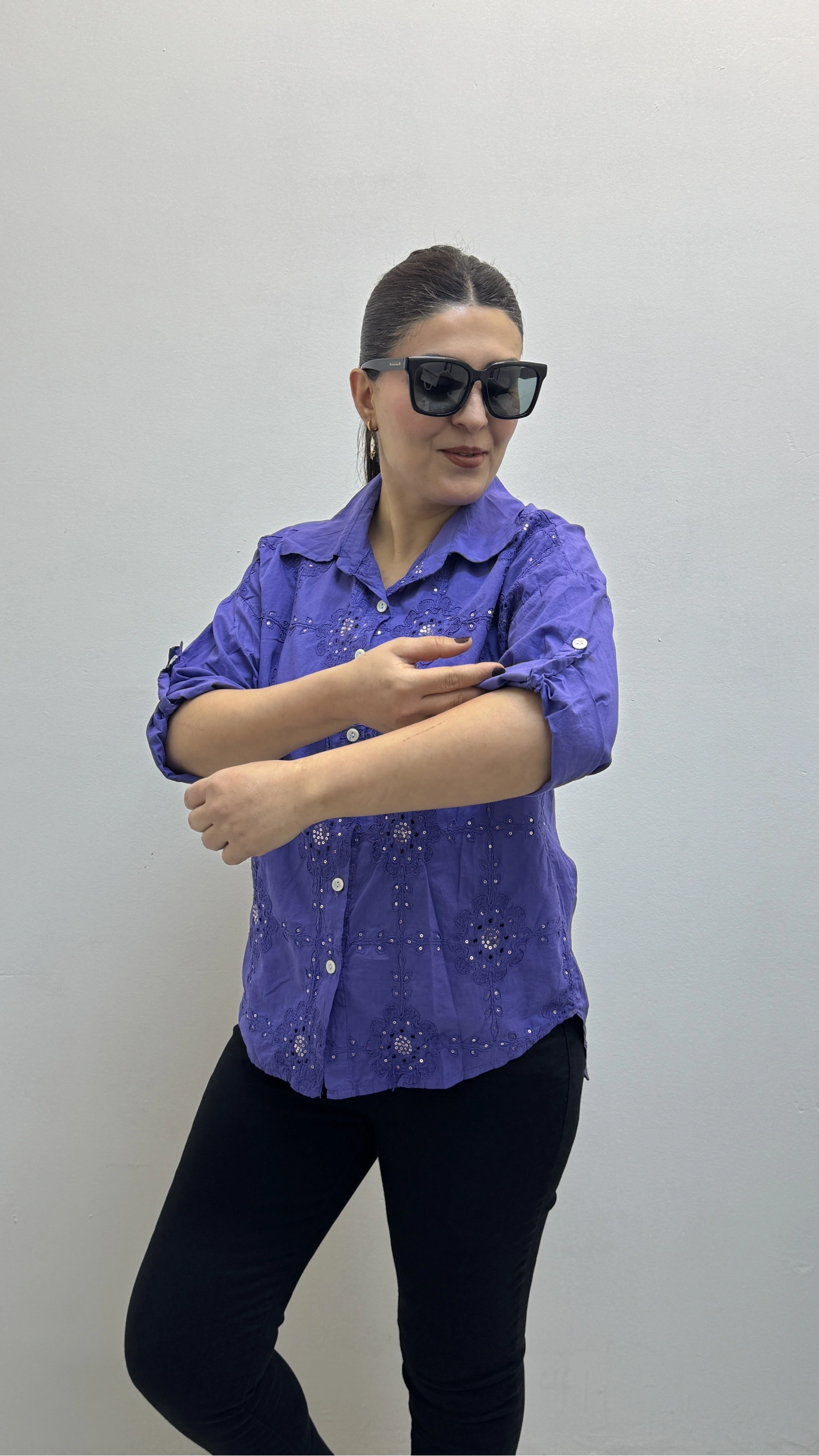 Nakış Ve Pul Payet İşlemeli Yakalı Mor Renk İthal Gömlek