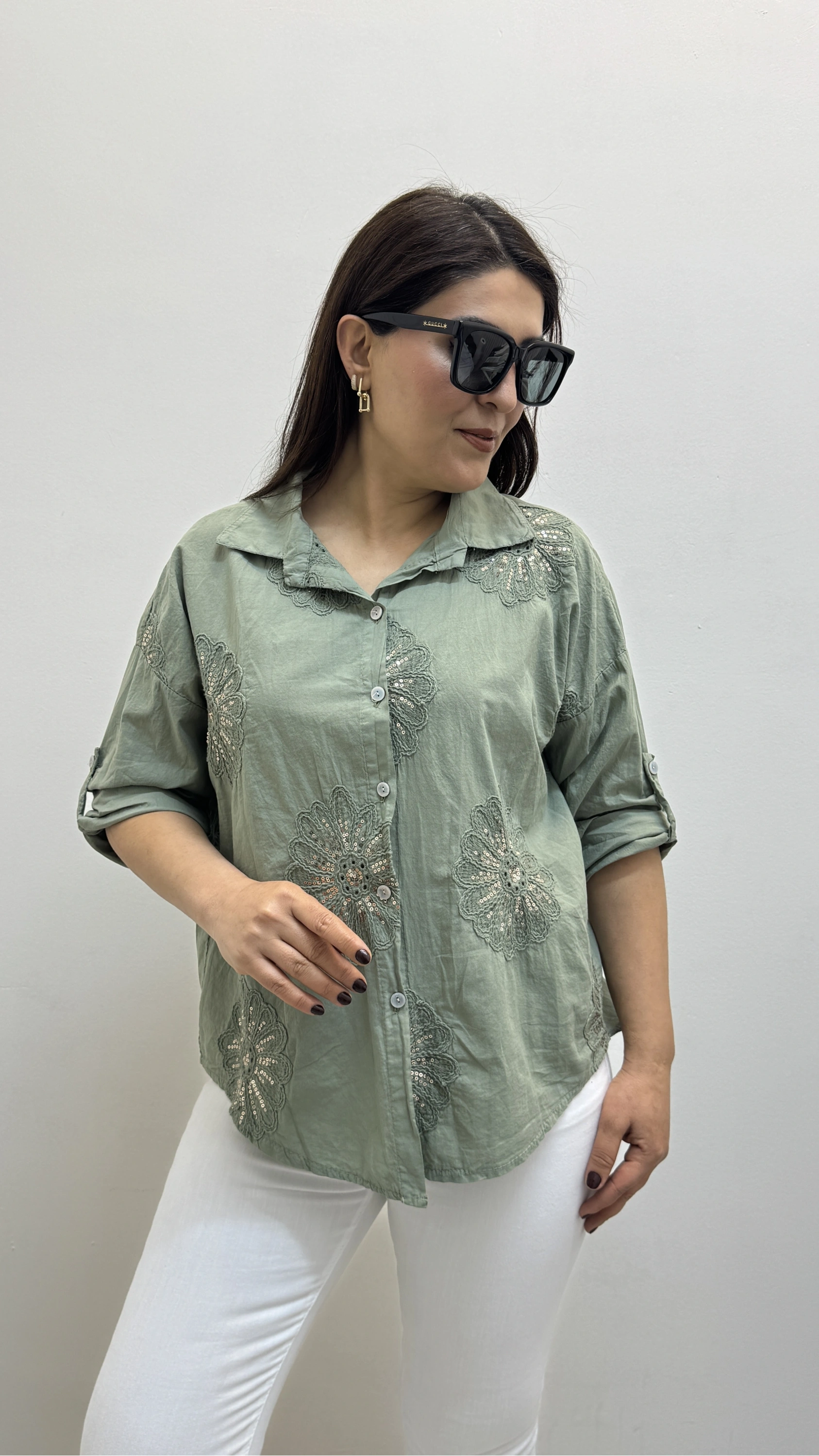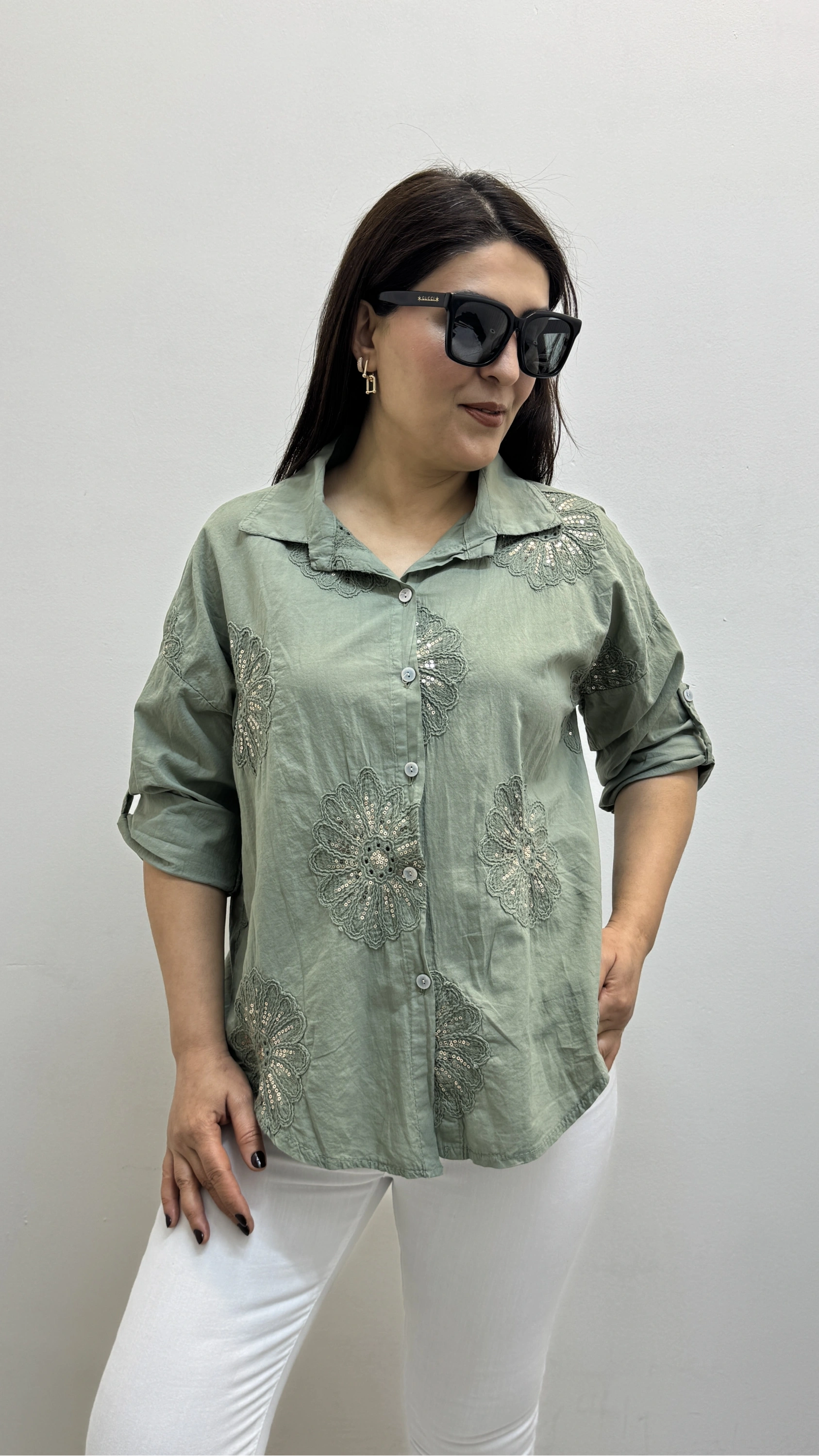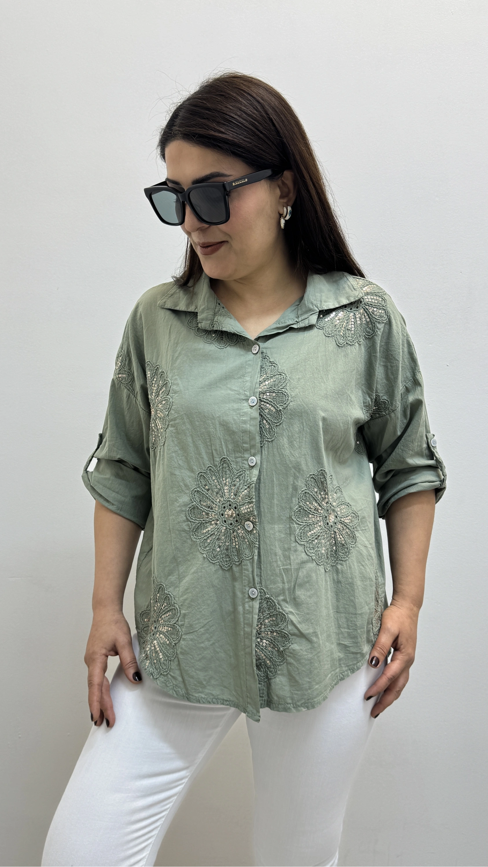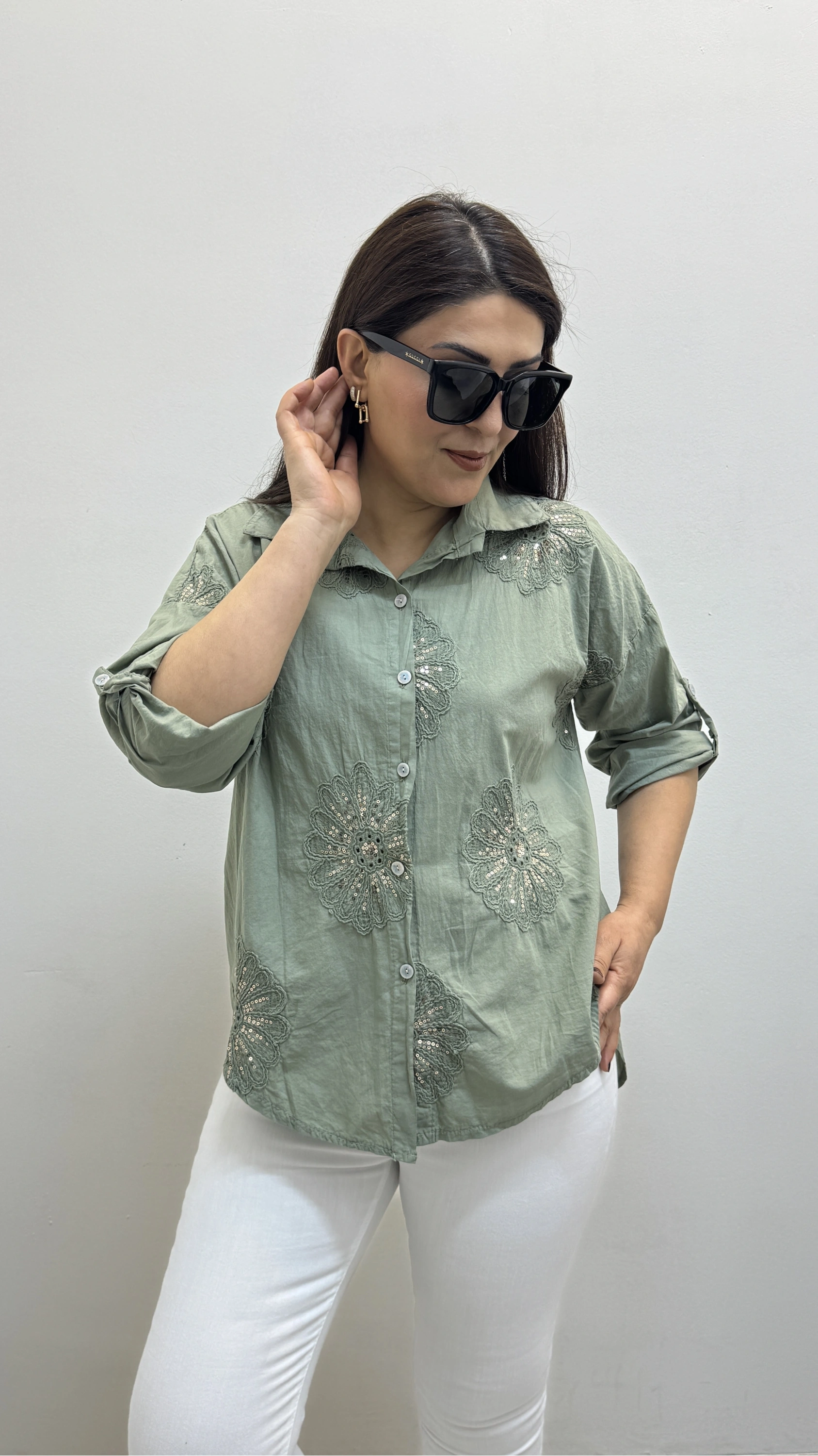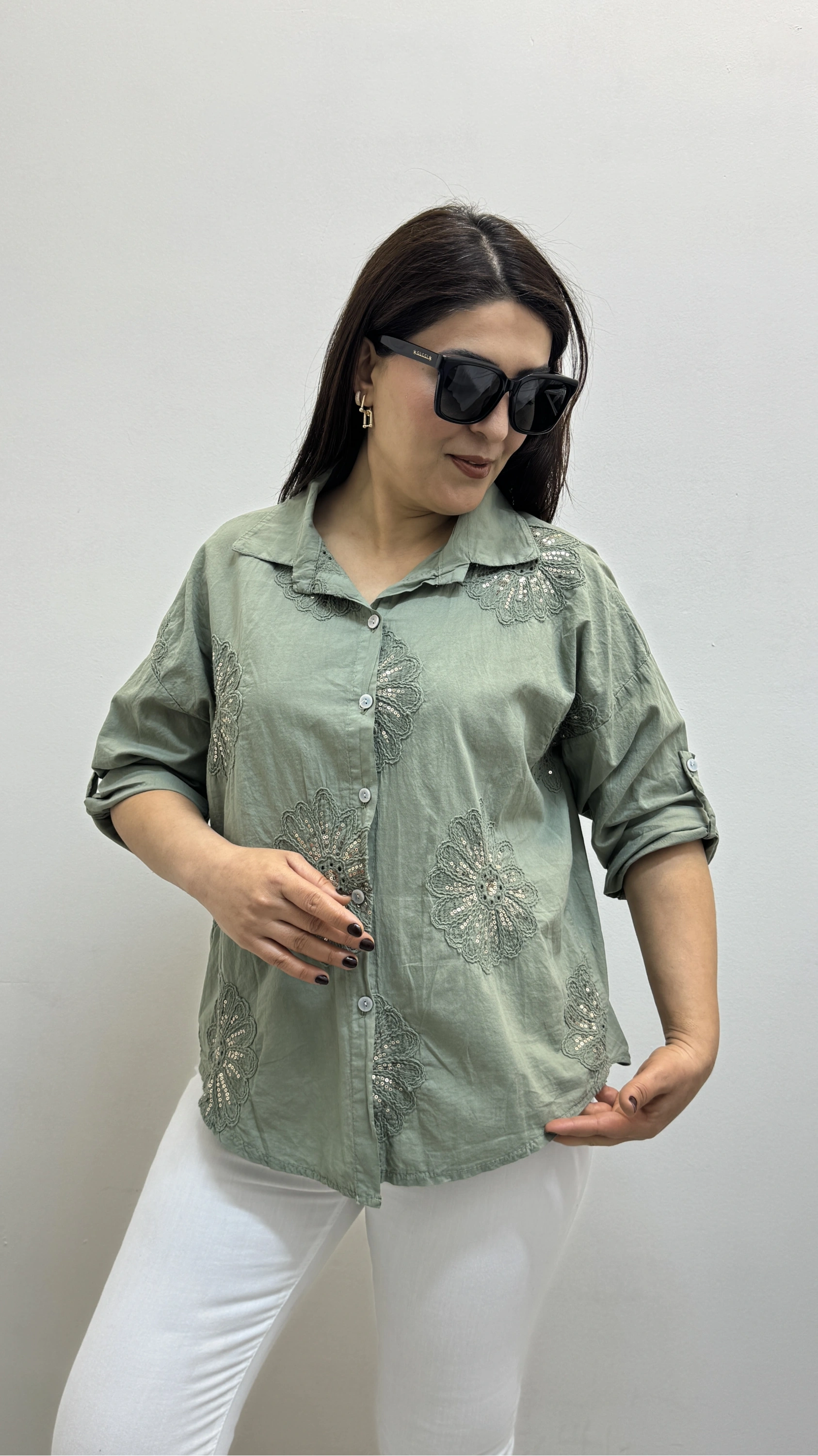 Nakış Ve Pul Payet İşlemeli Yeşil İthal Gömlek Hakkında