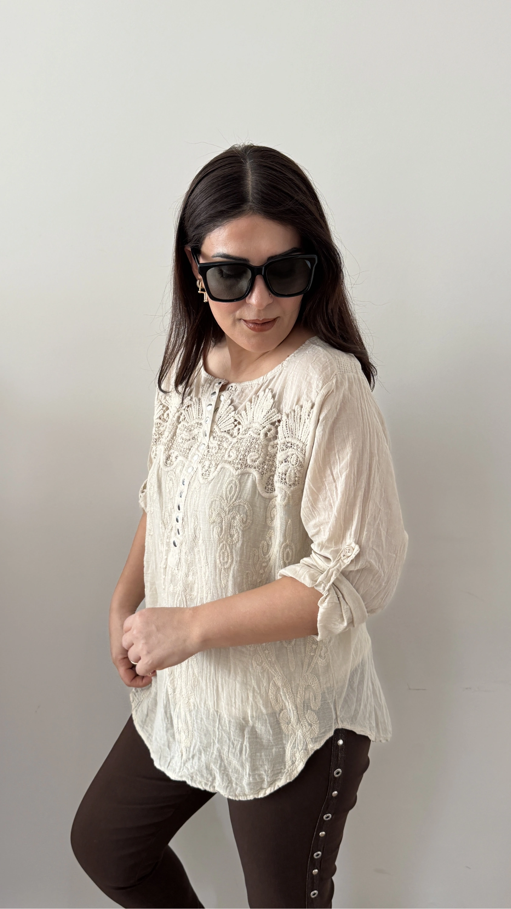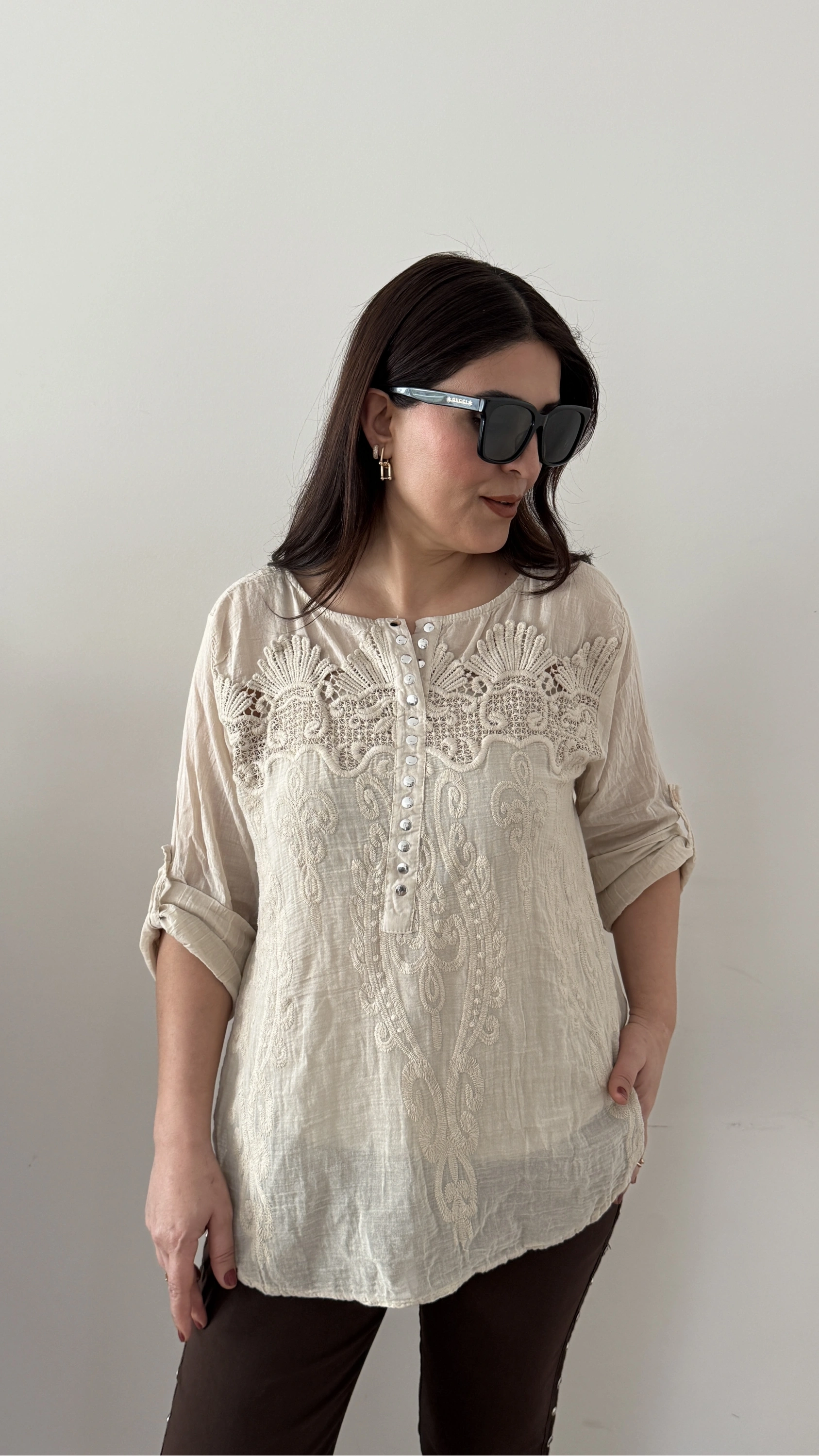 Nakışlı Zımba Düğmeli Krem Rengi İkili Takım Gömlek Hakkında