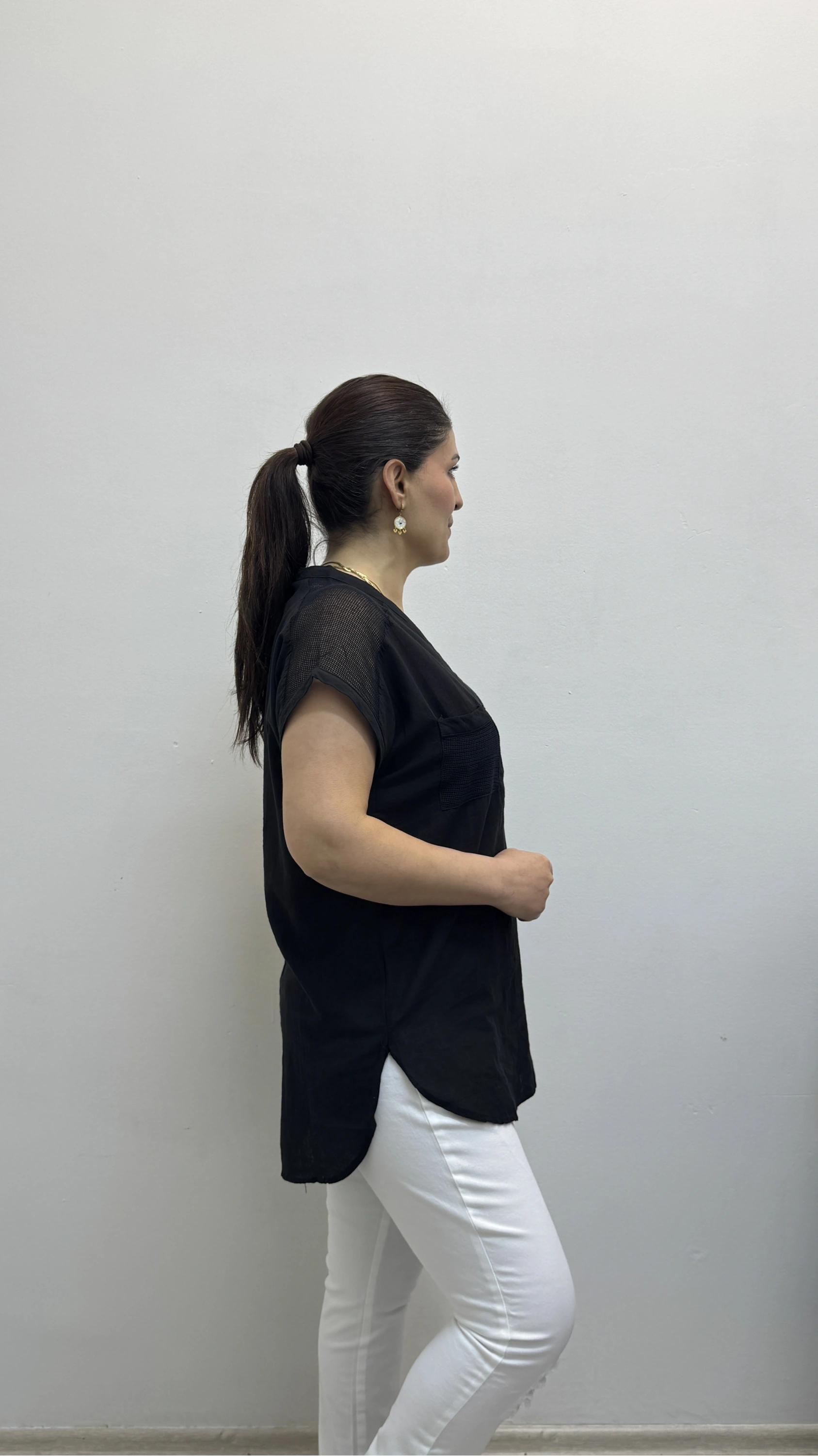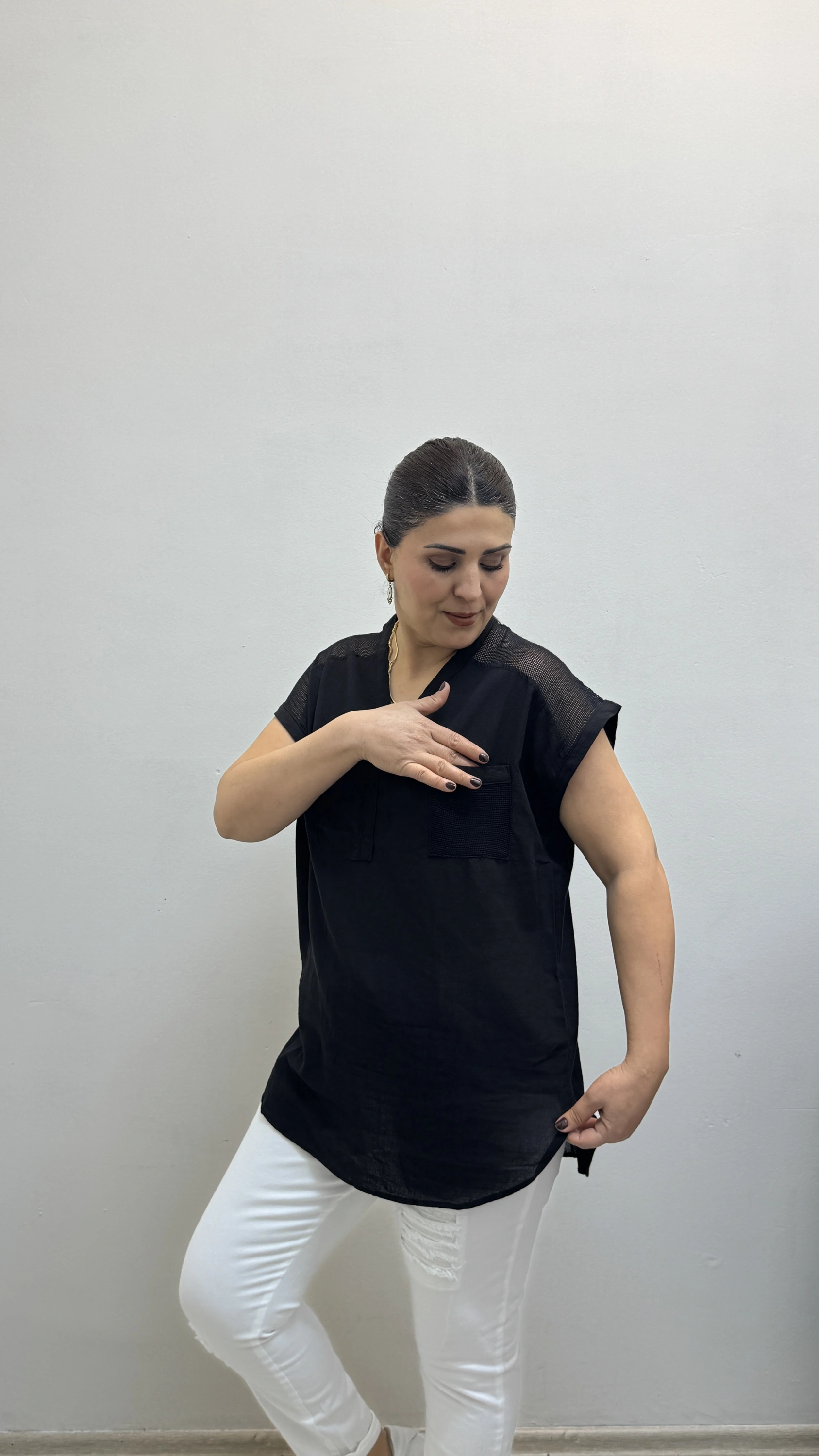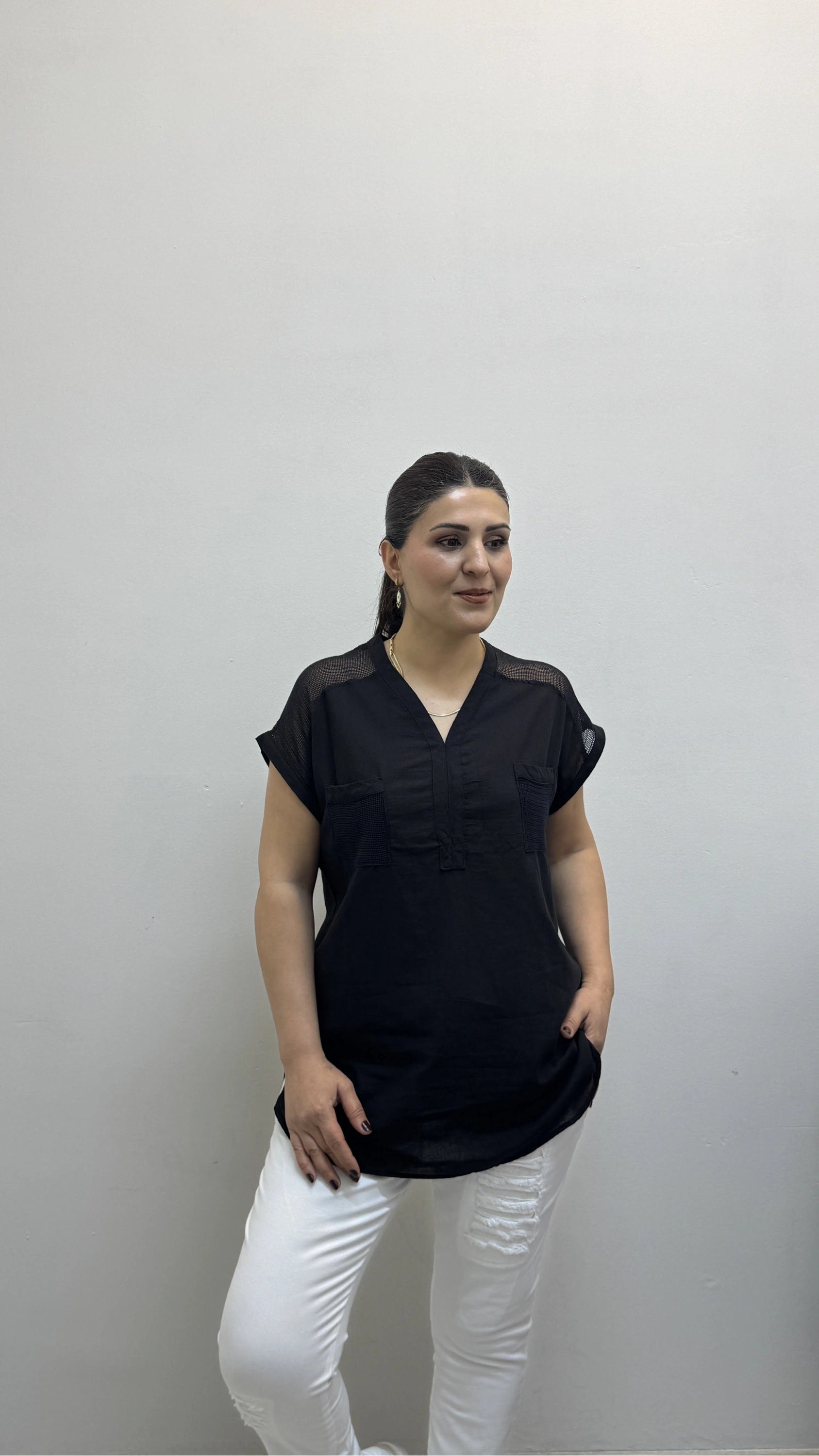 Omuz File Detaylı File Cepli Siyah Renk Pamuklu Bluz Hakkında