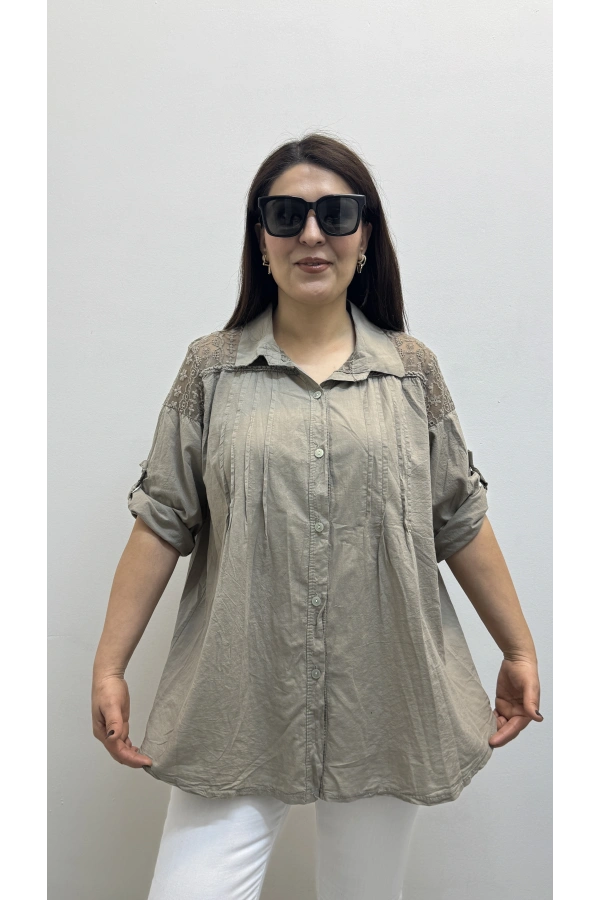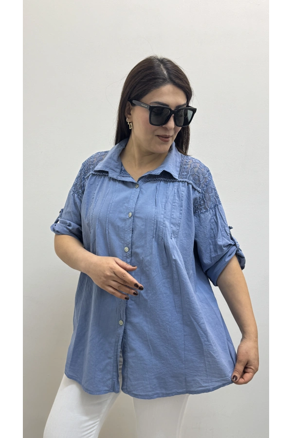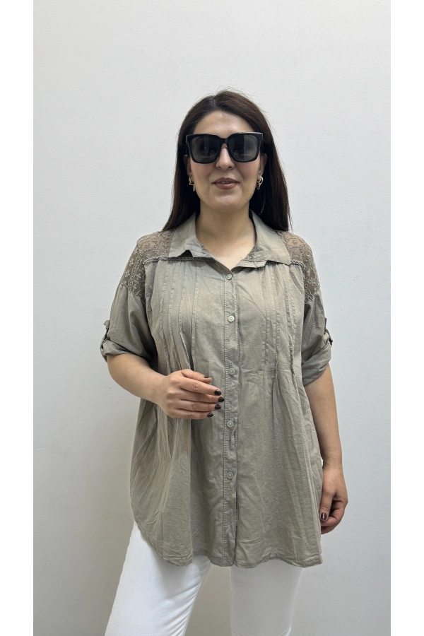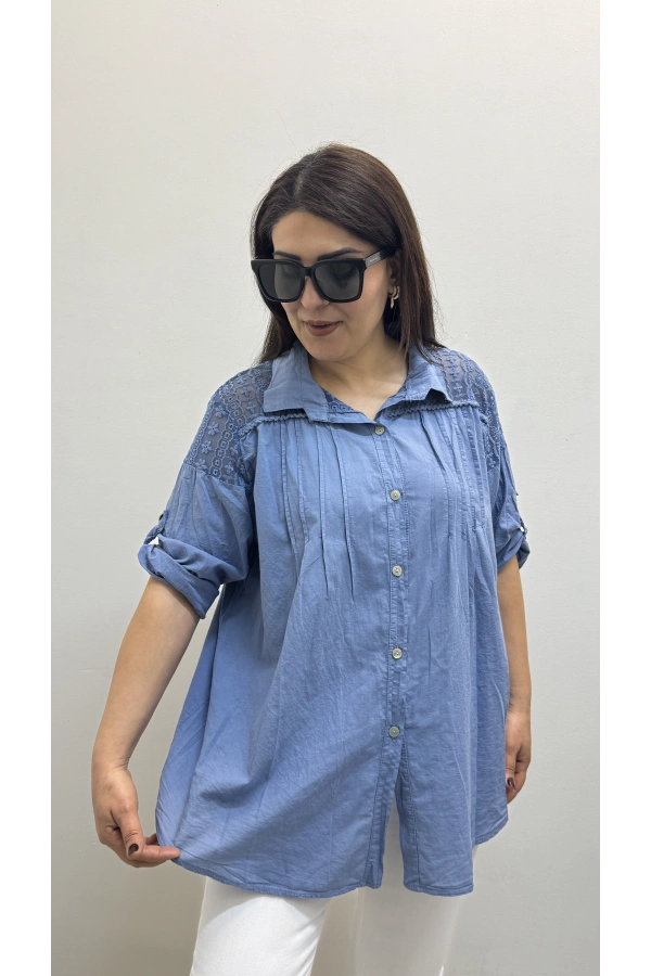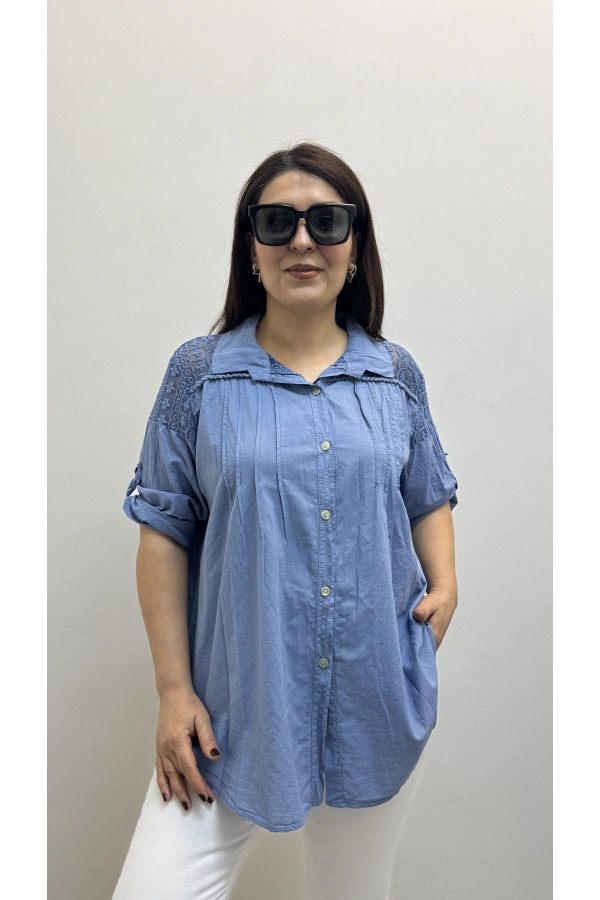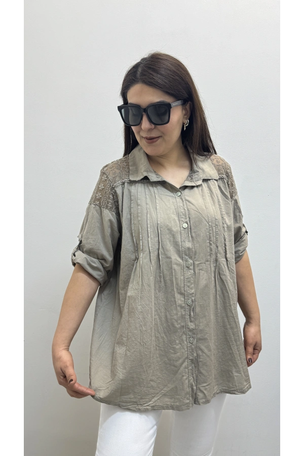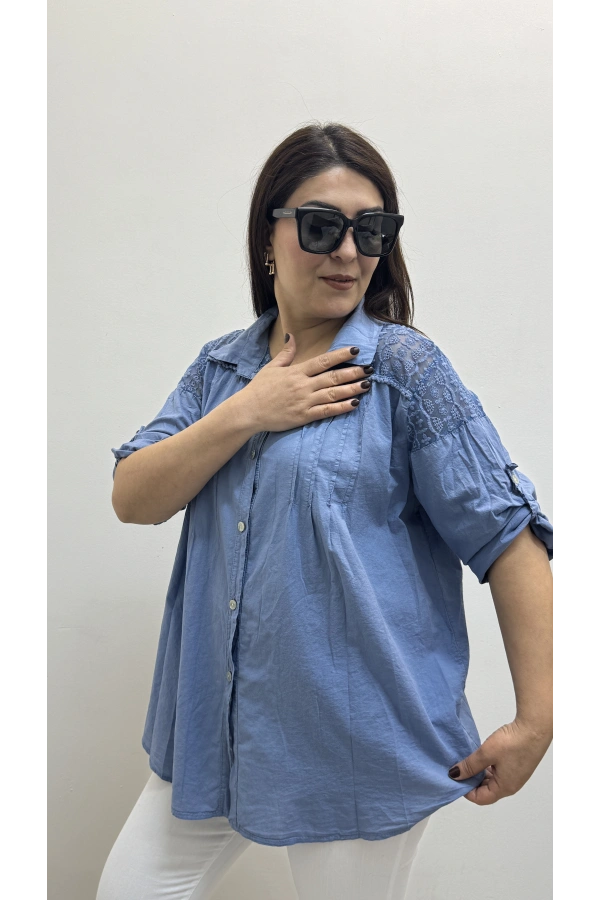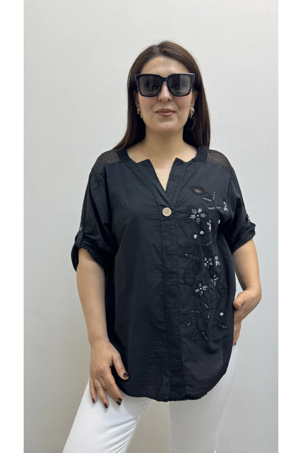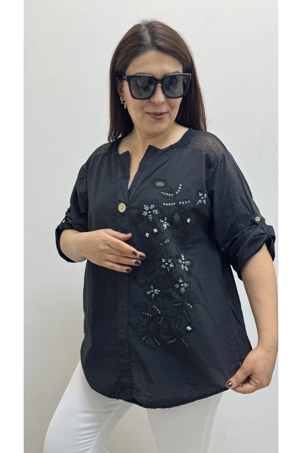Omuz Tül Ve Dantel Detaylı Pile Dikişli Siyah Renk İthal Gömlek Hakkında